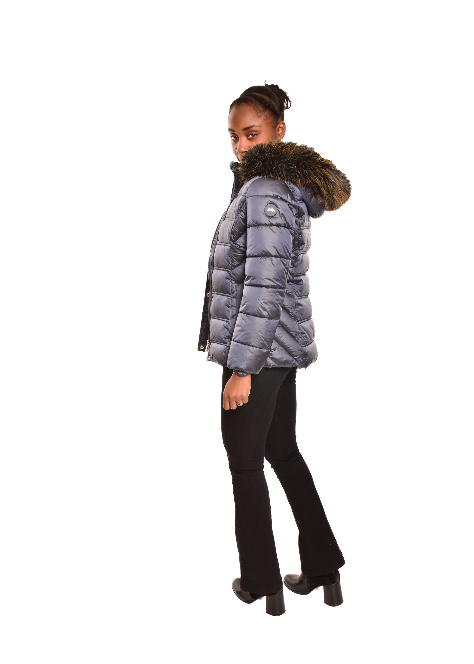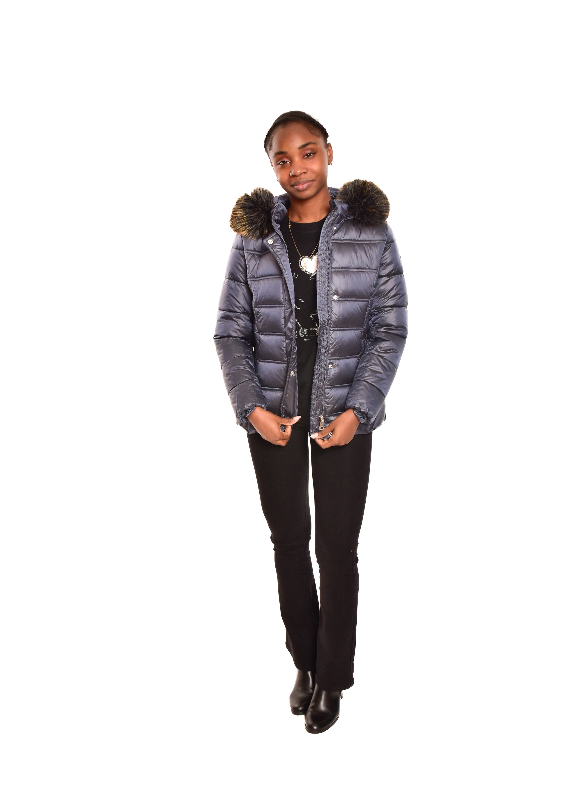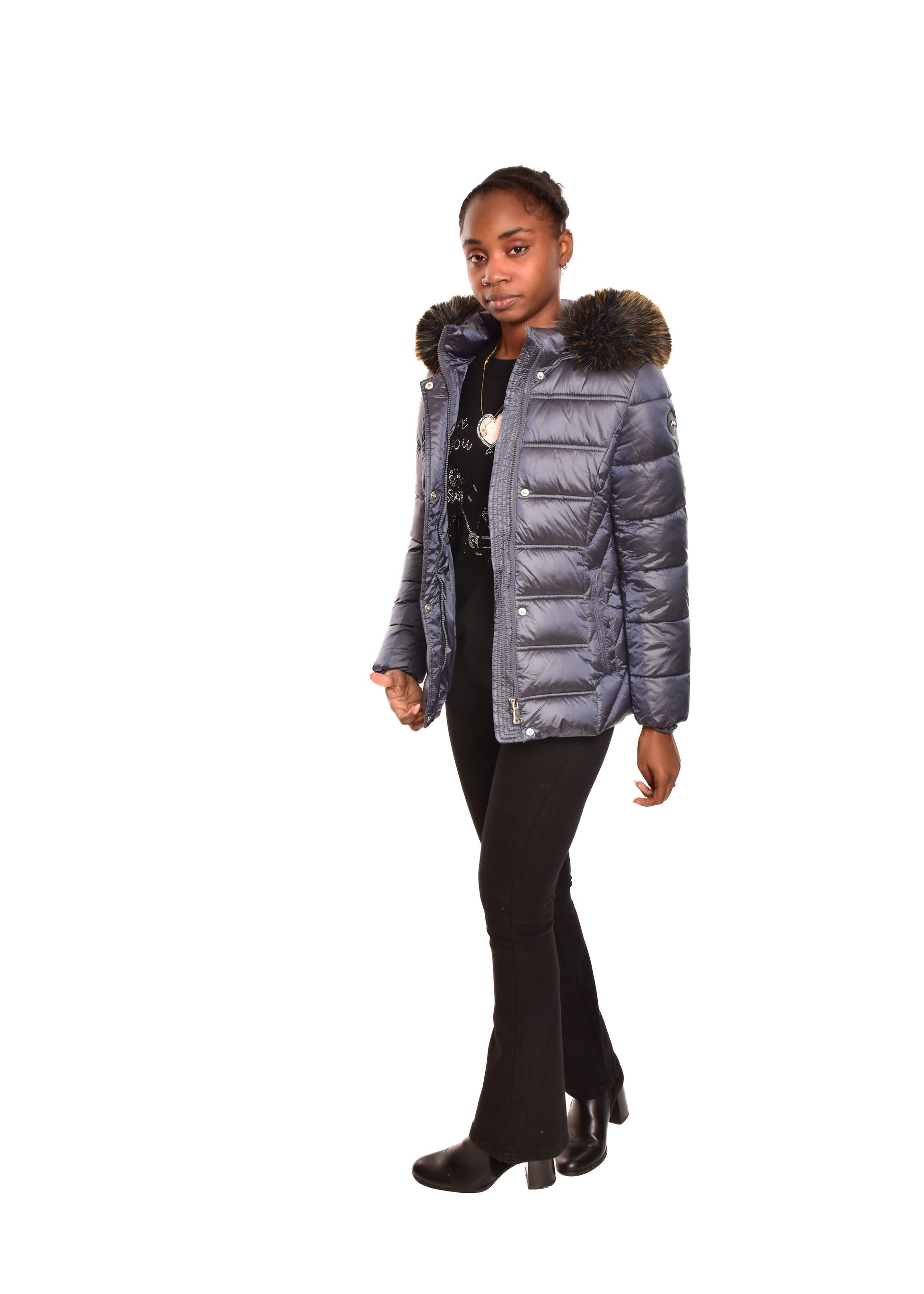 Cazadora Acolchada con efecto semi brillante. ⚠️CORTE ENTALLADO. Cuenta con múltiples bolsillos. Este modelo está disponible de la talla S a la XL, en este caso es apta hasta una talla 42. DETALLES DE LA PRENDA Cazadora acolchada Efecto semi brillante El pelo se puede retirar