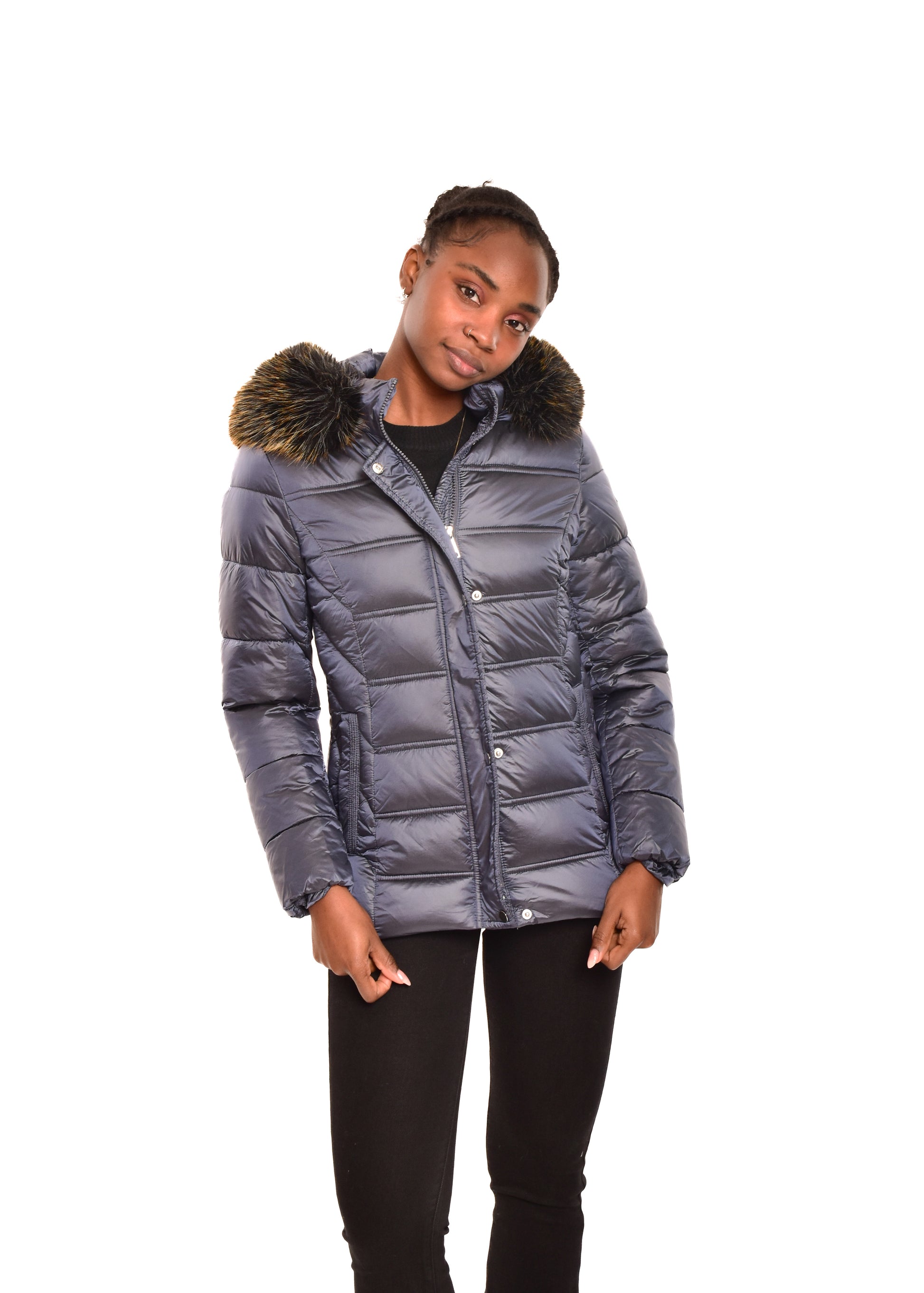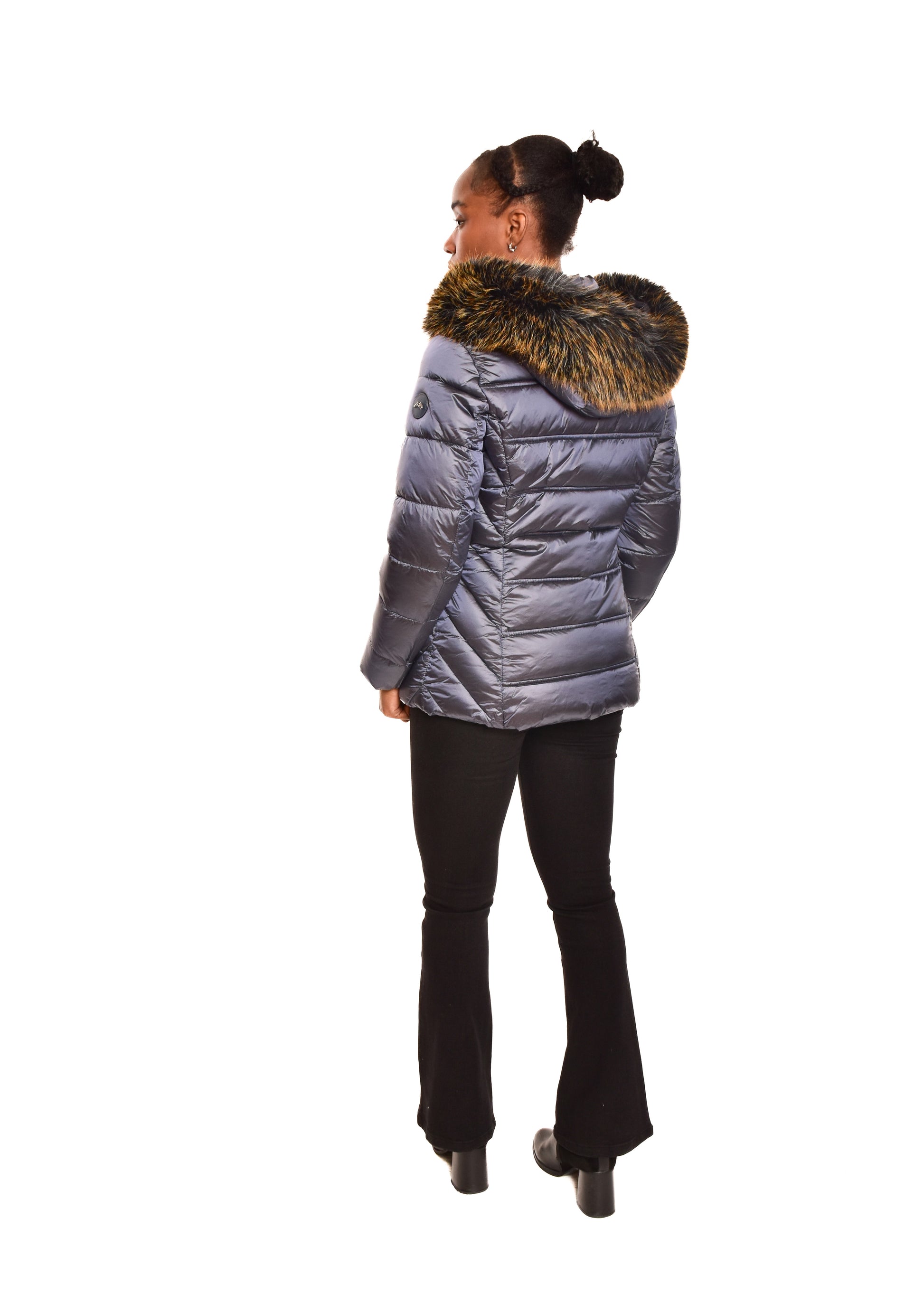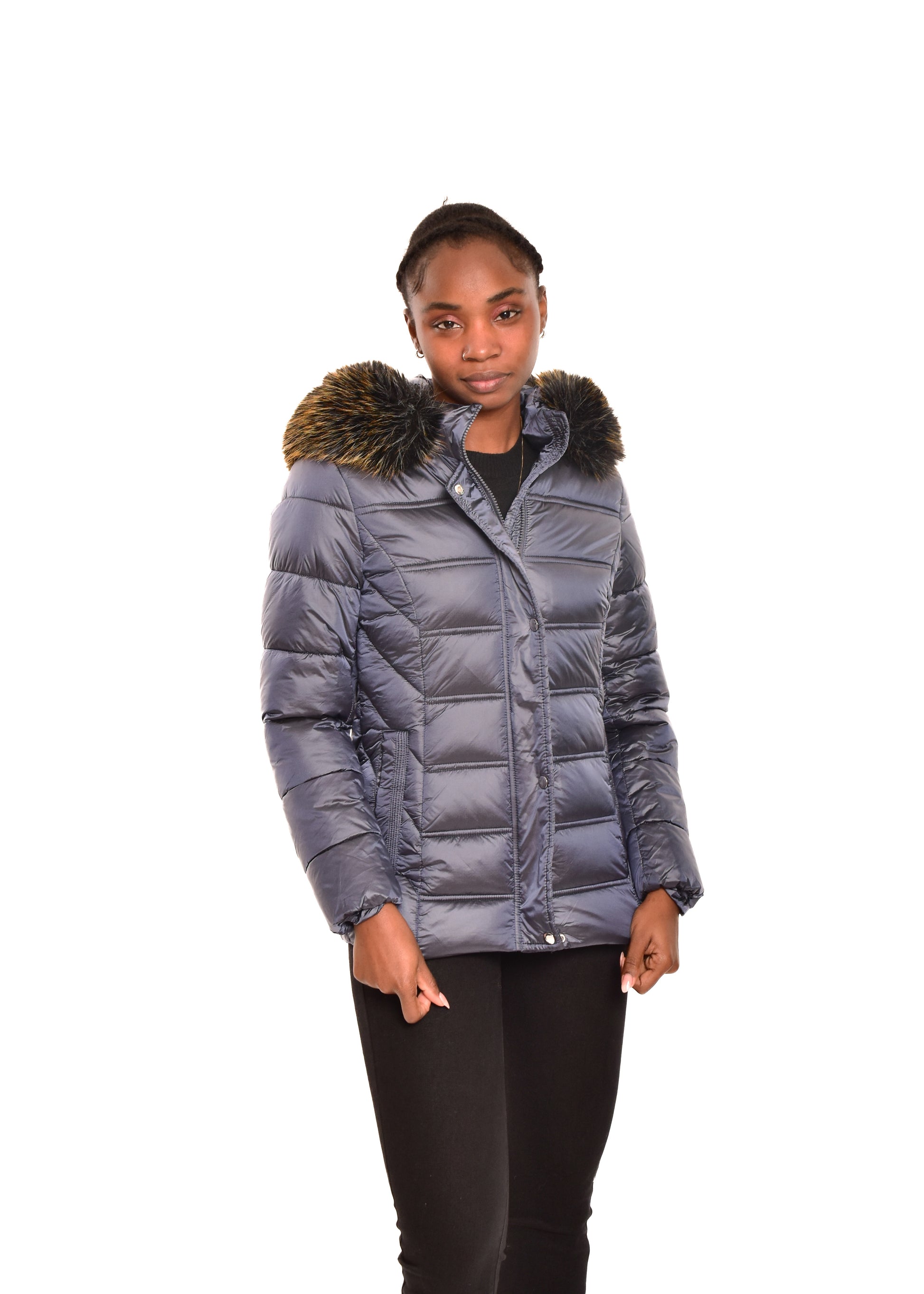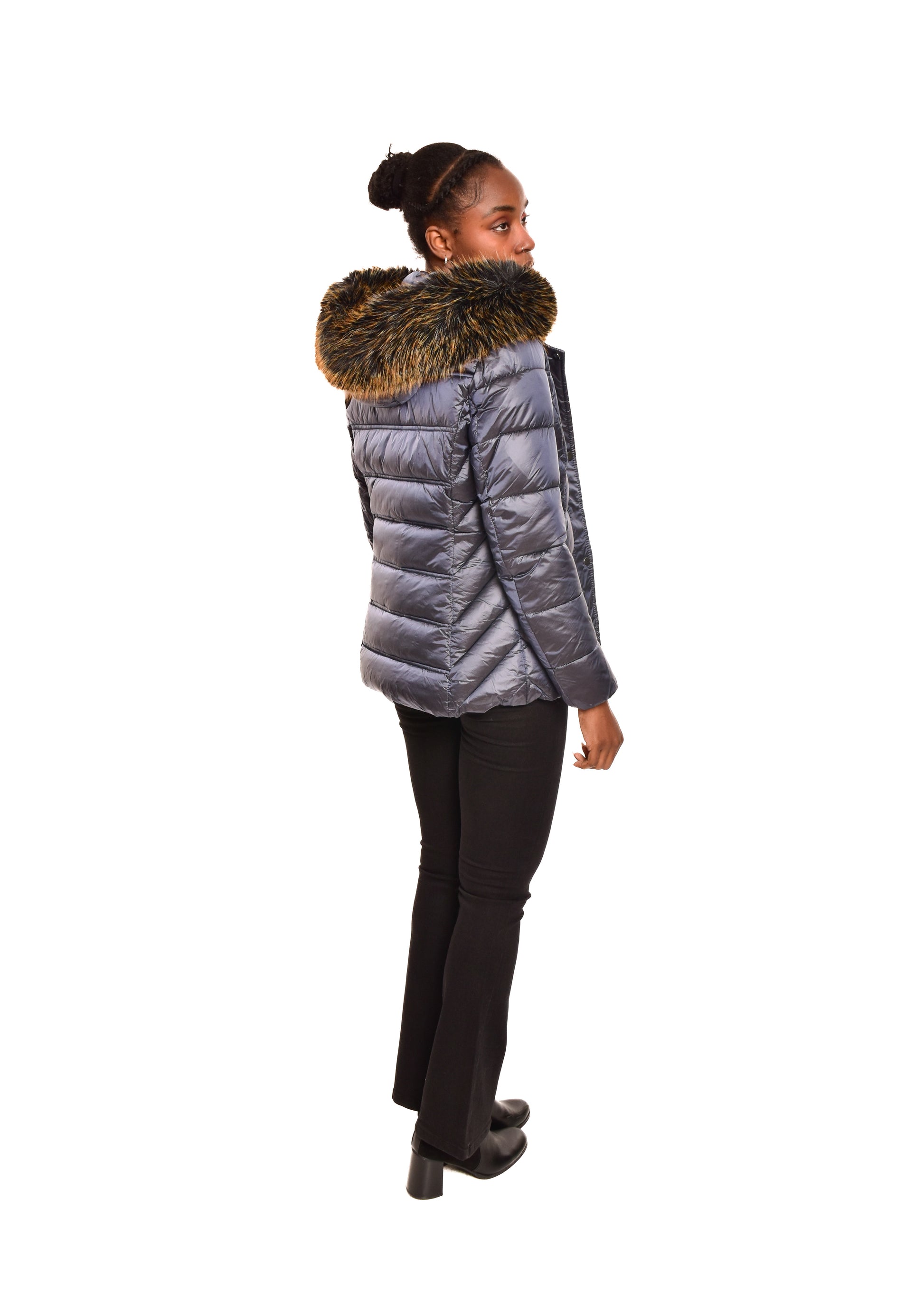 Cazadora Acolchada con efecto semi brillante. ⚠️CORTE ENTALLADO. Cuenta con múltiples bolsillos. Este modelo está disponible de la talla S a la XL, en este caso es apta hasta una talla 42. DETALLES DE LA PRENDA Cazadora acolchada Efecto semi brillante El pelo se puede retirar