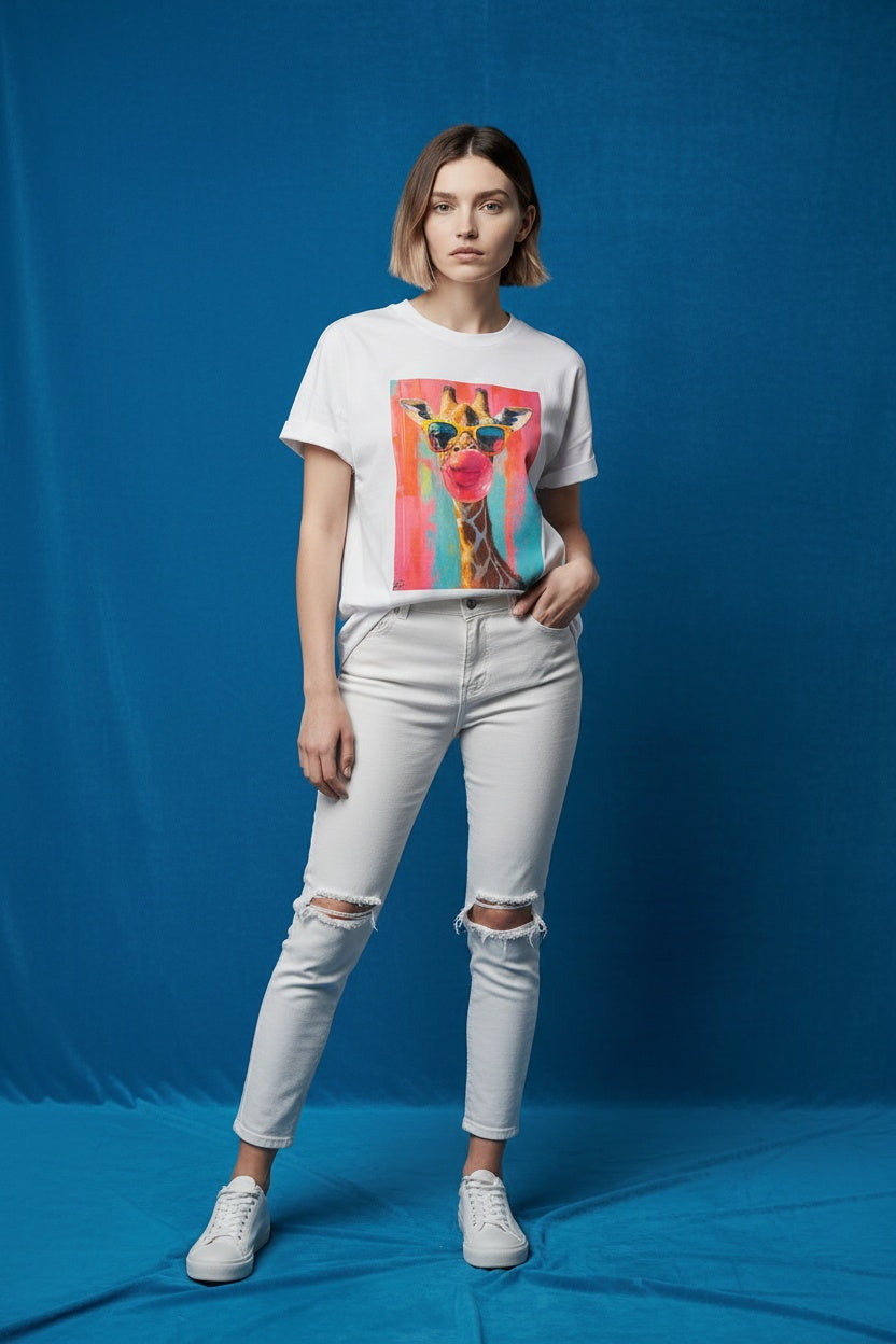 Camiseta en tejido de algodón. Selligrafía delantera. Efecto desgastado.Este modelo está disponible en talla única, en este caso es apto hasta una 42.