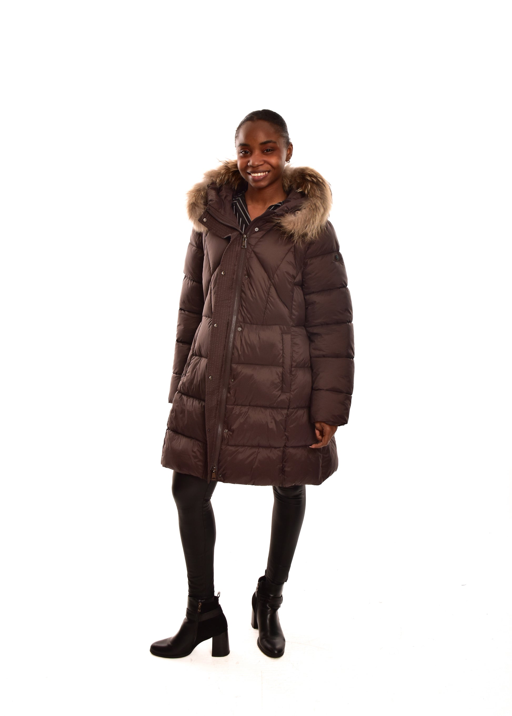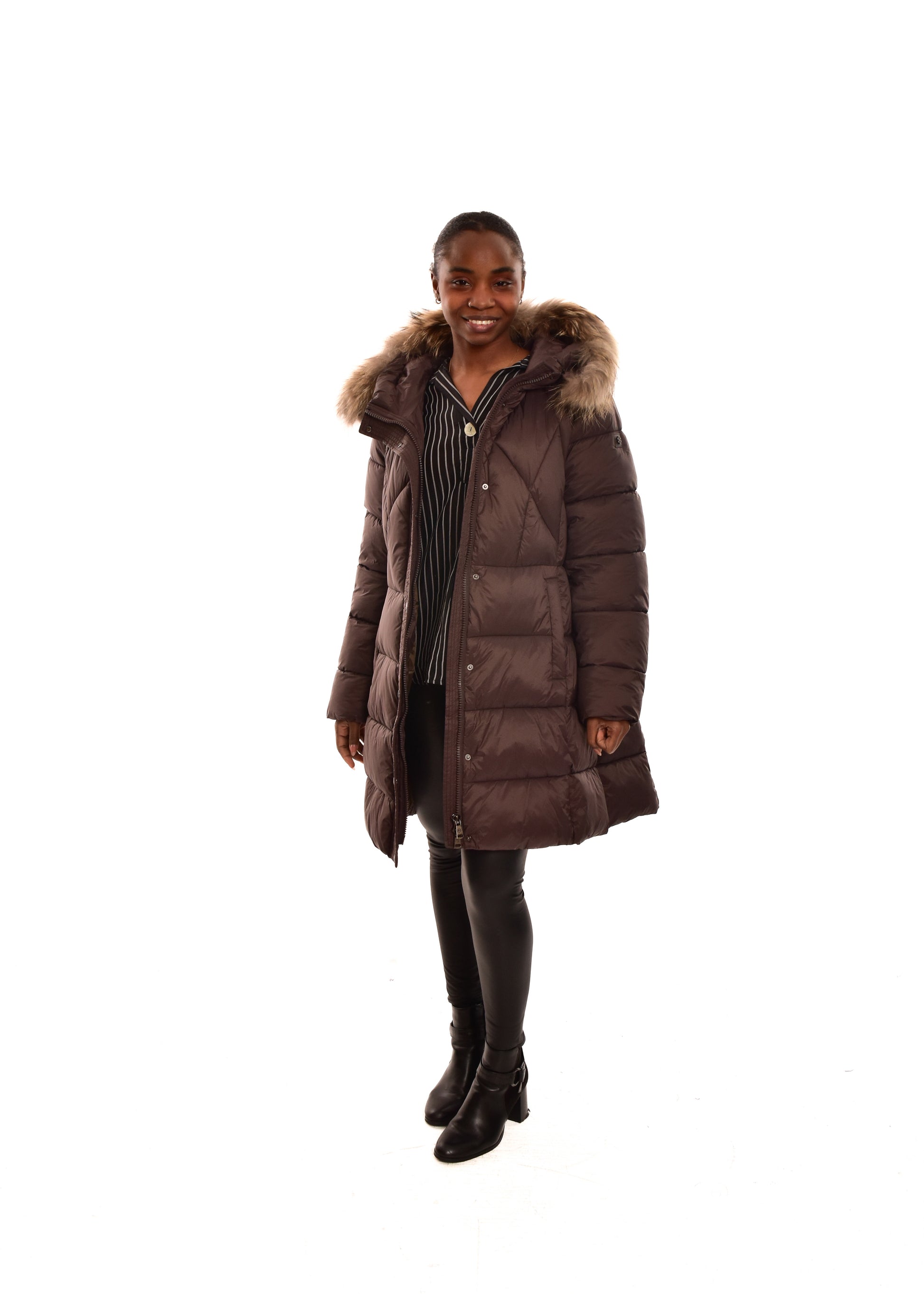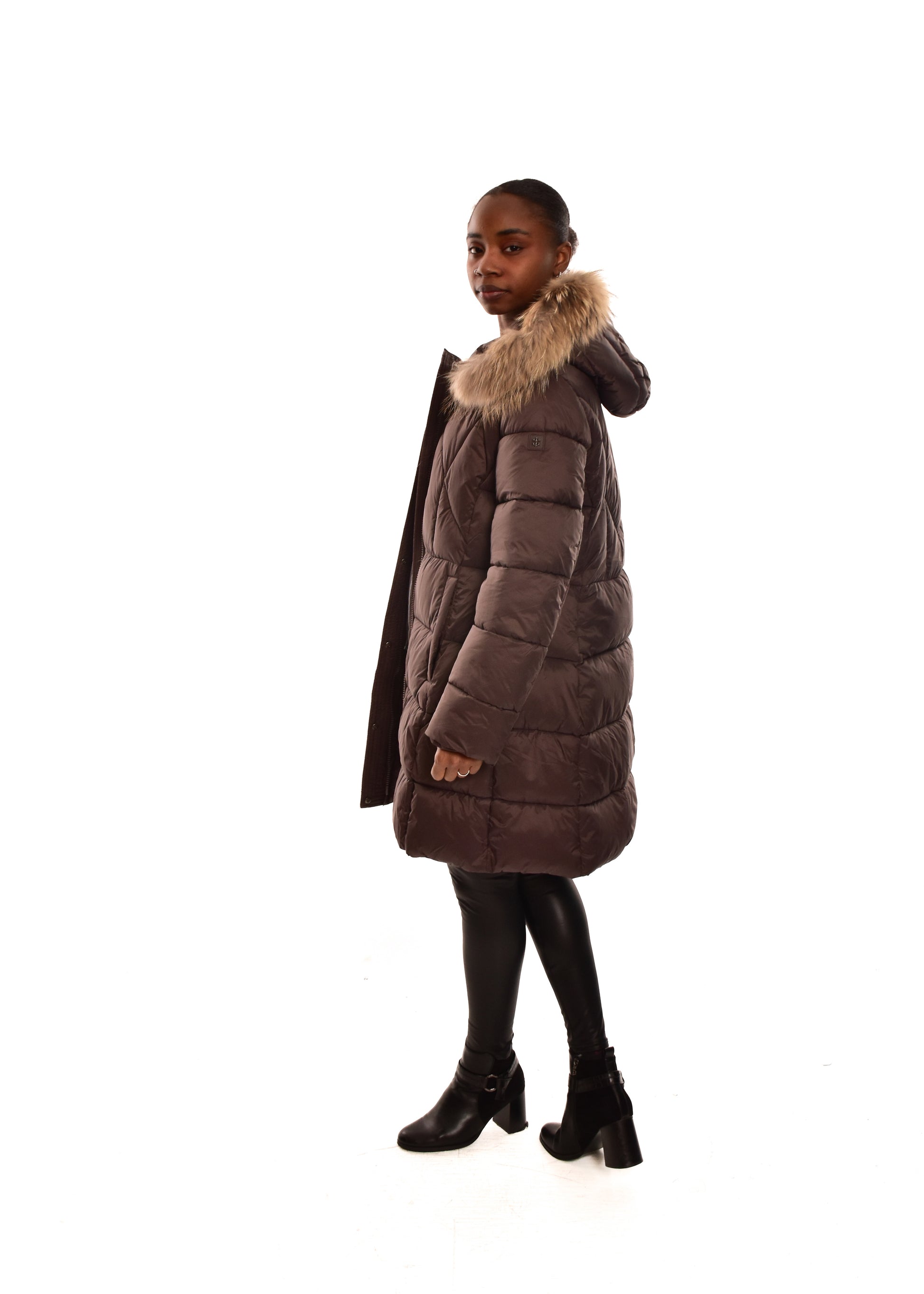 Cazadora Acolchada mate. El pelo de la capucha es desmontable (pelo natural). Cuenta con múltiples bolsillos. Este modelo está disponible de la talla 42 a la 48.