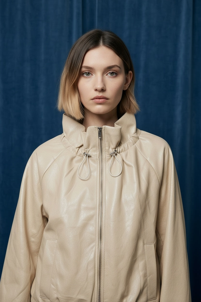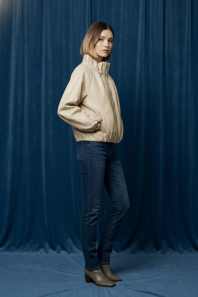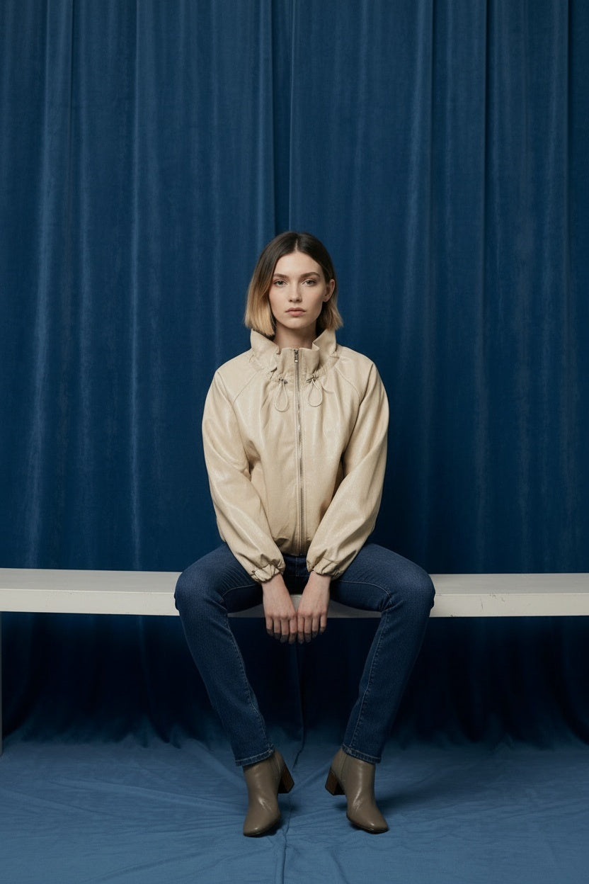 Chaqueta en tejido de polipiel. Este modelo está disponible en talla única, en este caso es apto hasta una talla 44.