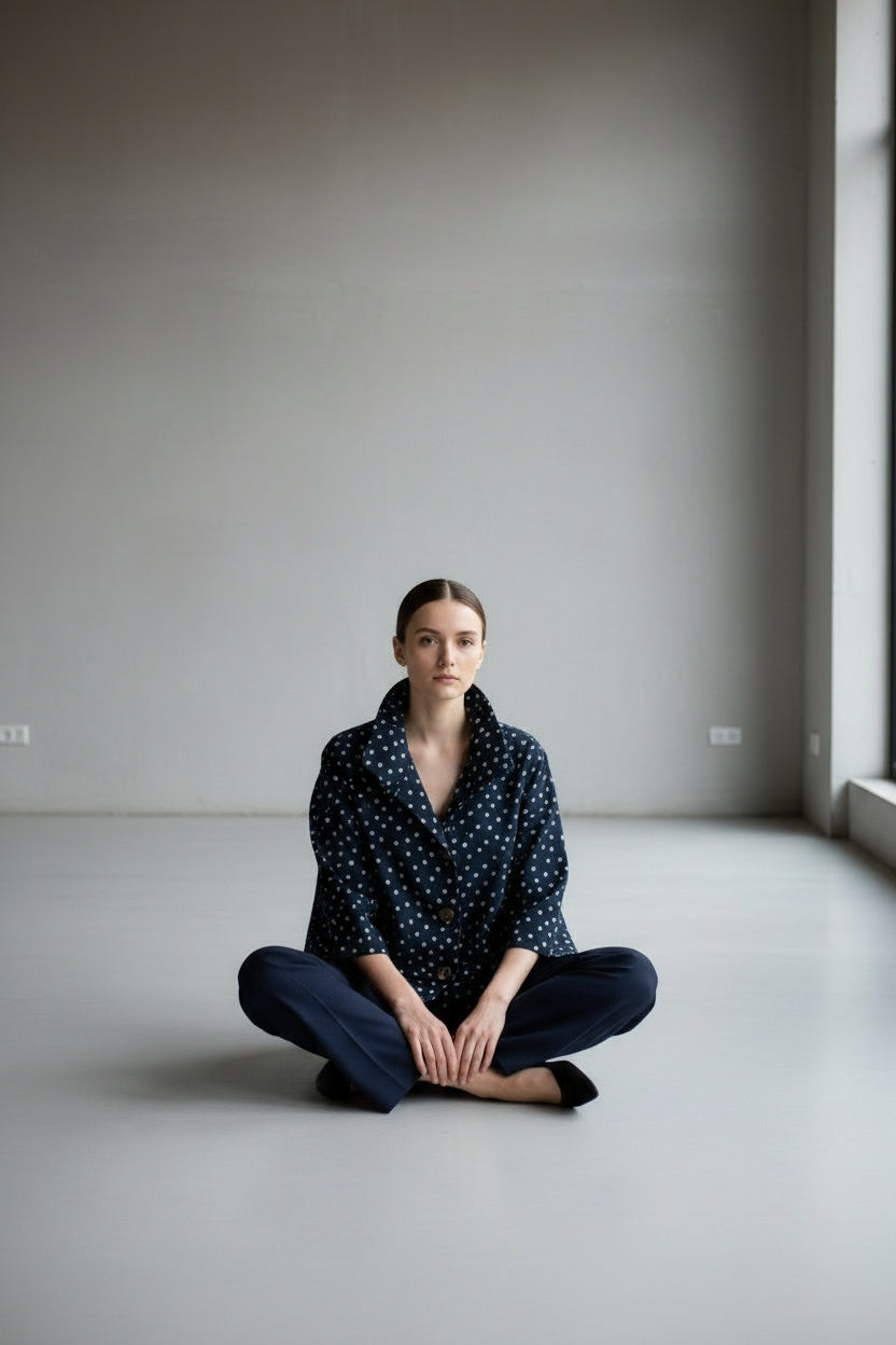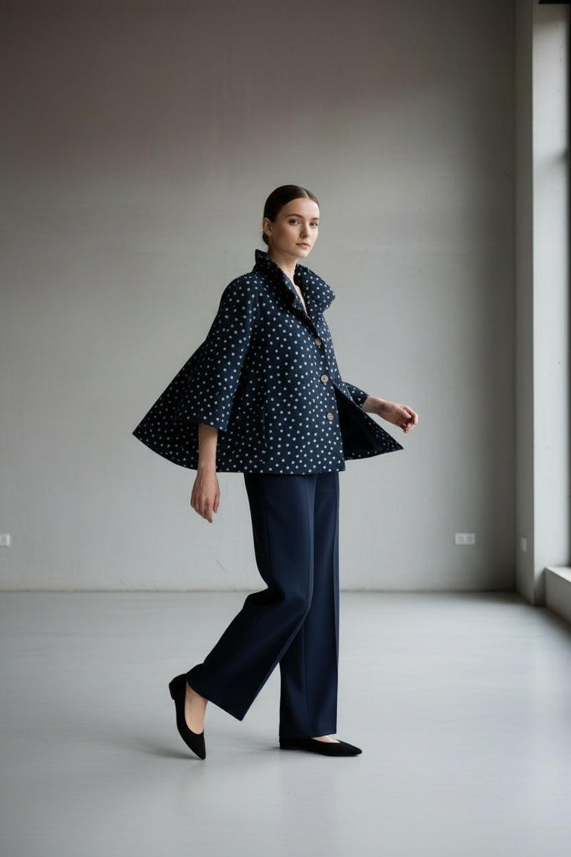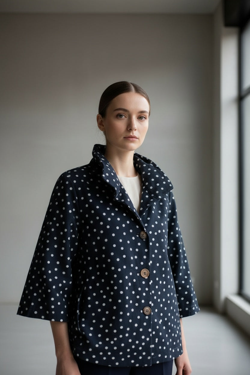 Cortavientos con estampado de topitos. Cierre con botones.Este modelo está disponible en talla única, en este caso es apto hasta una 42.