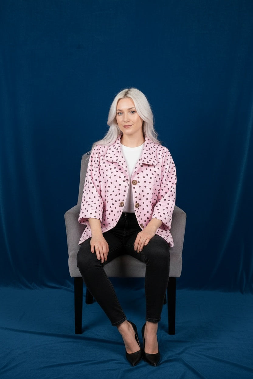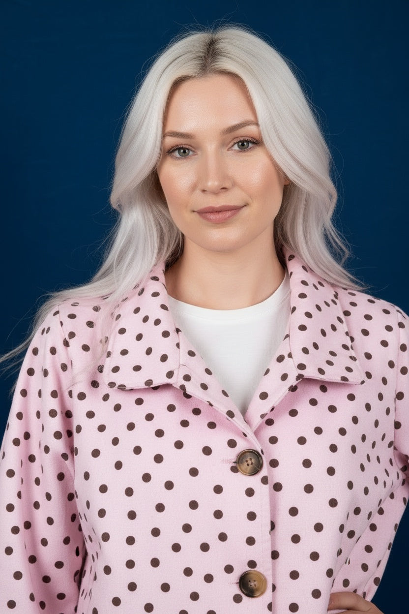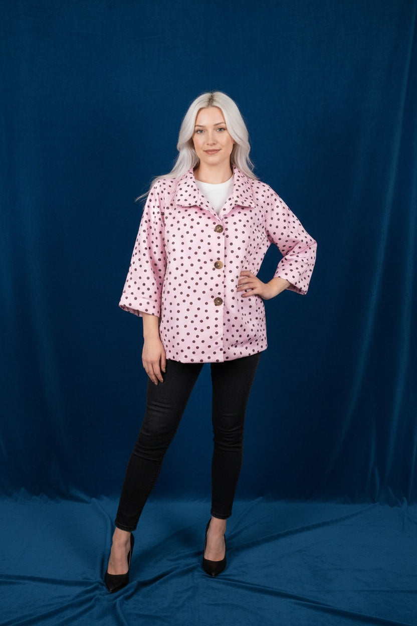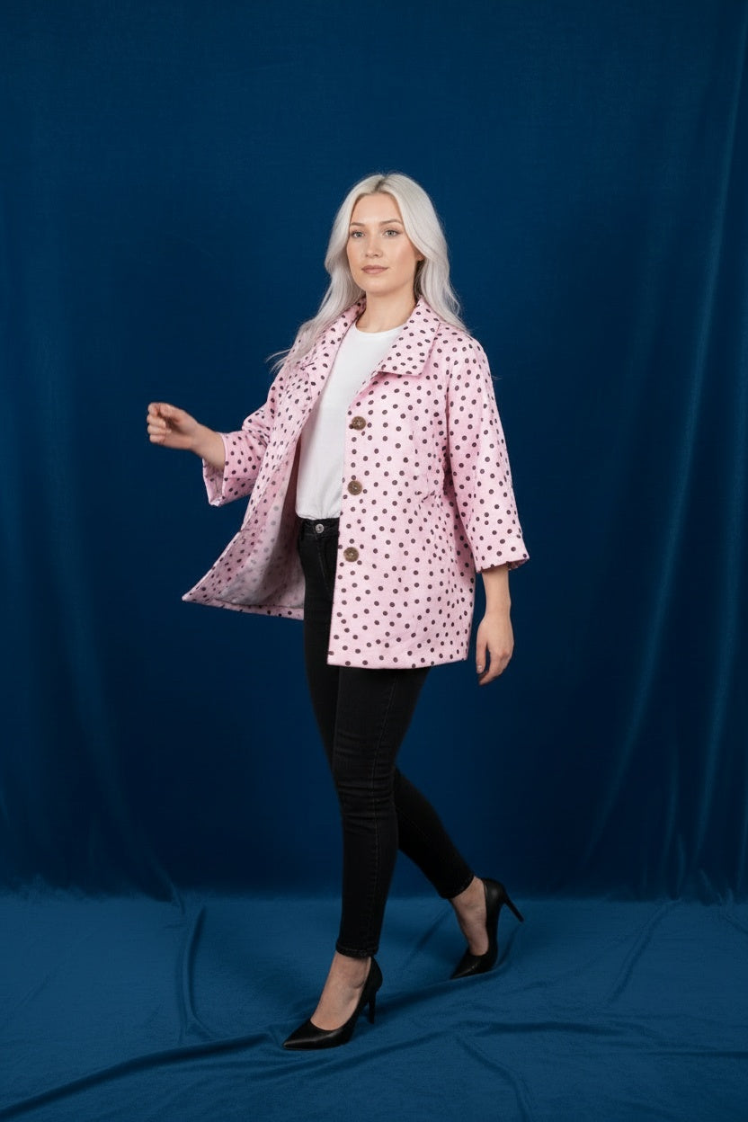 Cortavientos con estampado de topitos. Cierre con botones.Este modelo está disponible en talla única, en este caso es apto hasta una 42.