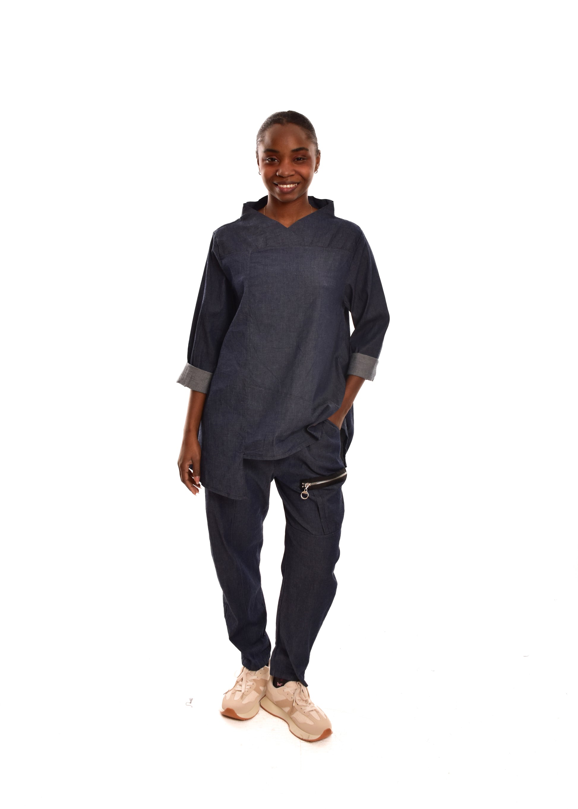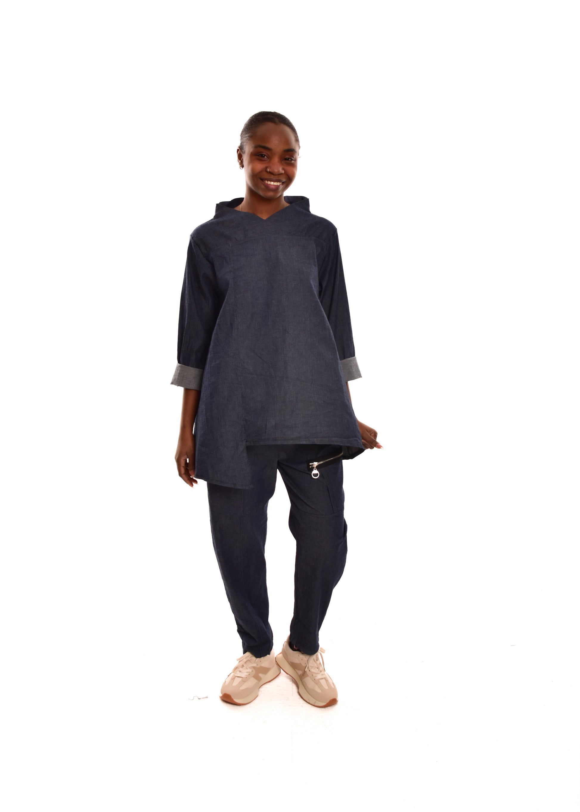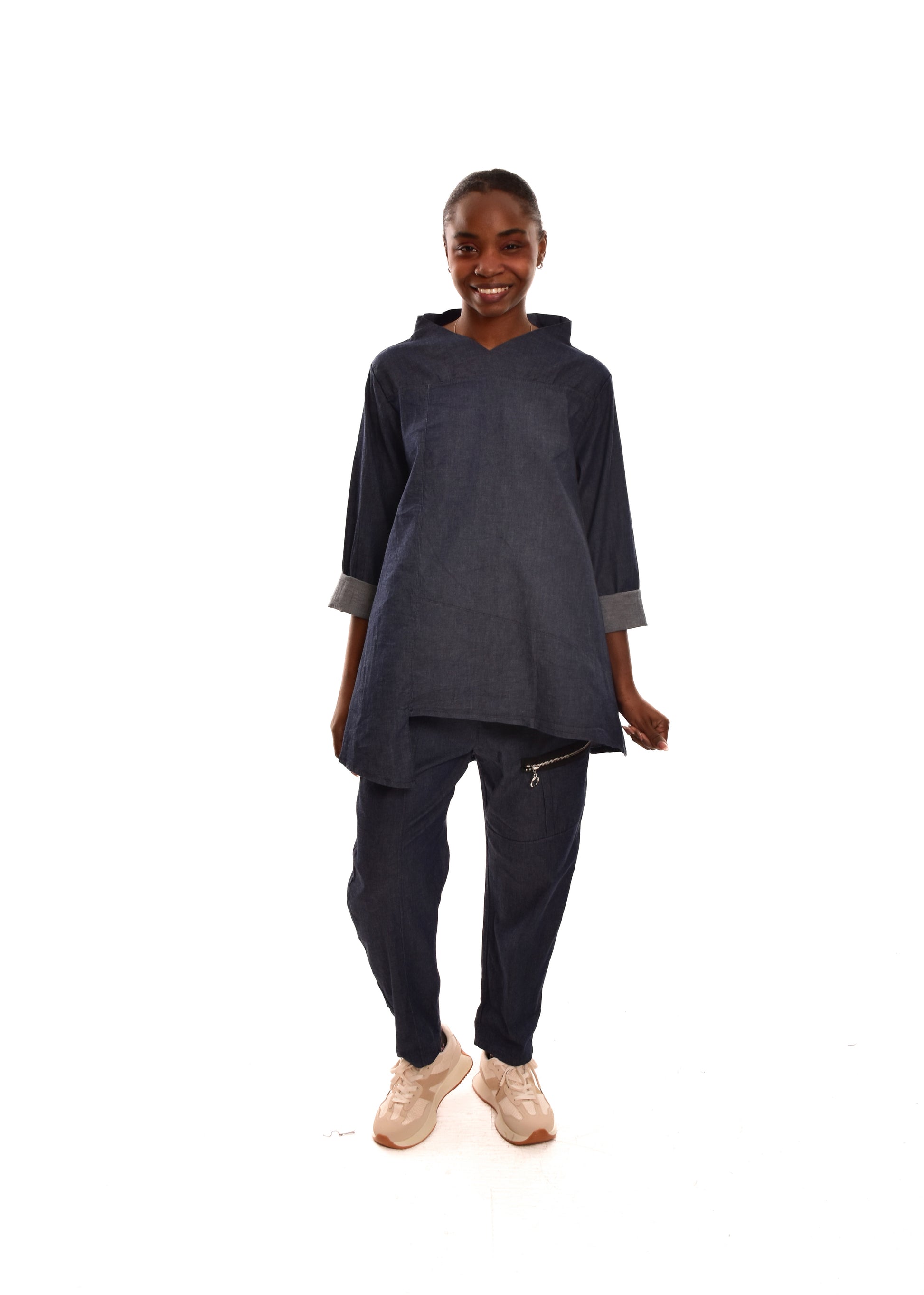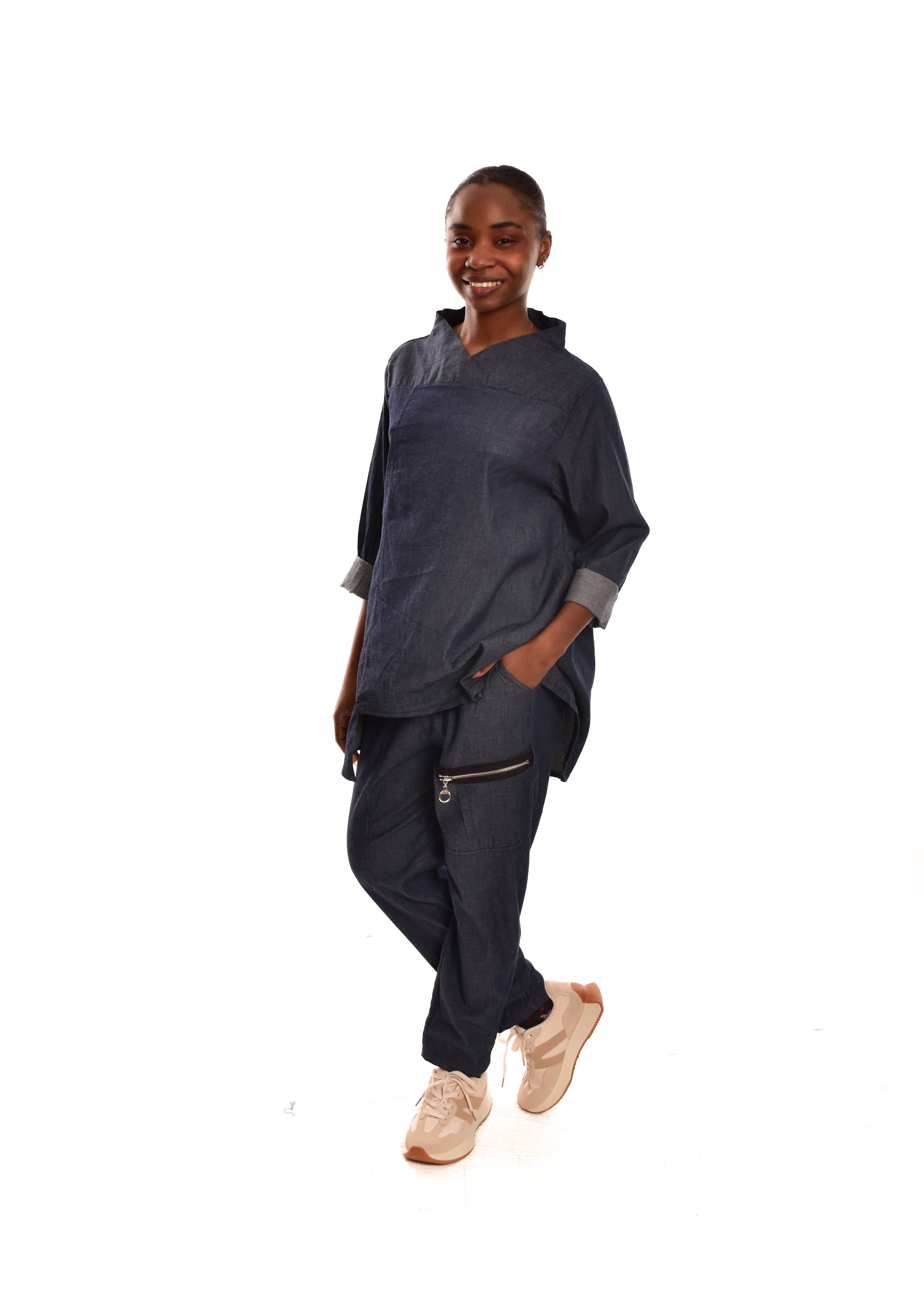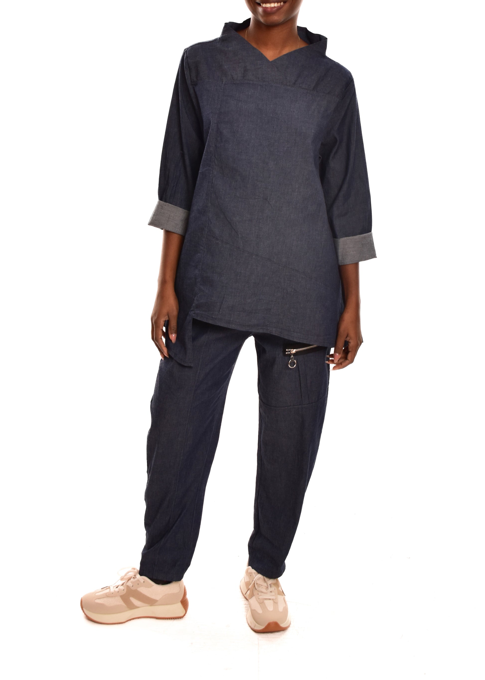 Conjunto compuesto por Blusón y pantalón. Detalles de cremalleras. Este modelo está disponible en Talla única, en este caso es apto hasta una talla 44.