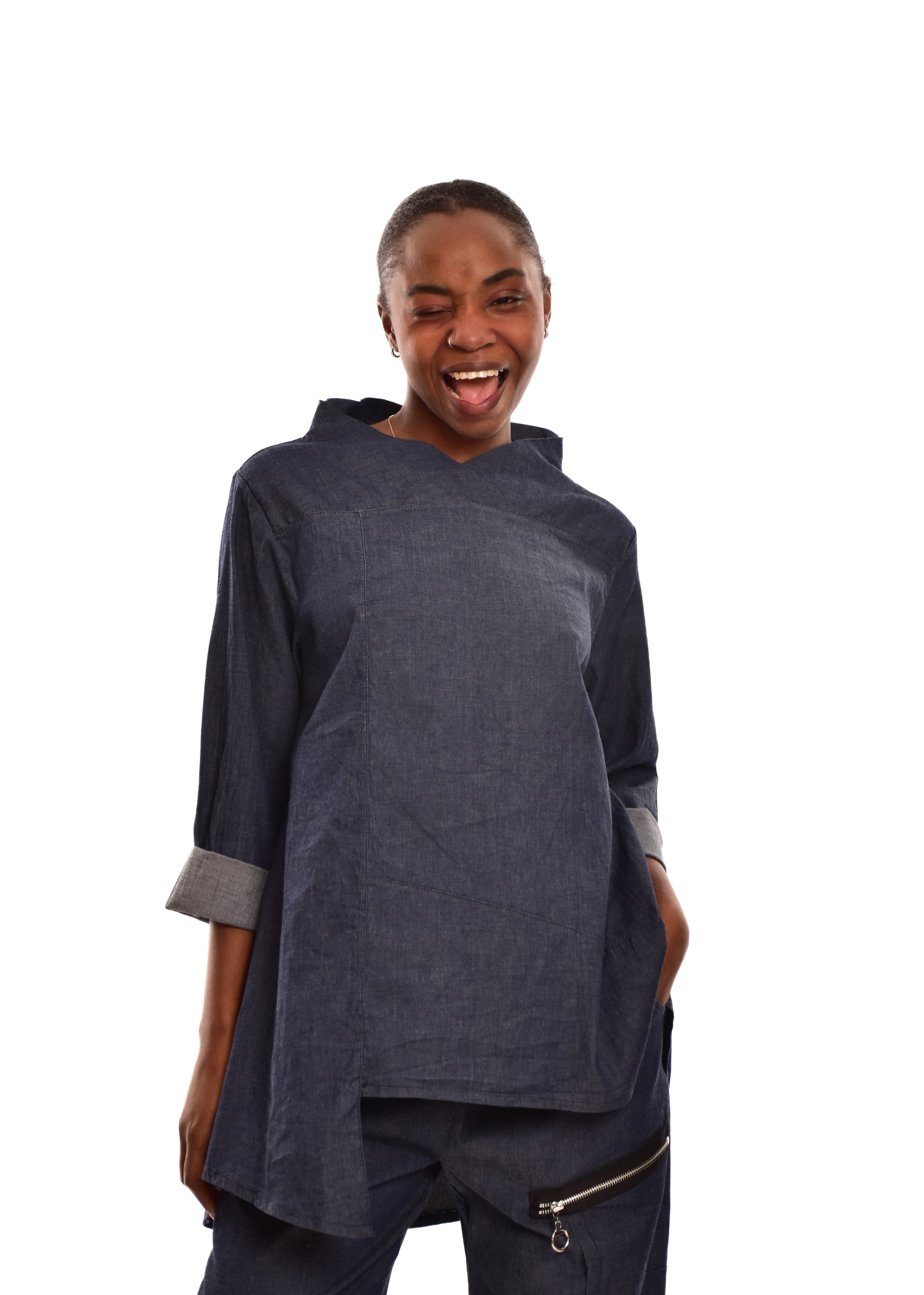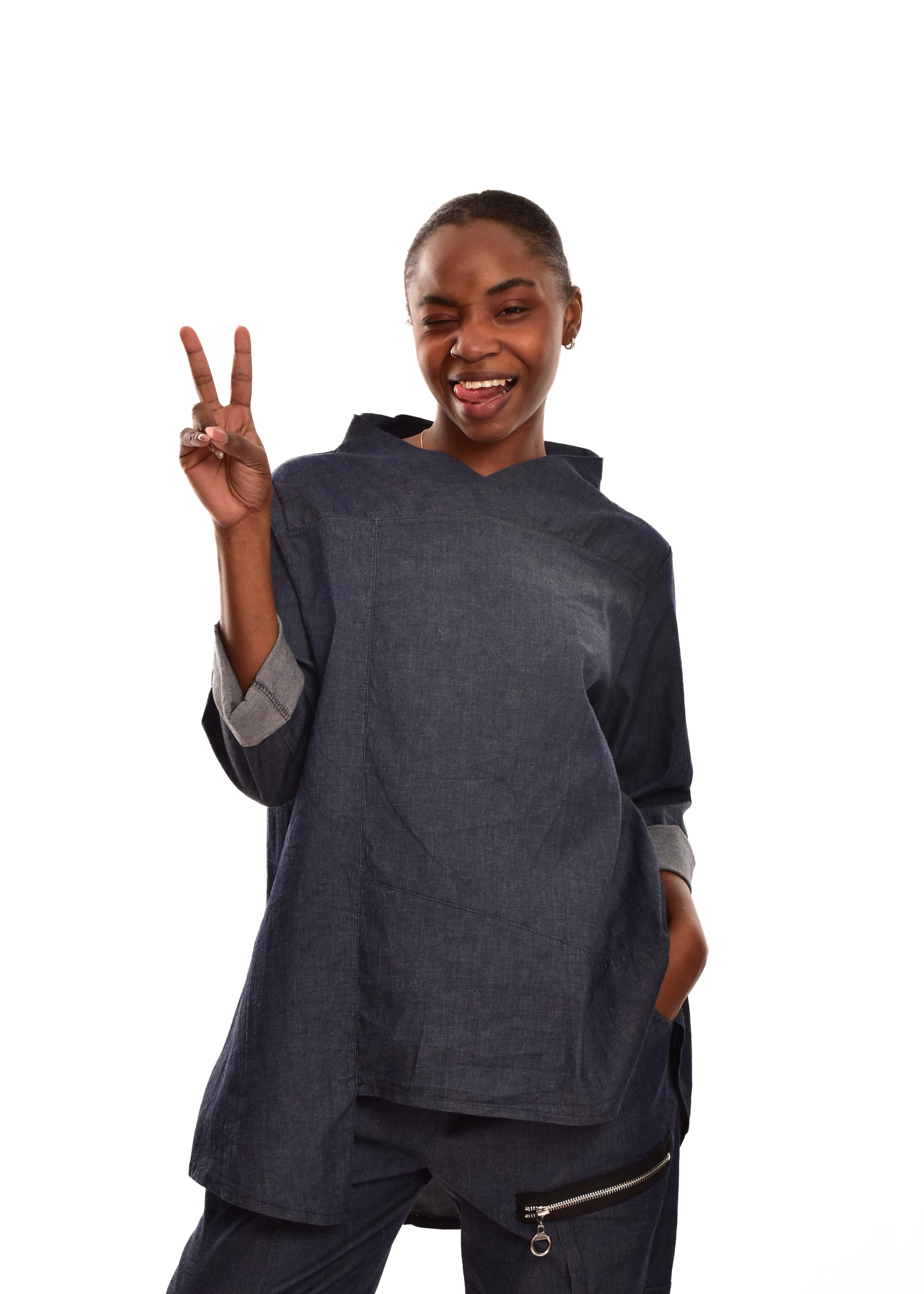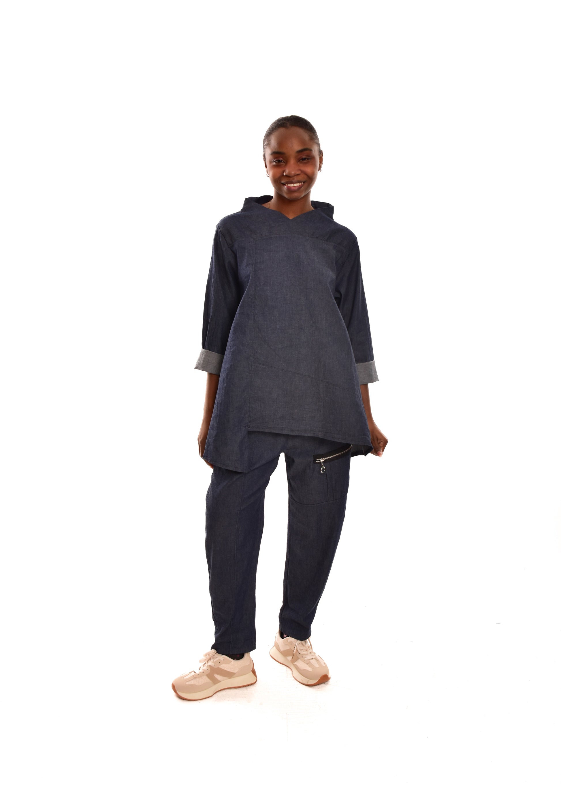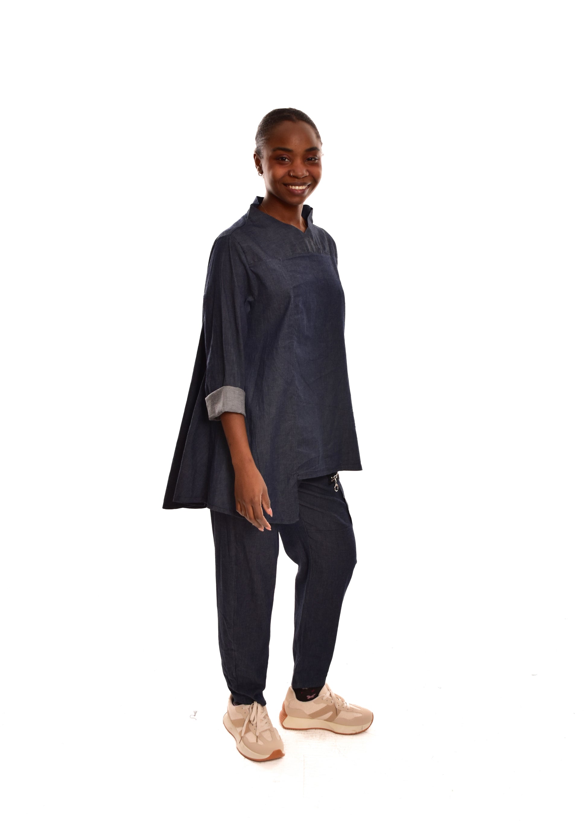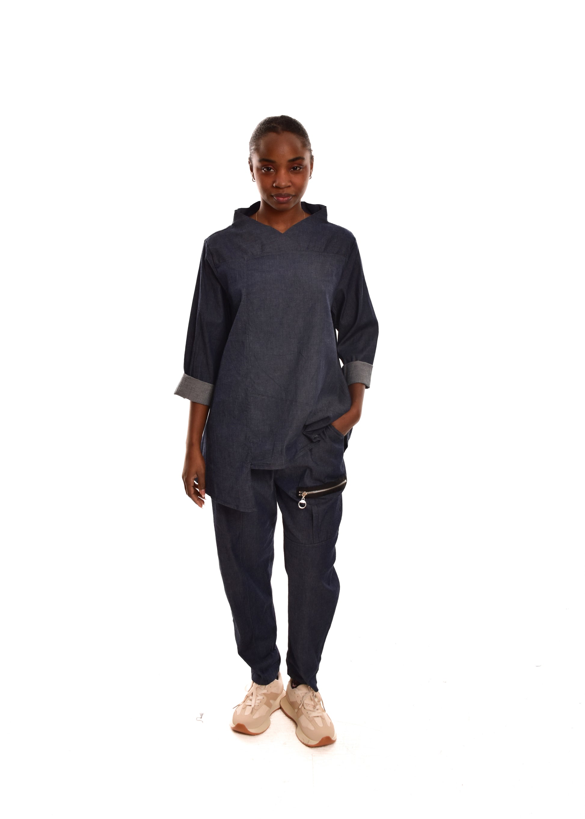 Conjunto compuesto por Blusón y pantalón. Detalles de cremalleras. Este modelo está disponible en Talla única, en este caso es apto hasta una talla 44.