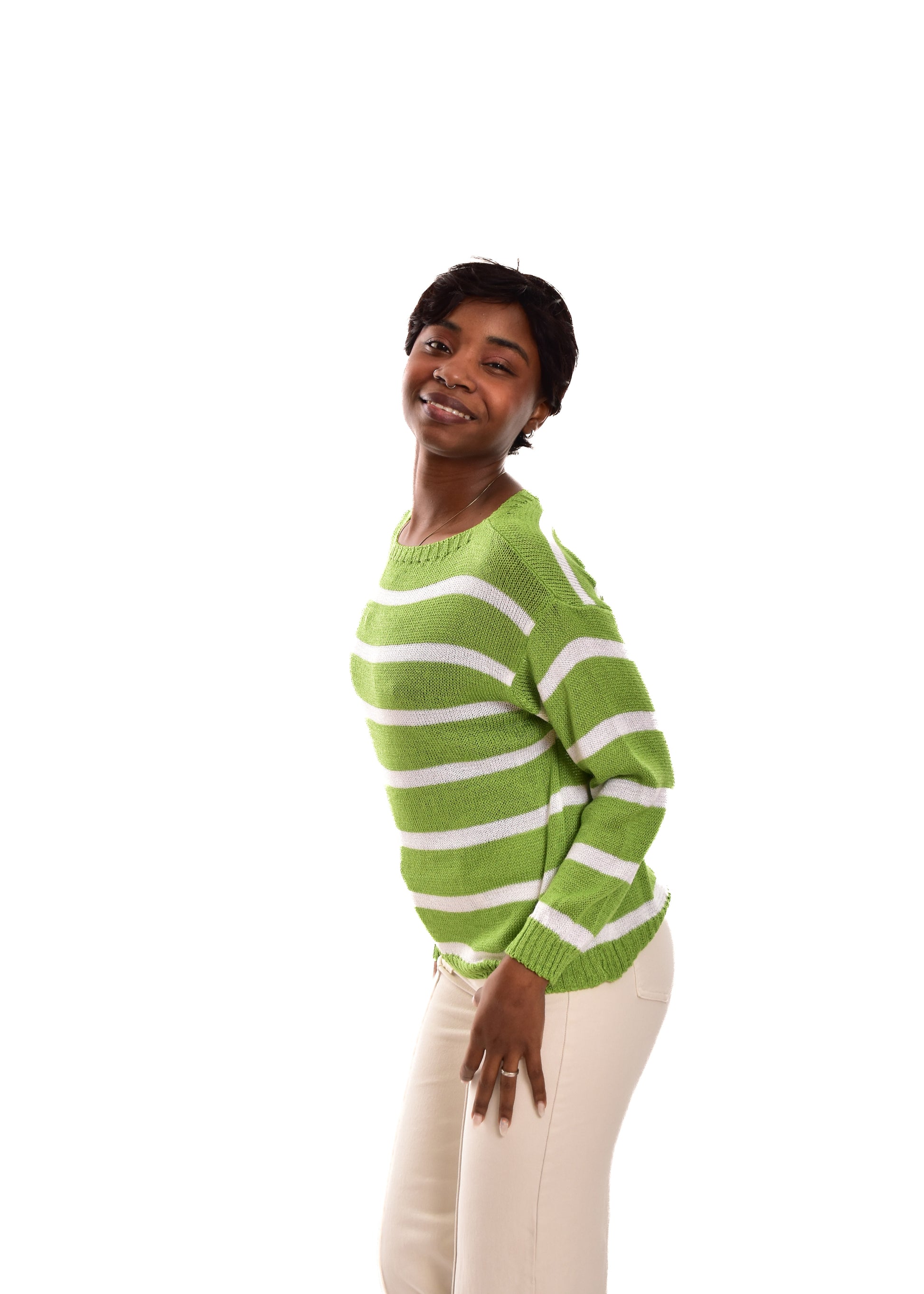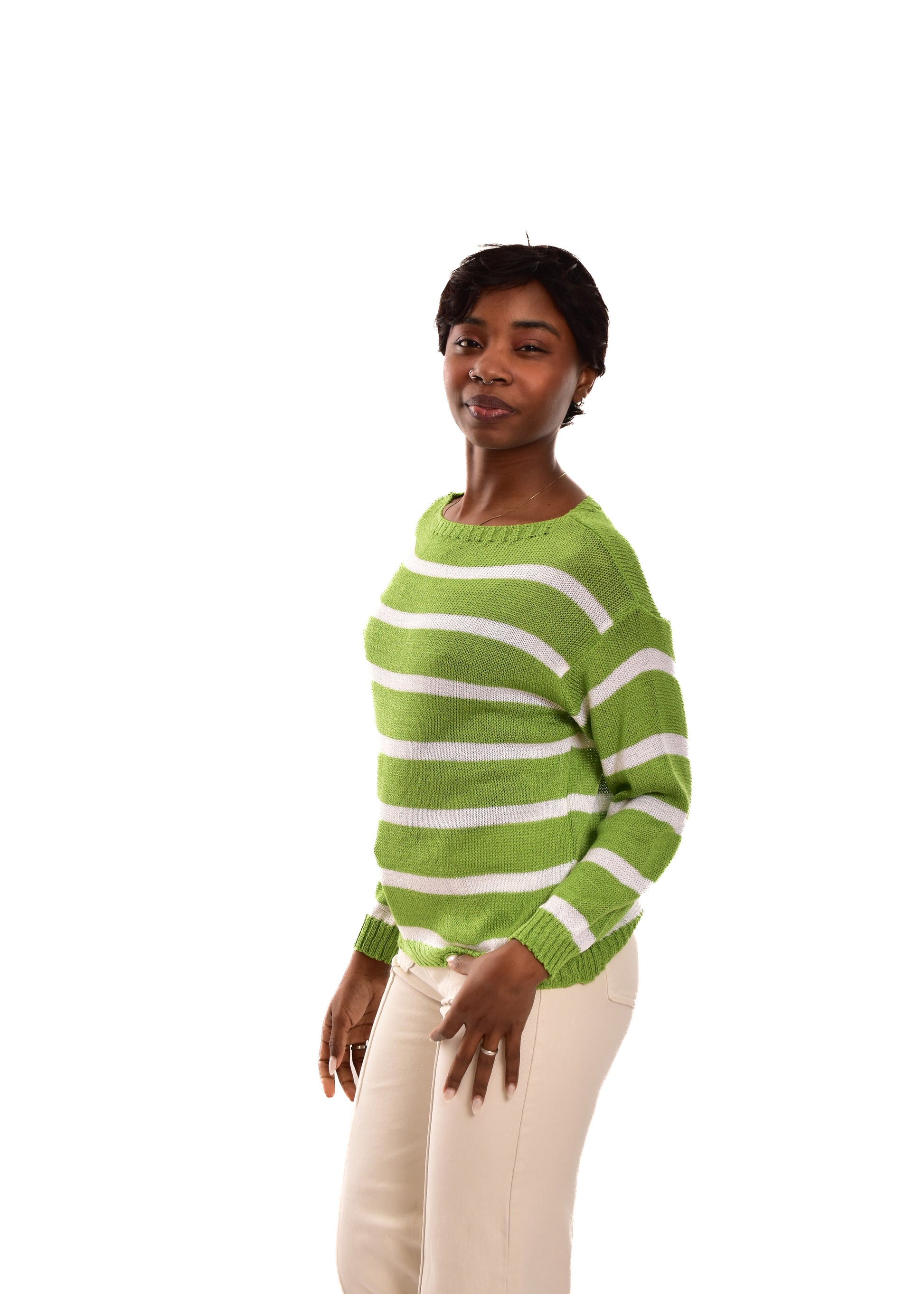 Jersey de punto de hilo calado. Esta prenda está disponible en talla única, en este caso es apto hasta una talla 42.