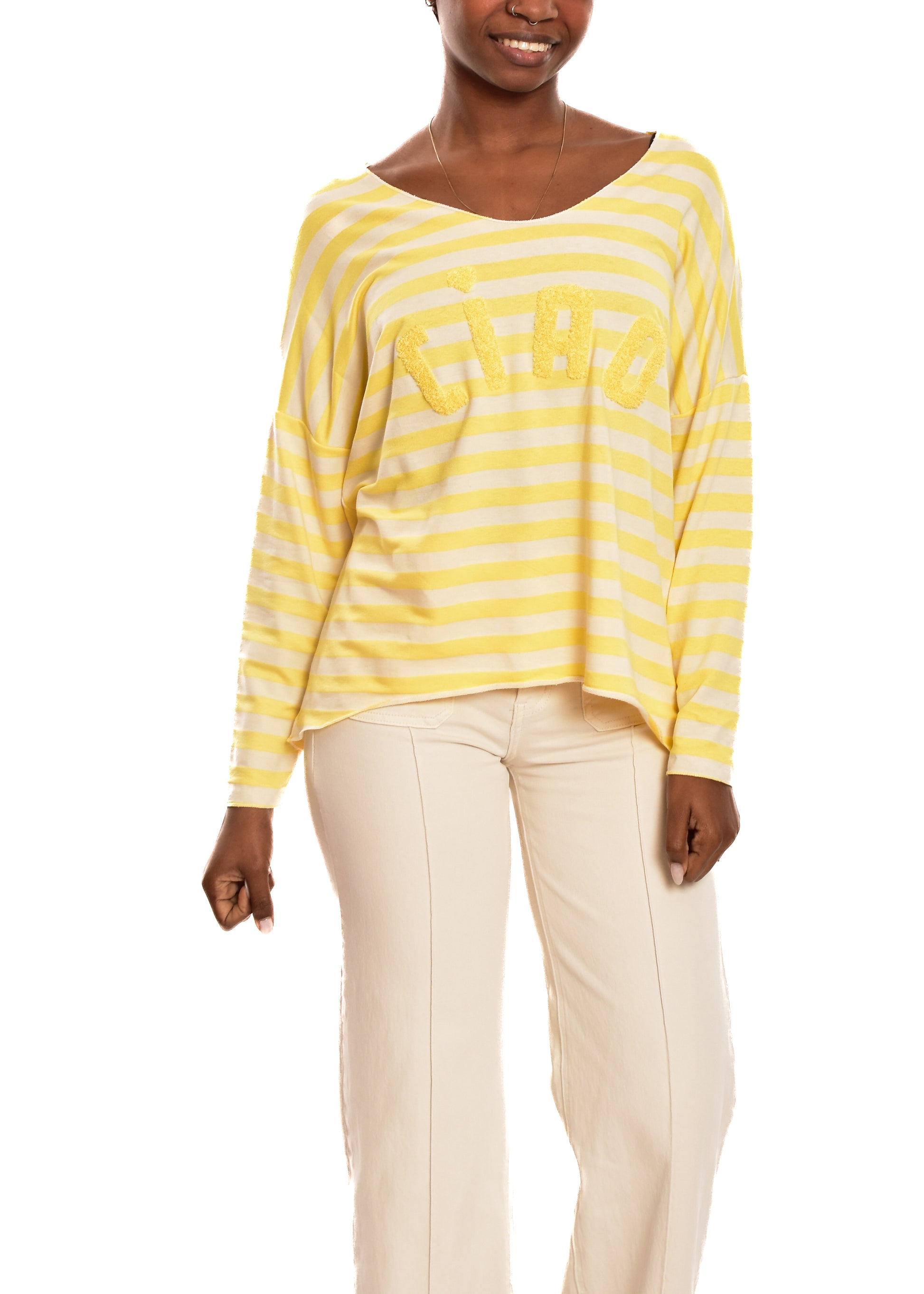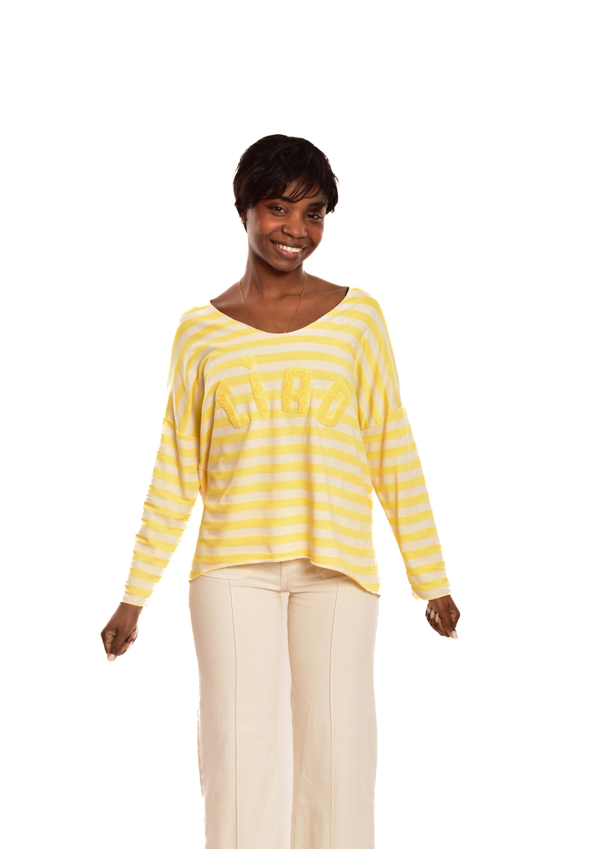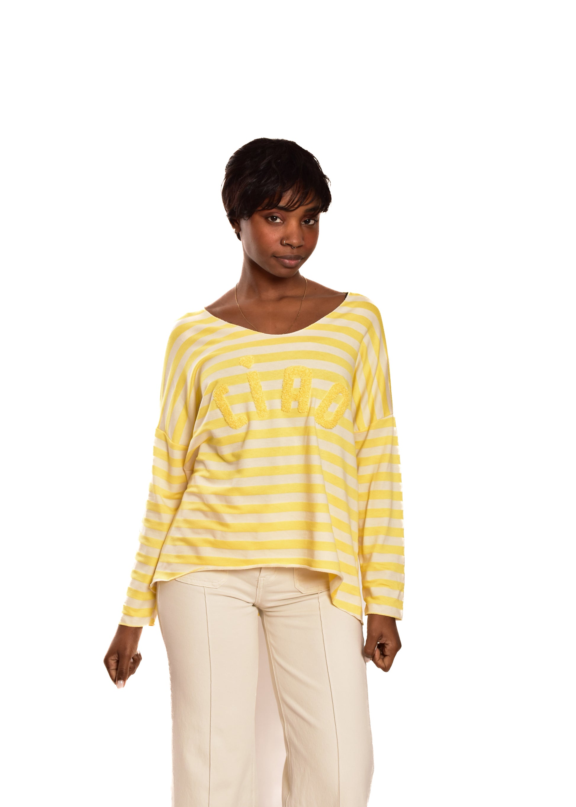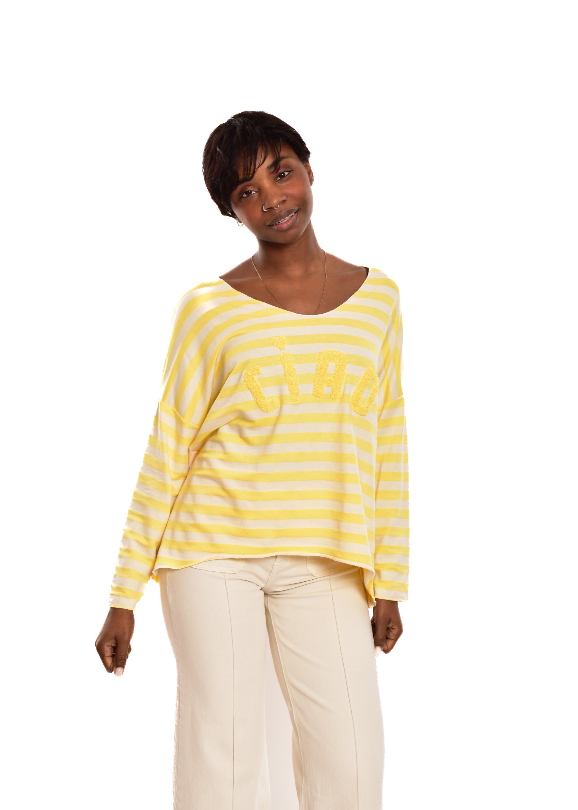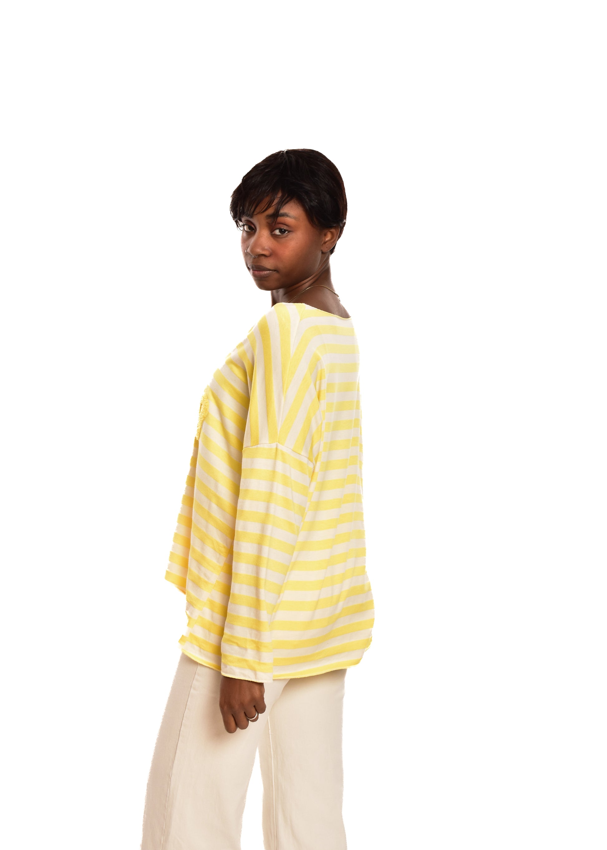 Jersey de punto de hilo. Esta prenda está disponible en talla única, en este caso es apto hasta una talla 44 amplia.