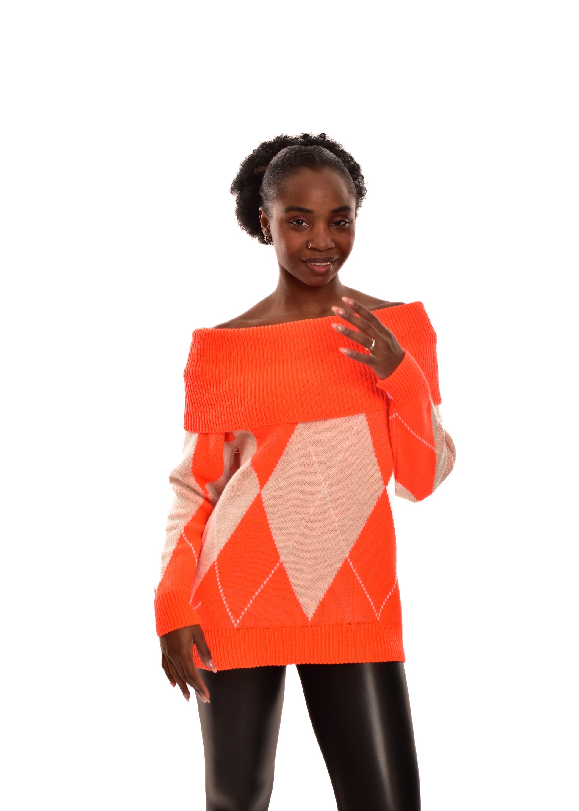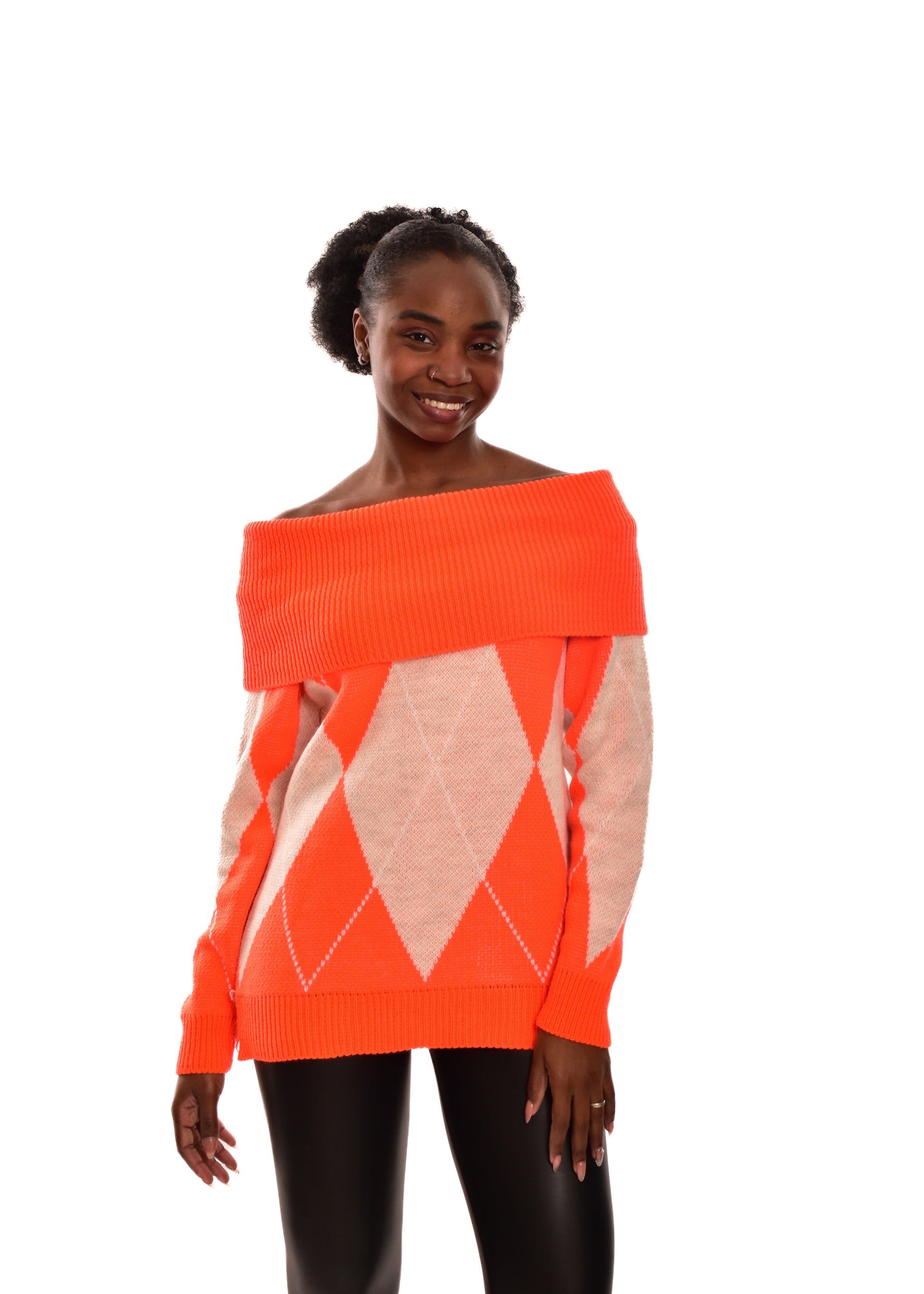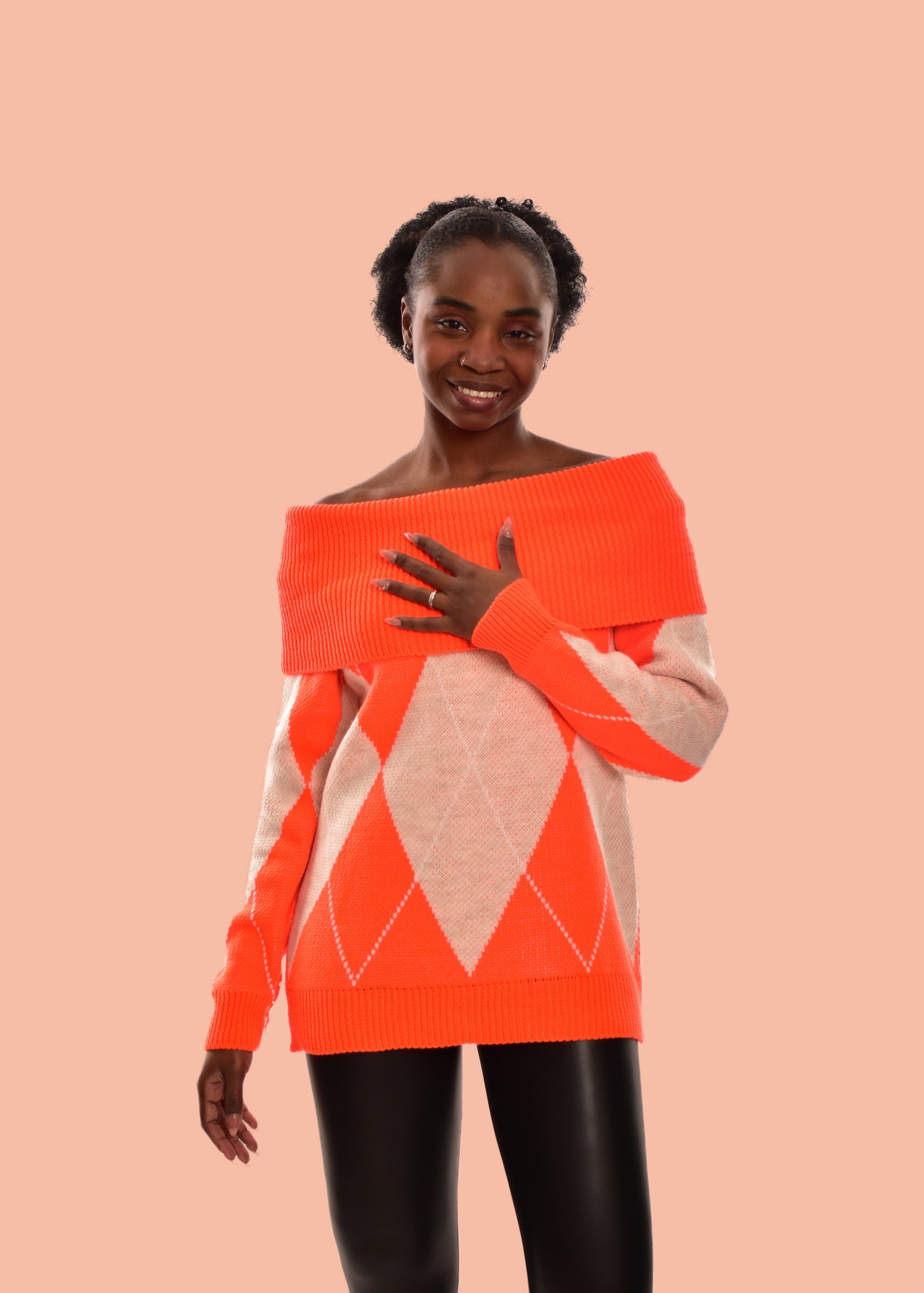 Jersey de punto grueso. Esta prenda está disponible en talla única, en este caso es apto hasta una talla 42.