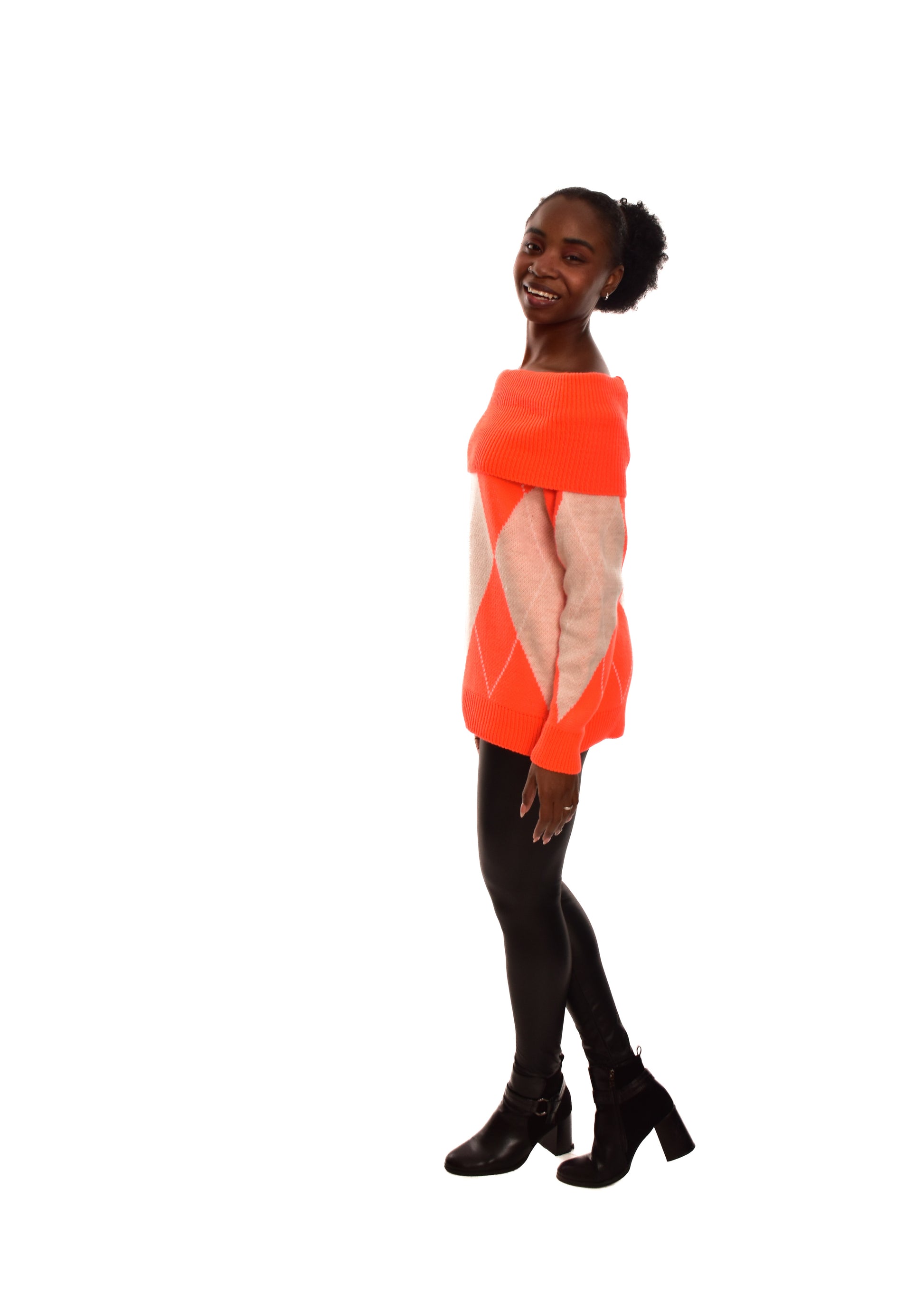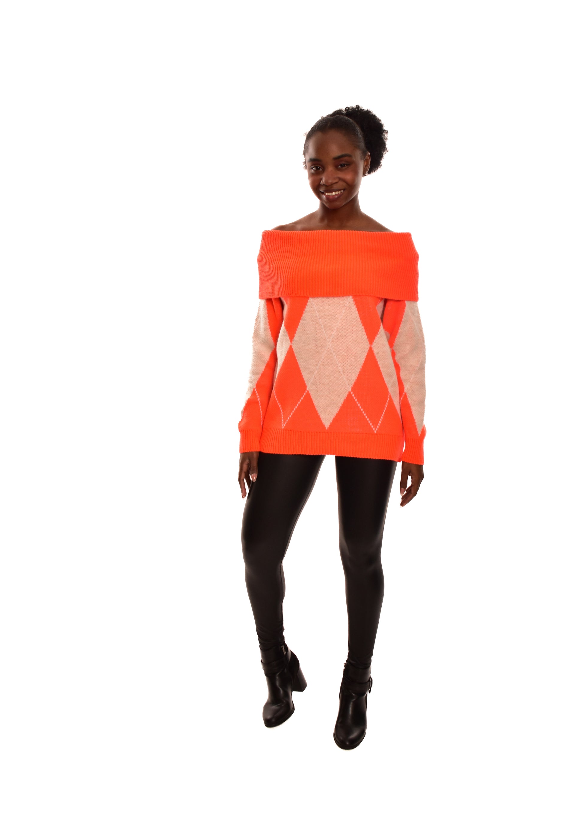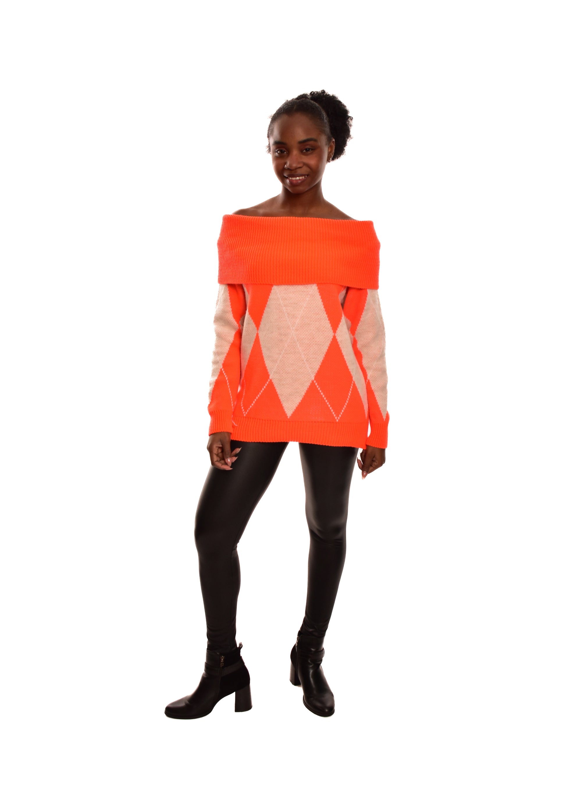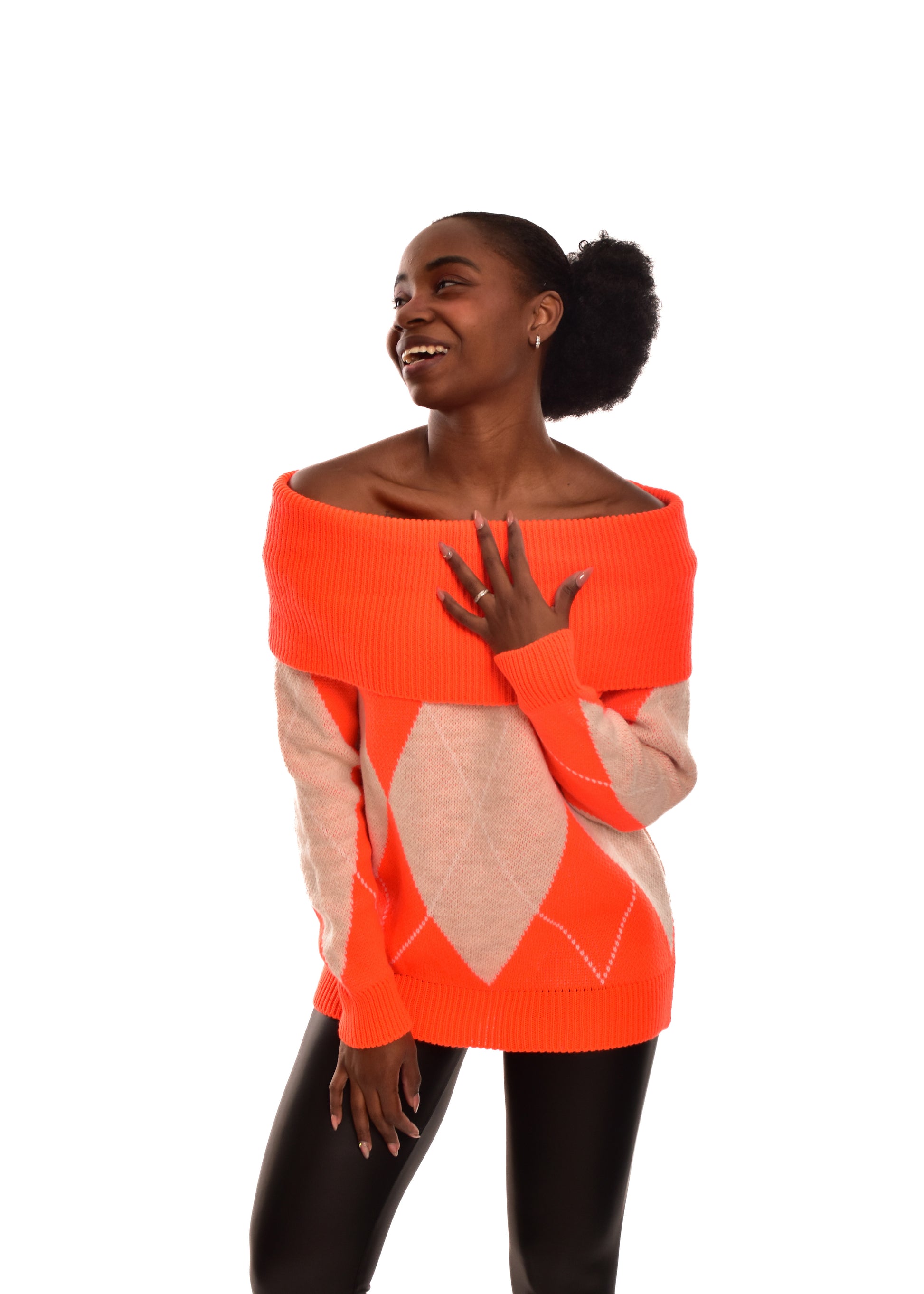 Jersey de punto grueso. Esta prenda está disponible en talla única, en este caso es apto hasta una talla 42.