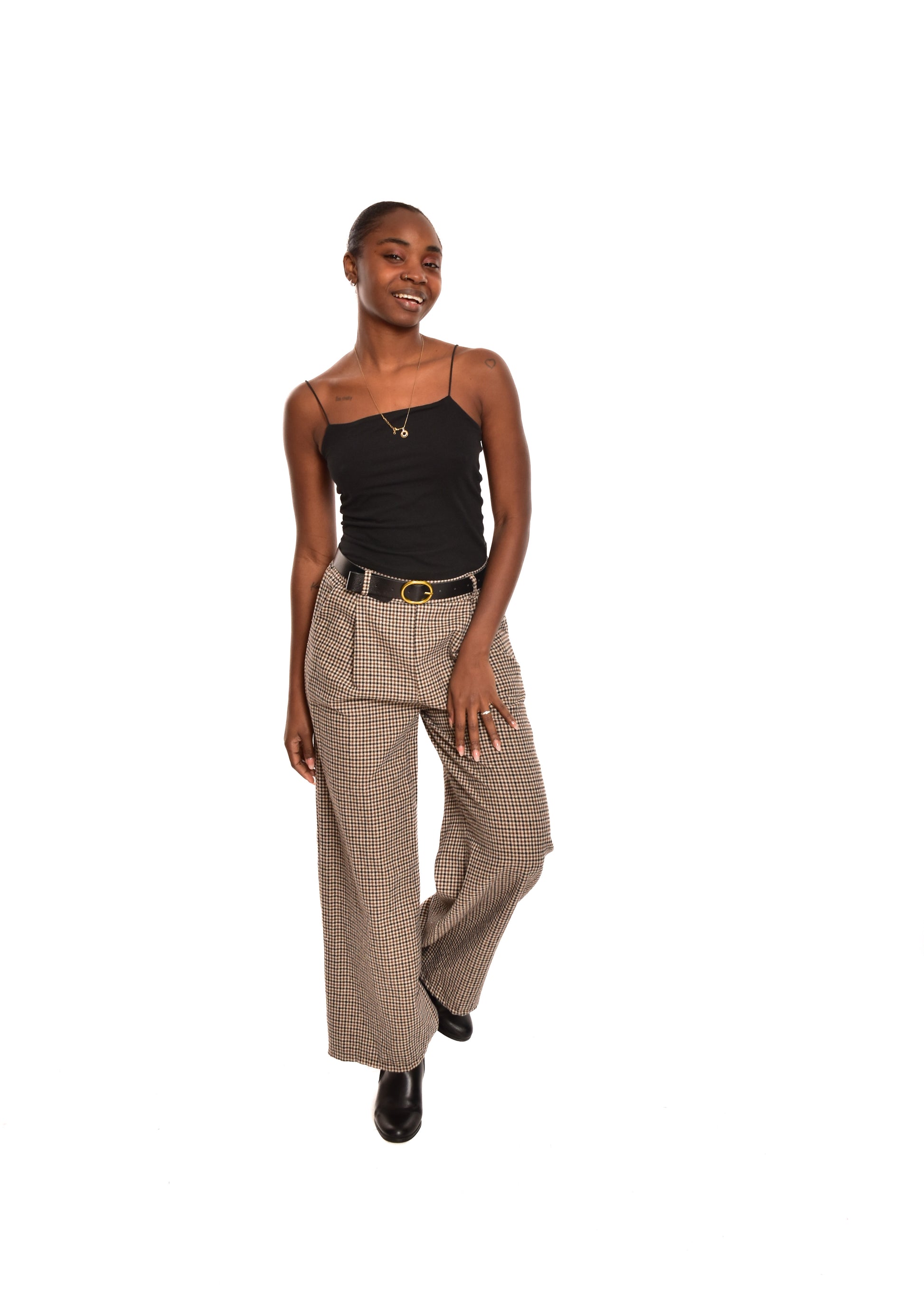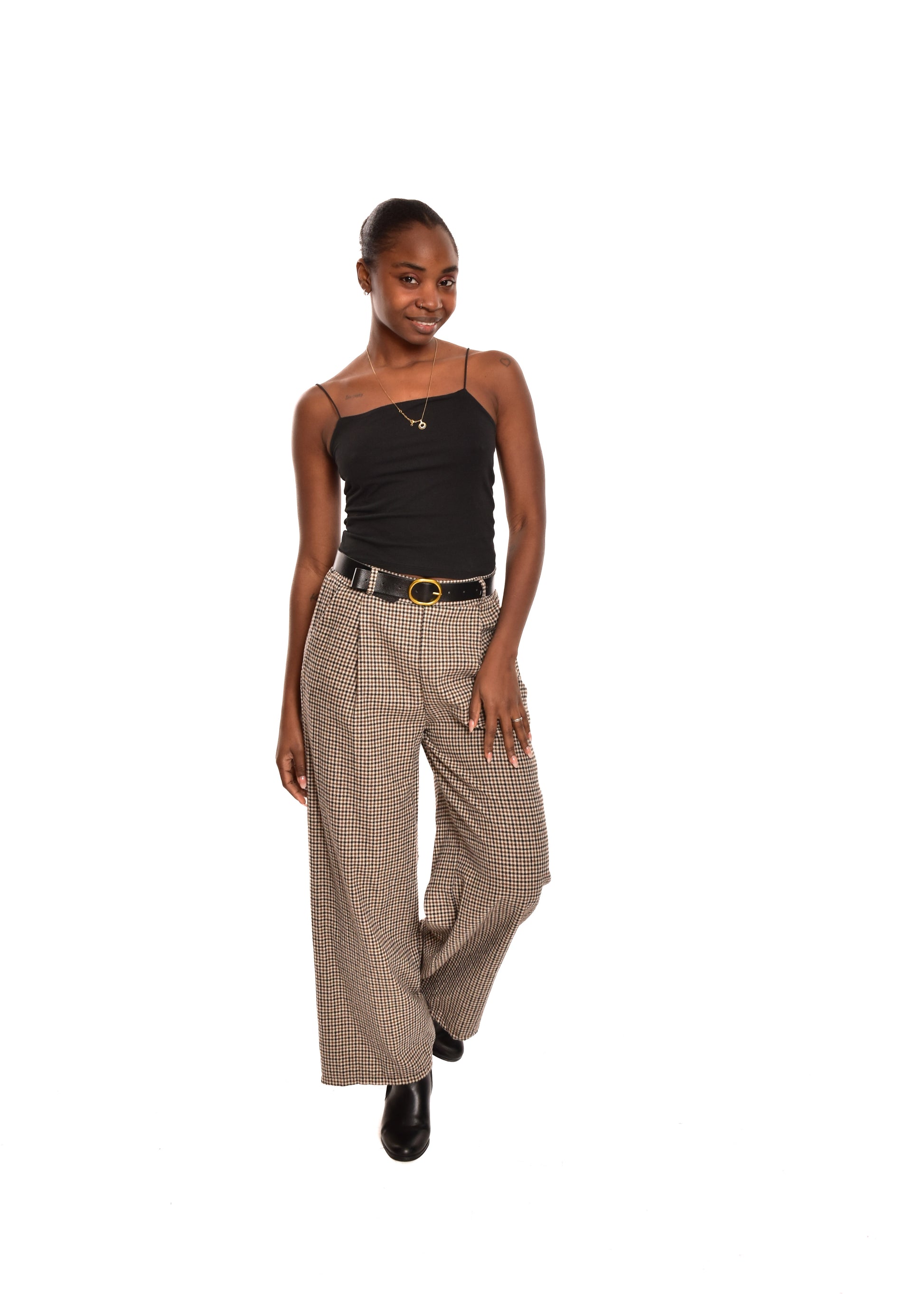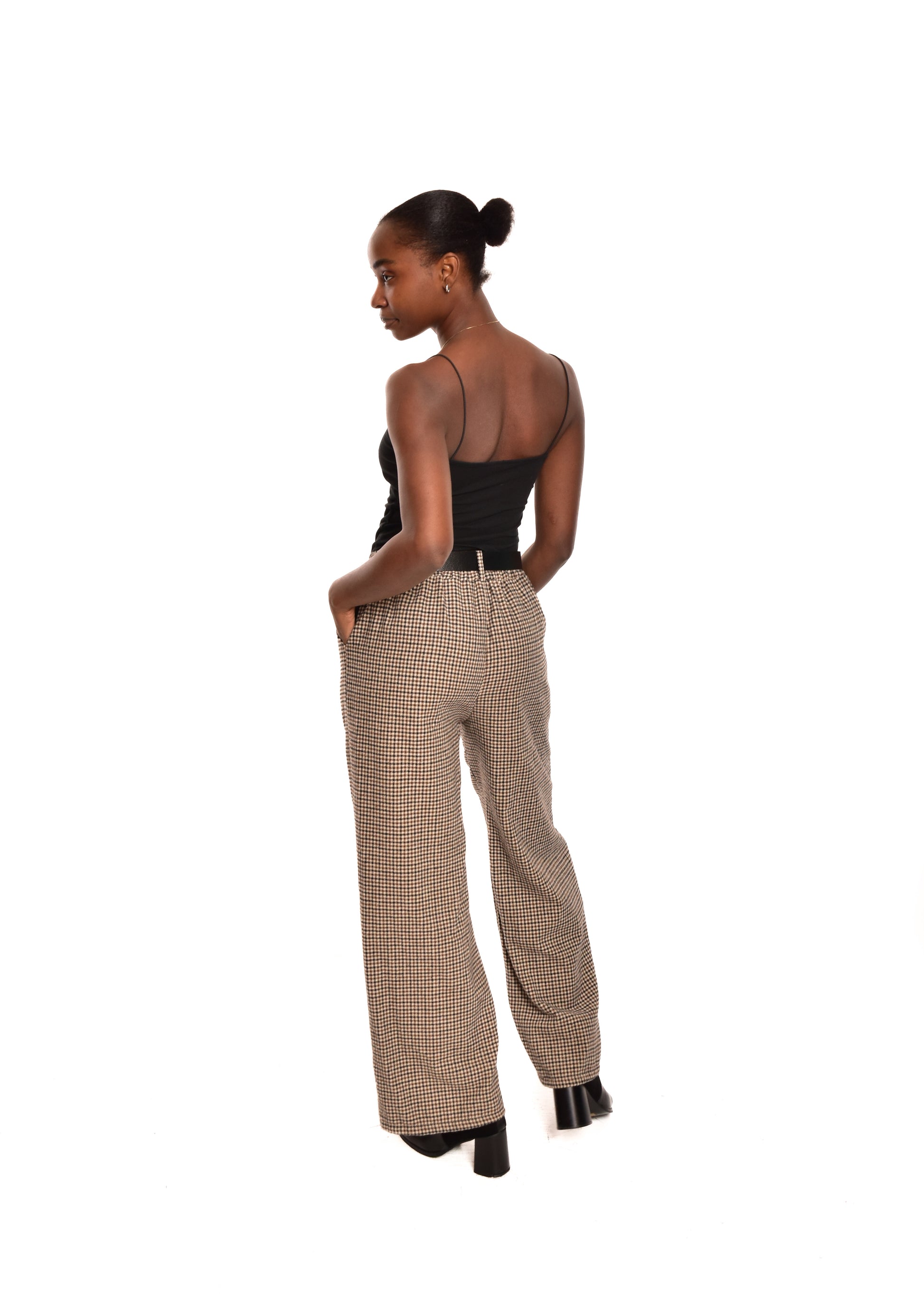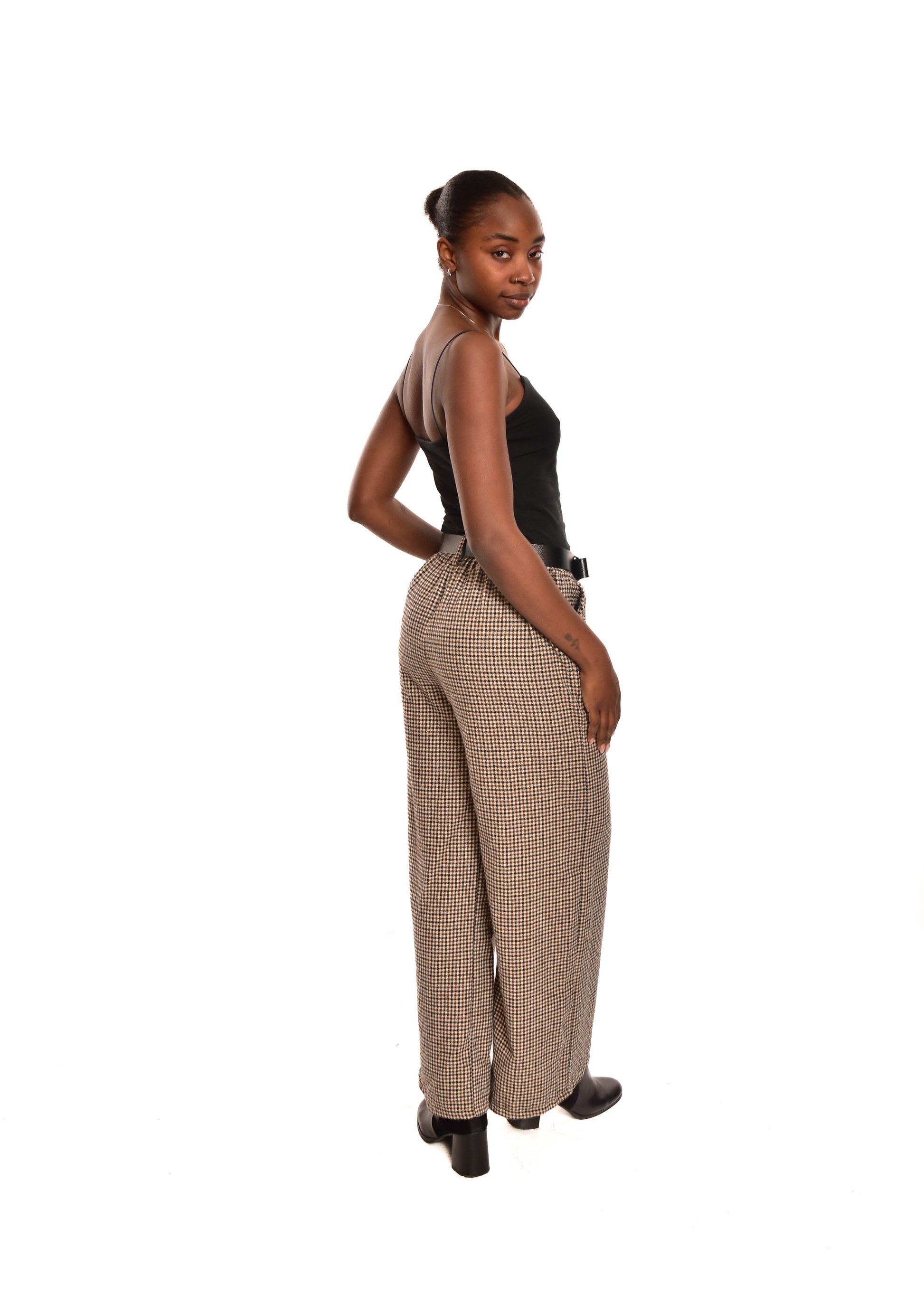 Pantalón con estampado de cuadros.Lleva goma en la cintura. Este modelo está disponible en talla única, en este caso es apto de una 38 a una 42.