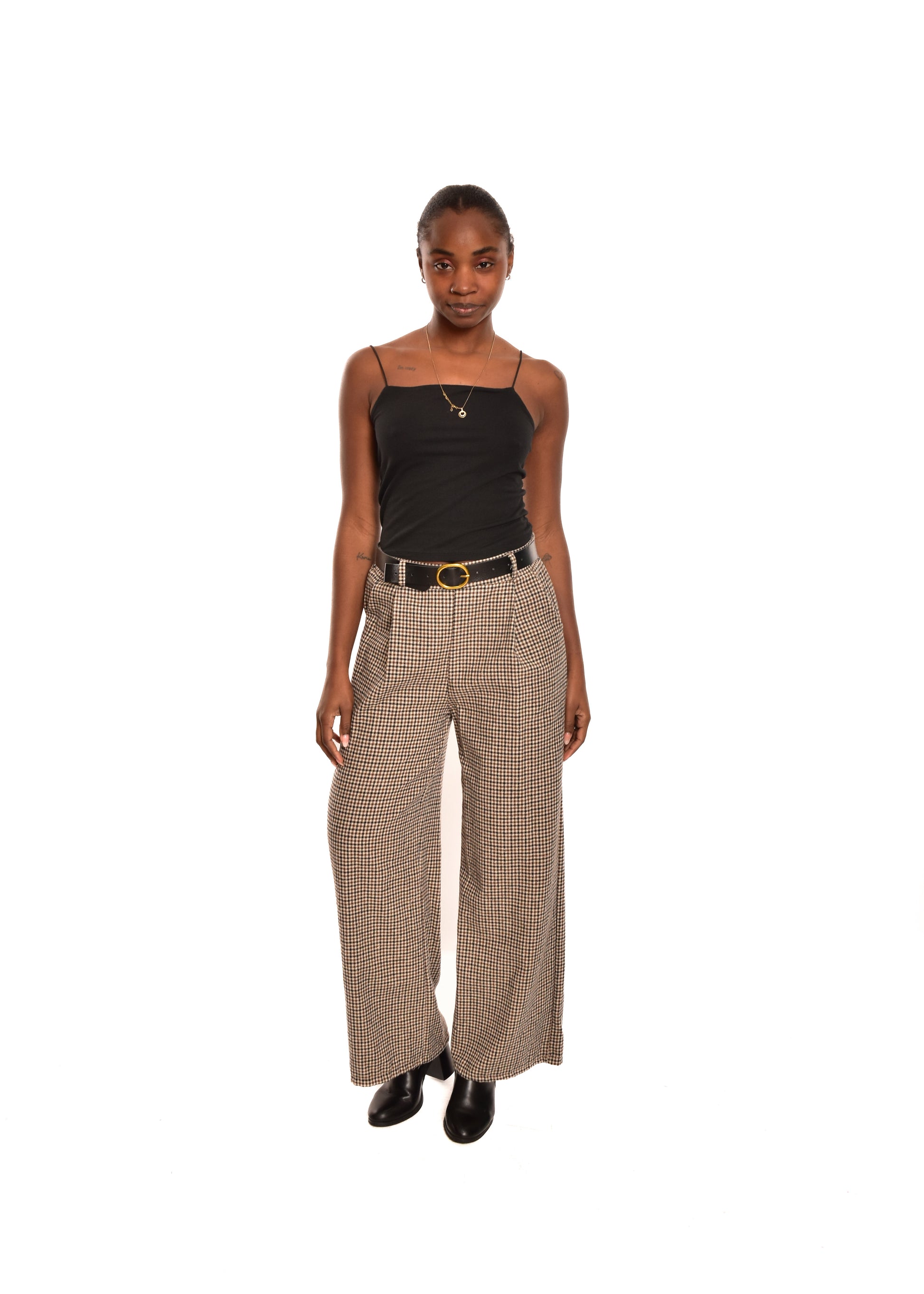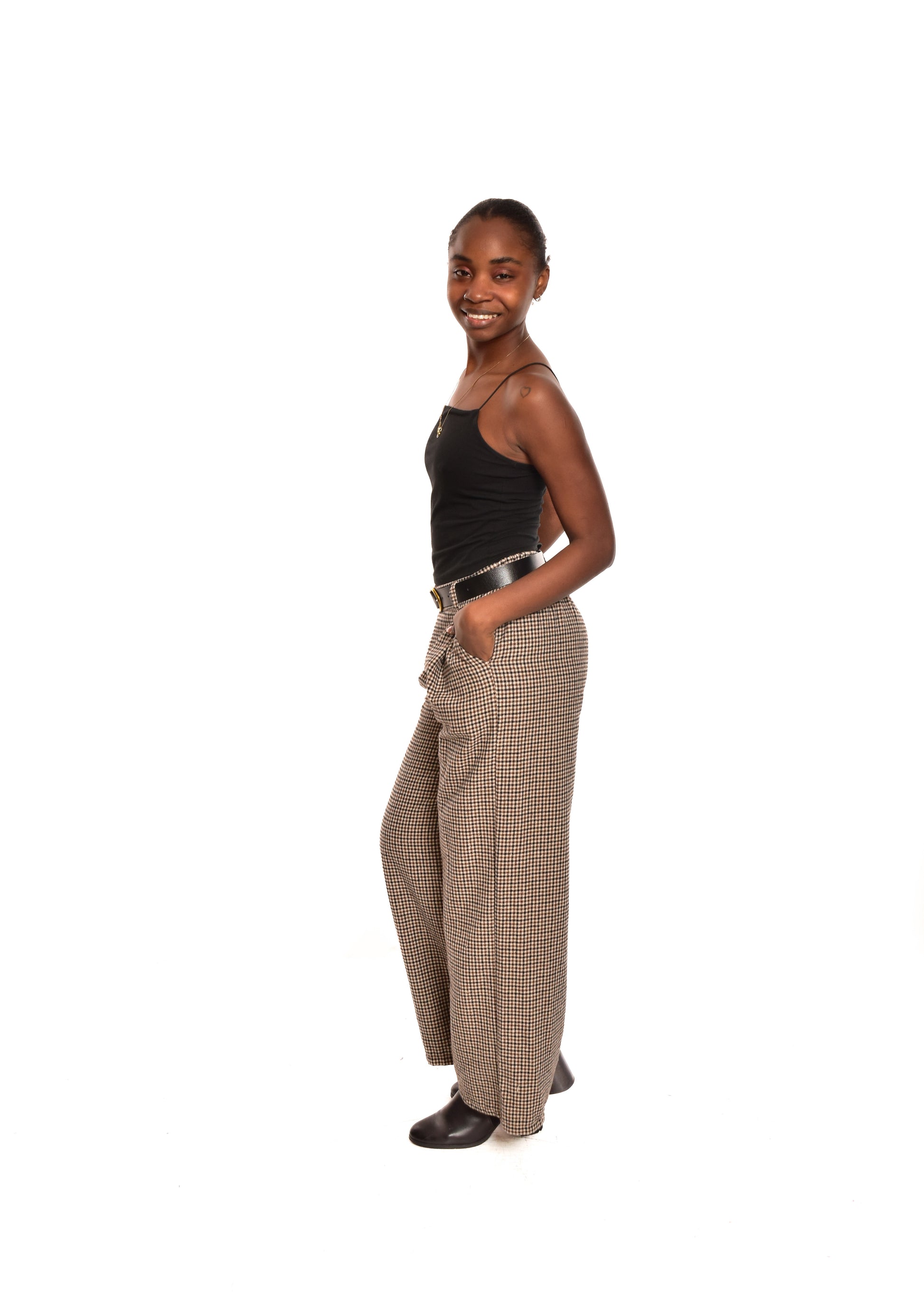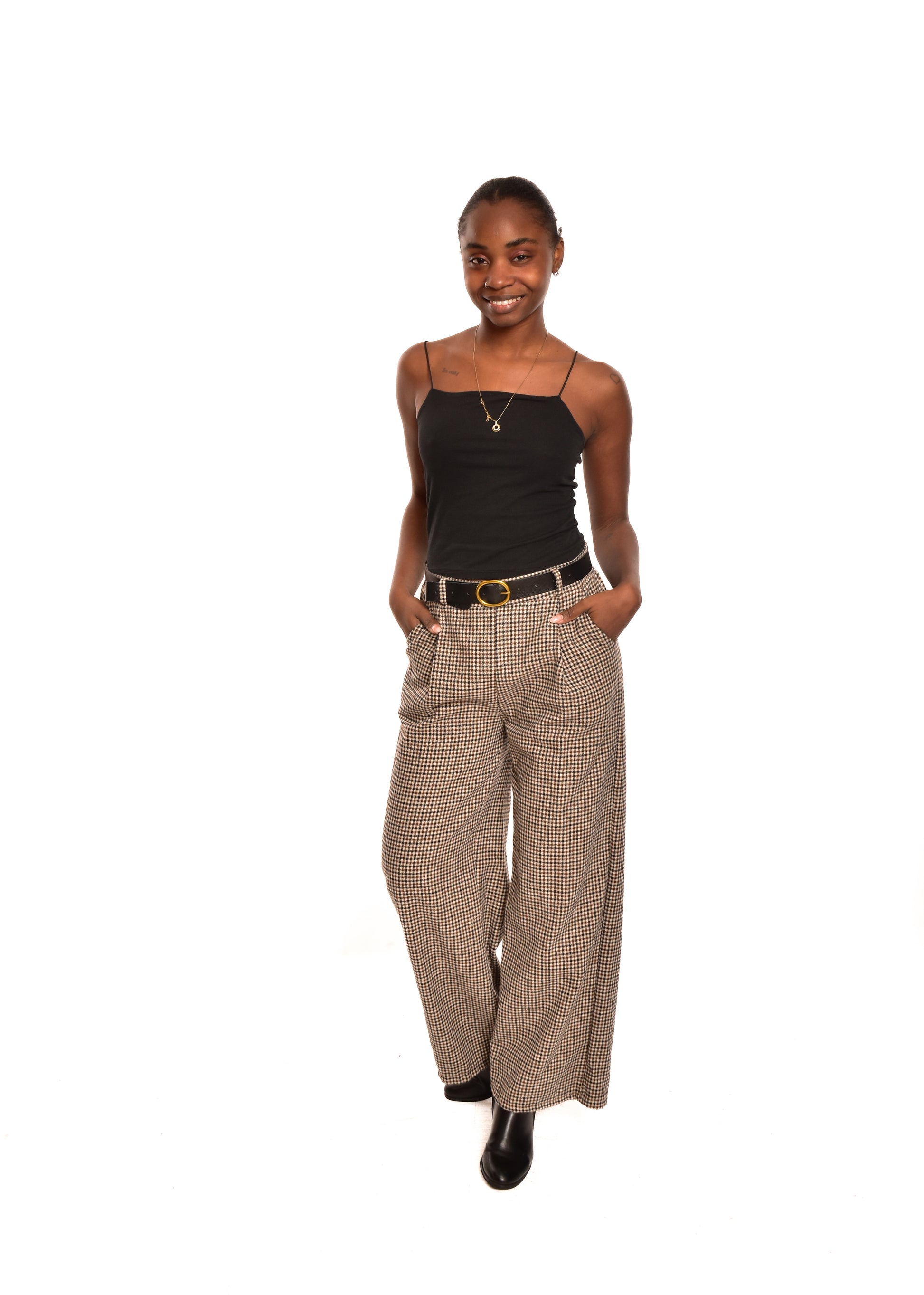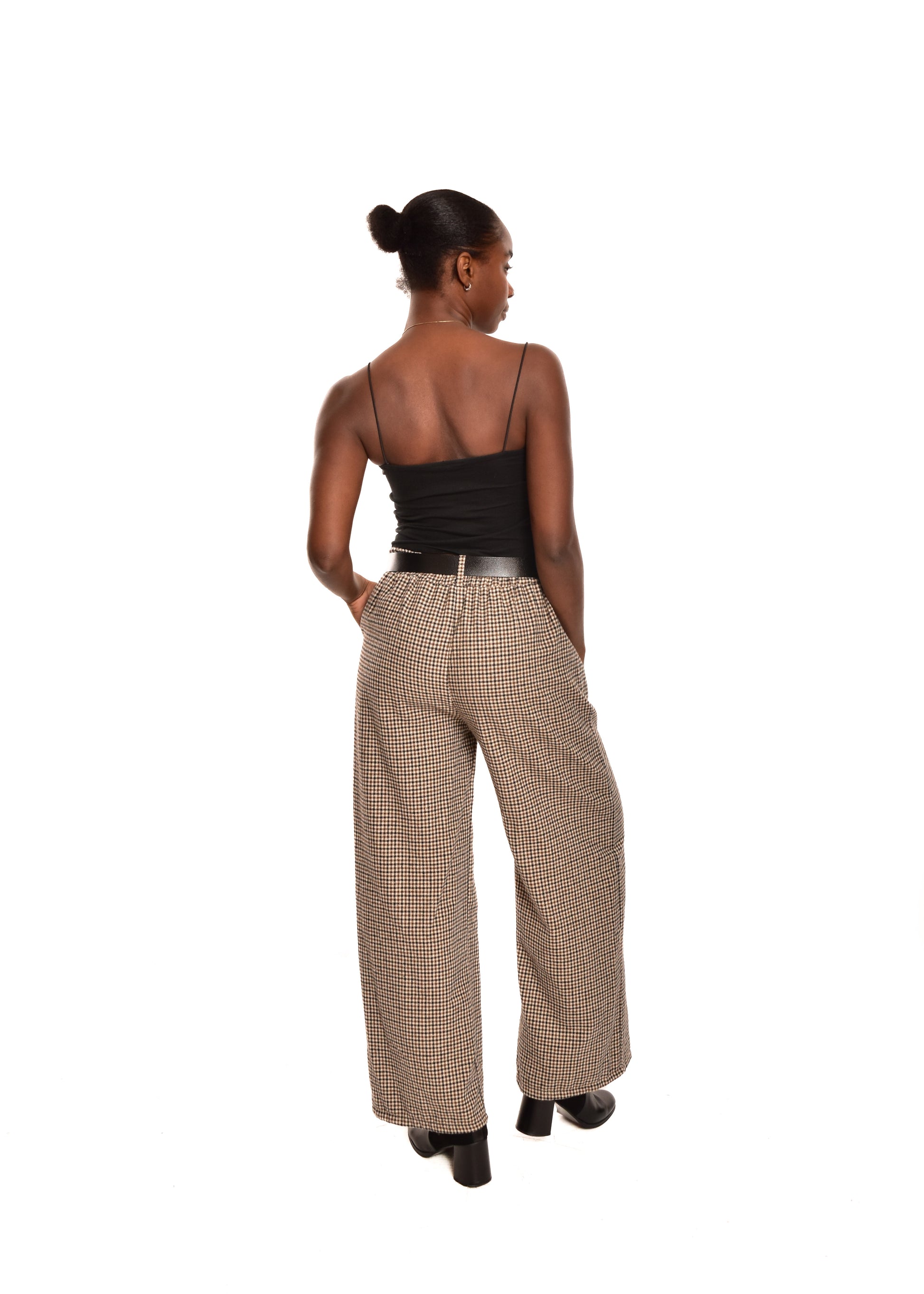 Pantalón con estampado de cuadros.Lleva goma en la cintura. Este modelo está disponible en talla única, en este caso es apto de una 38 a una 42.