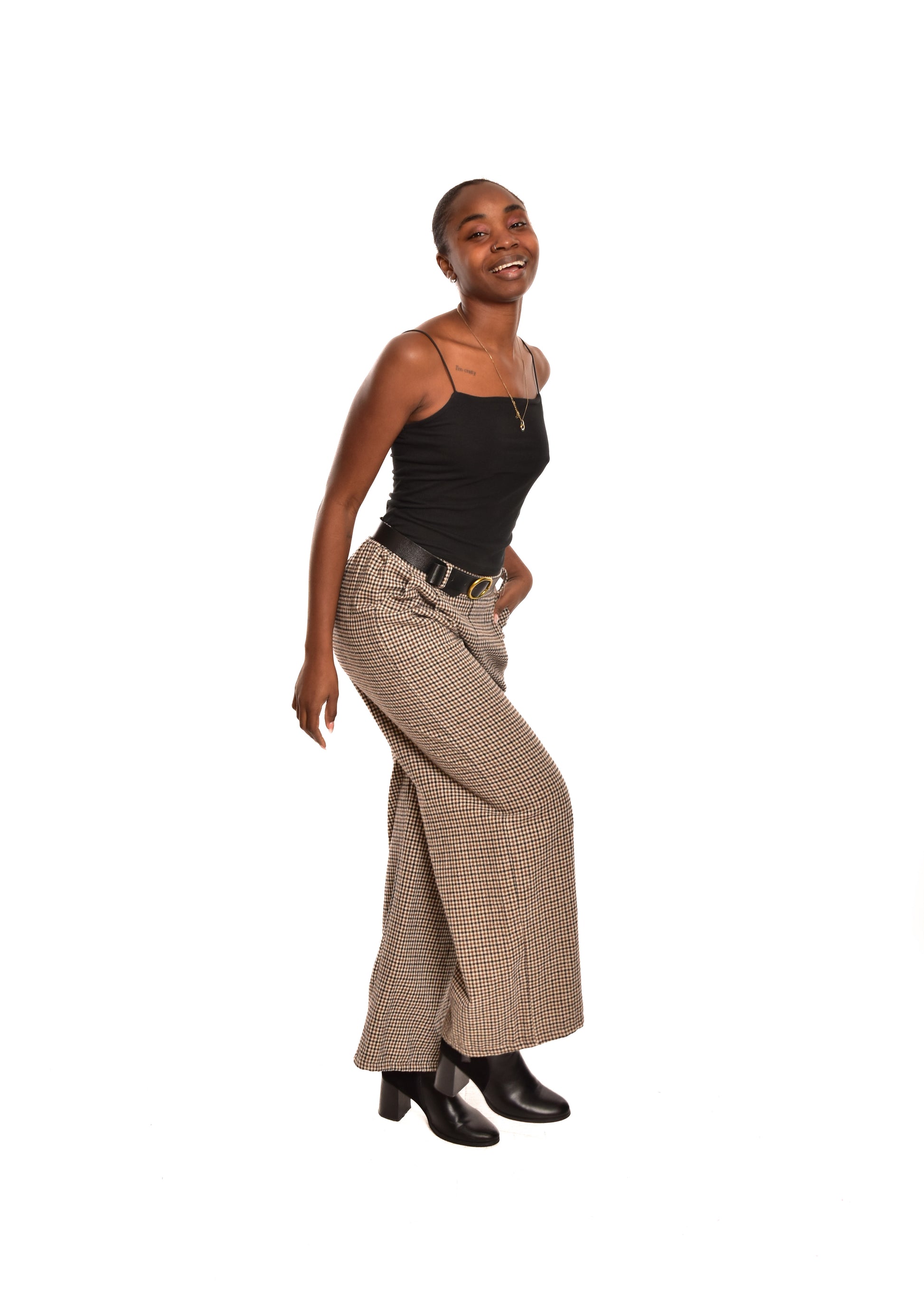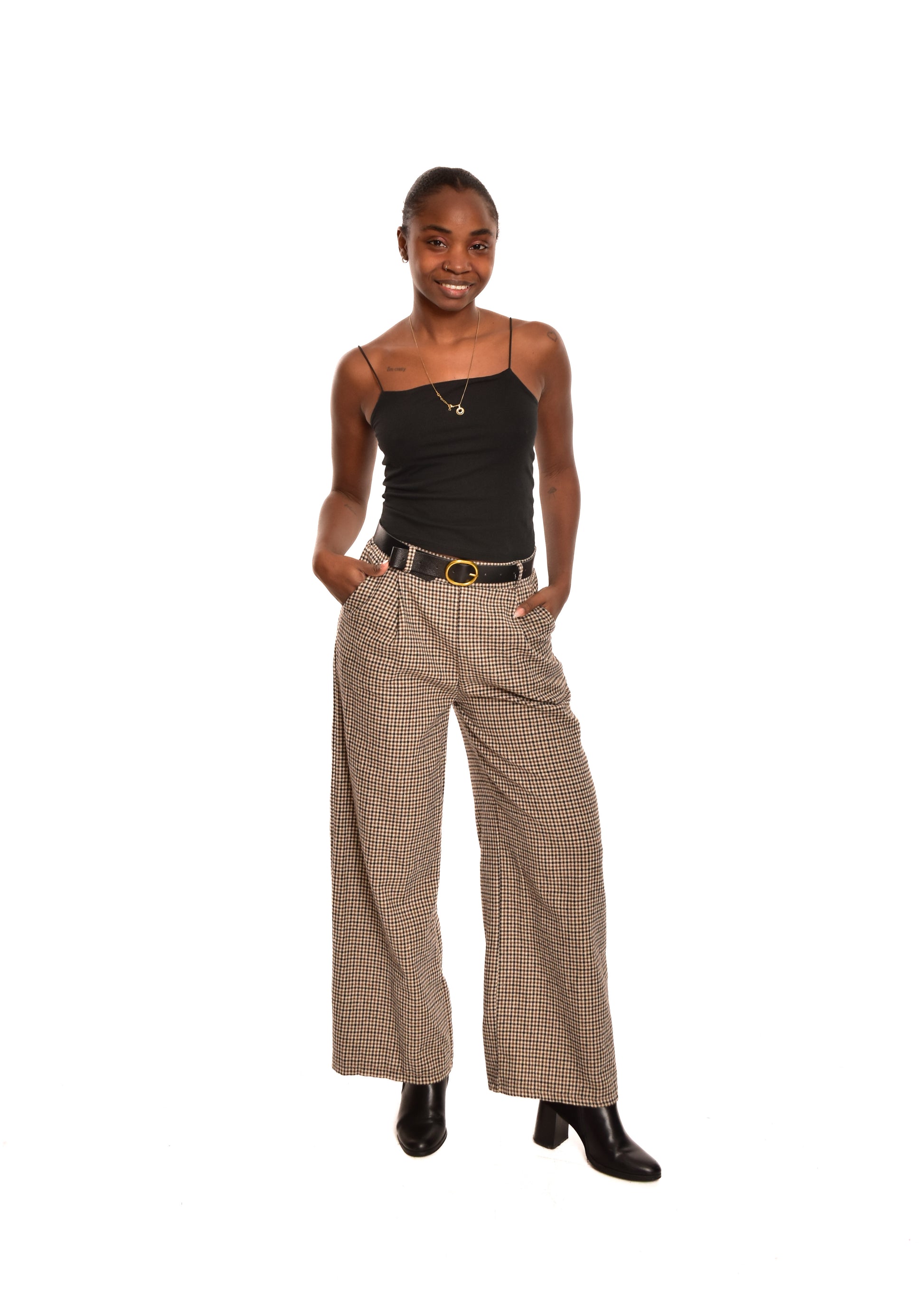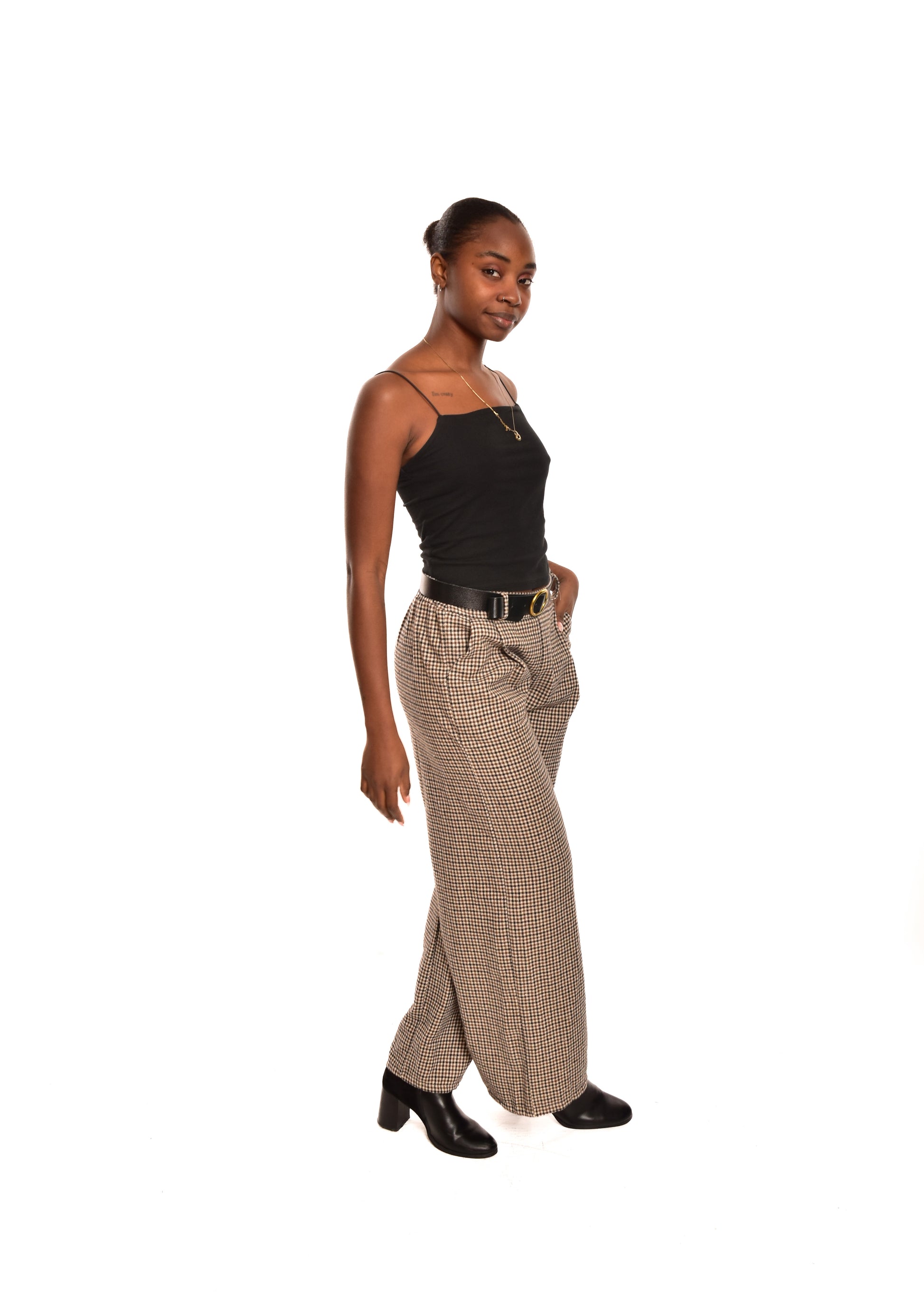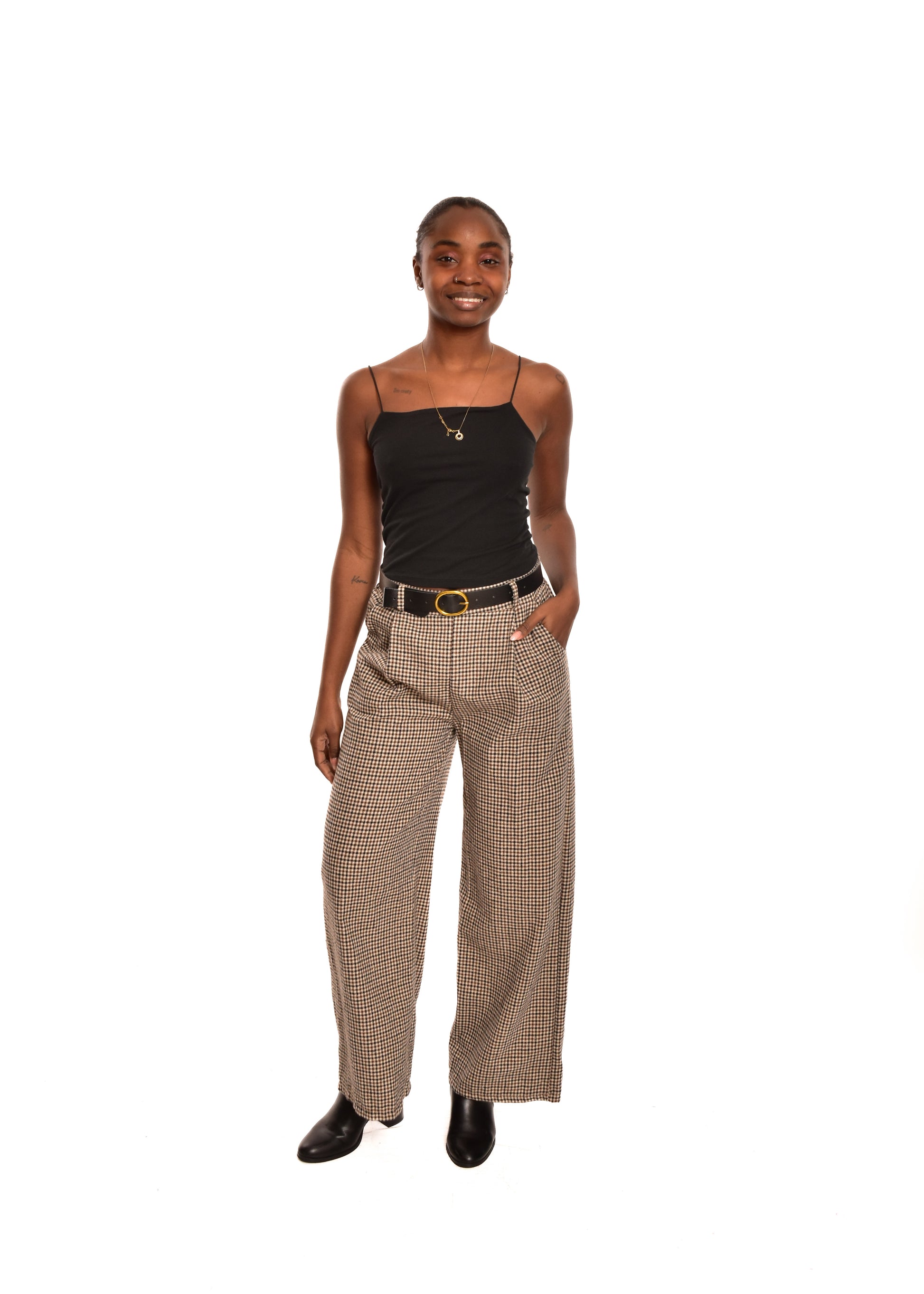 Pantalón con estampado de cuadros.Lleva goma en la cintura. Este modelo está disponible en talla única, en este caso es apto de una 38 a una 42.