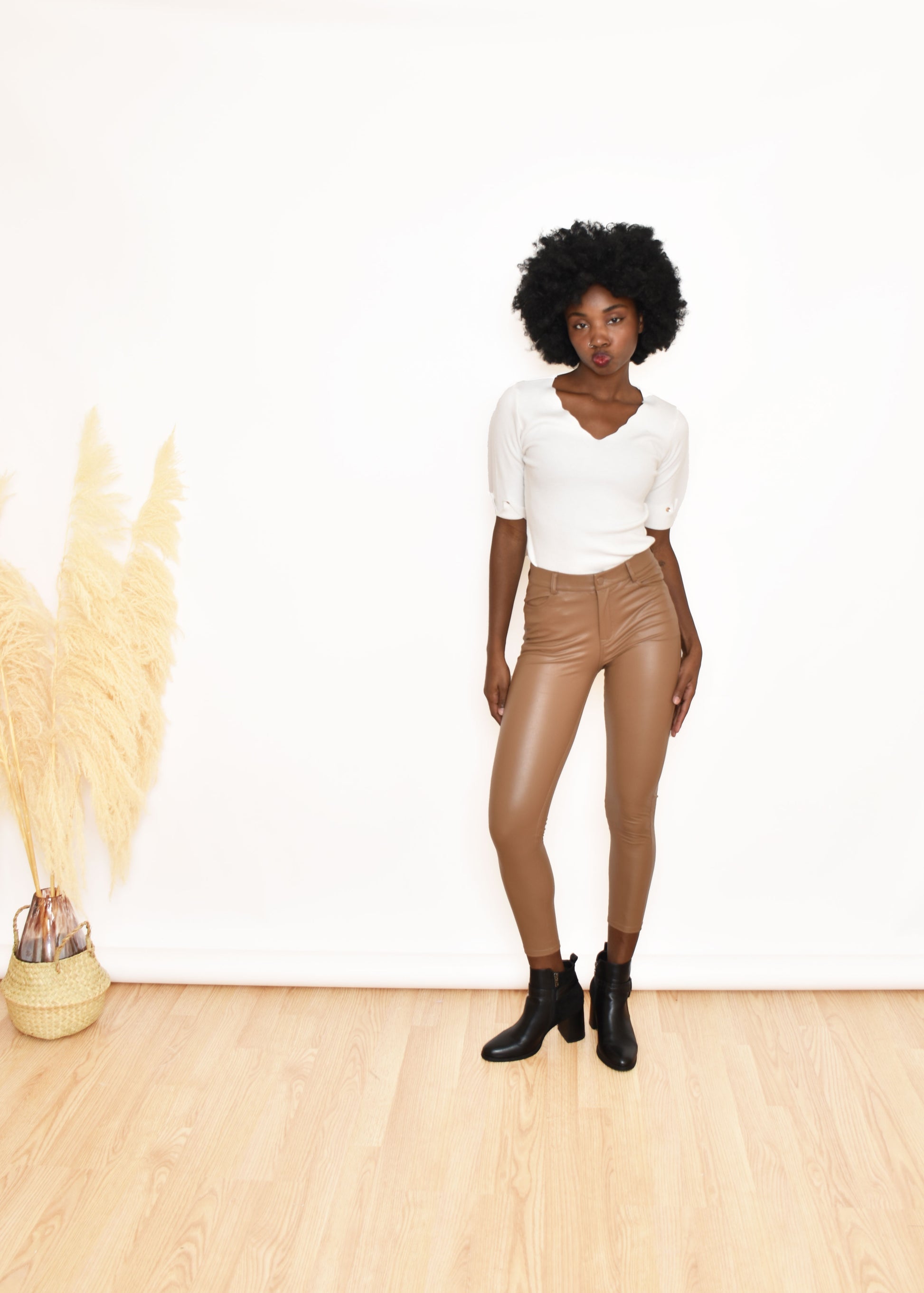 Pantalón encerado Tostado. Esta prenda está disponible de la talla S a la XL , en este caso es apta hasta una talla 44. Si lo deseas puedes comprobar las medidas exactas de la prenda en el apartado " Talla y Medidas"