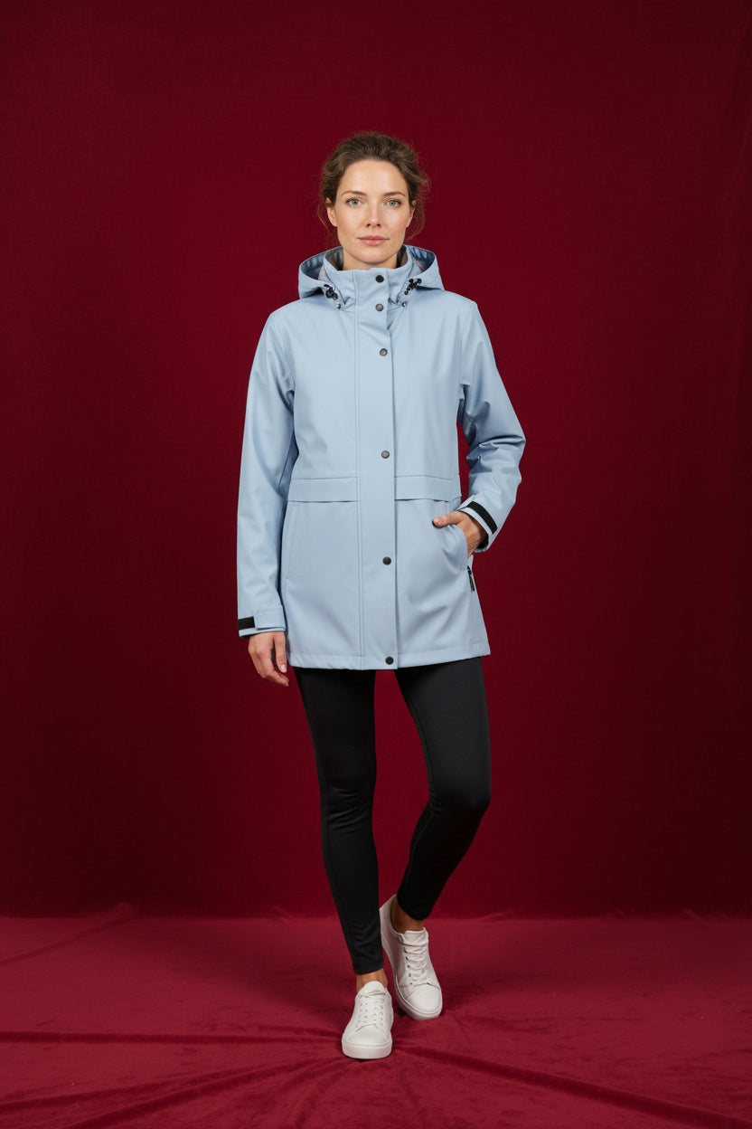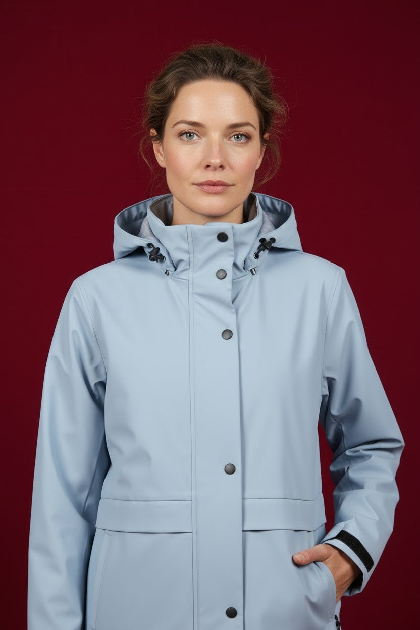 Parka de entretiempo. Corte en A. Repelente al agua. Este modelo está disponible de la talla S a la XL , en este caso es apta hasta una talla 44.