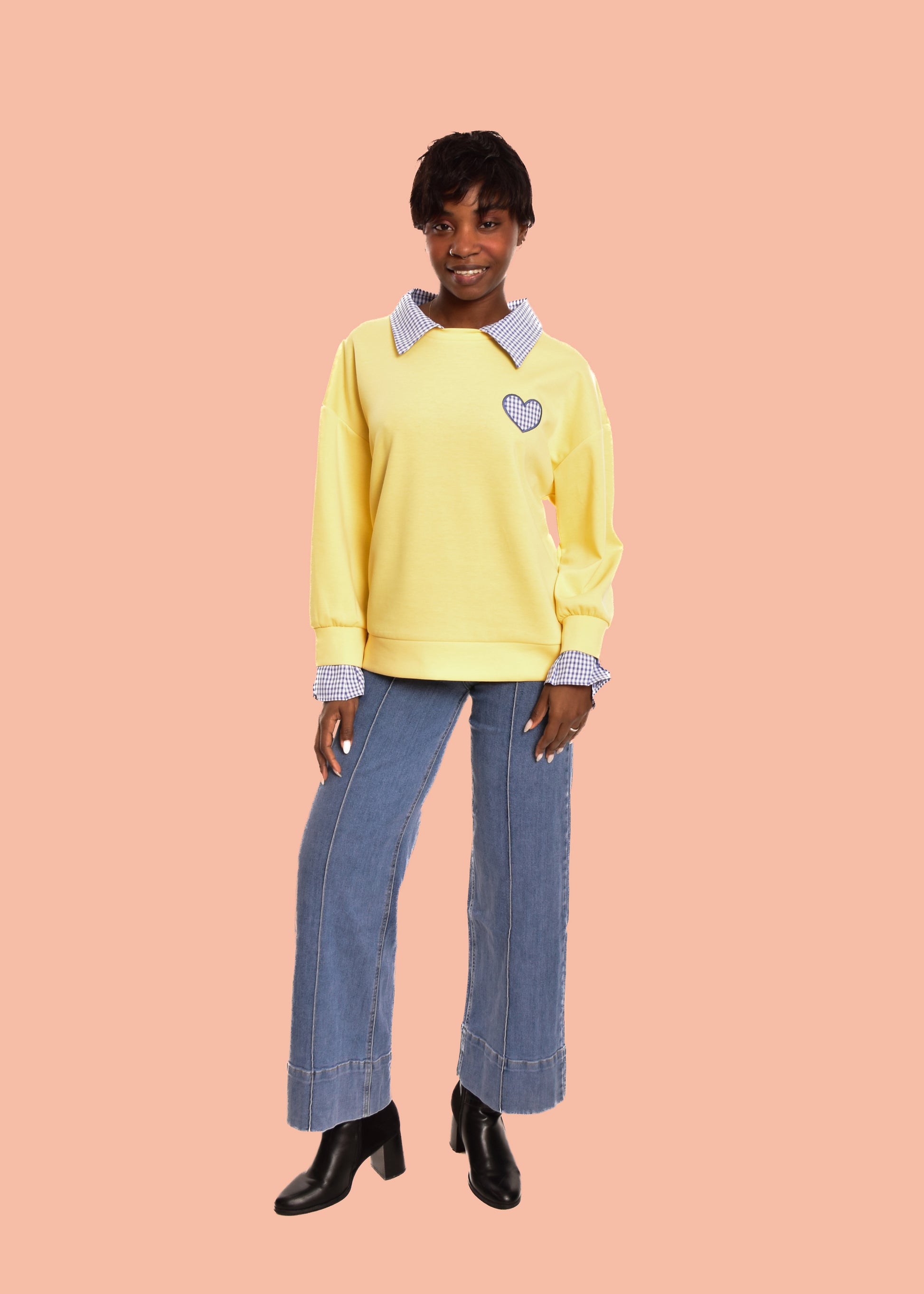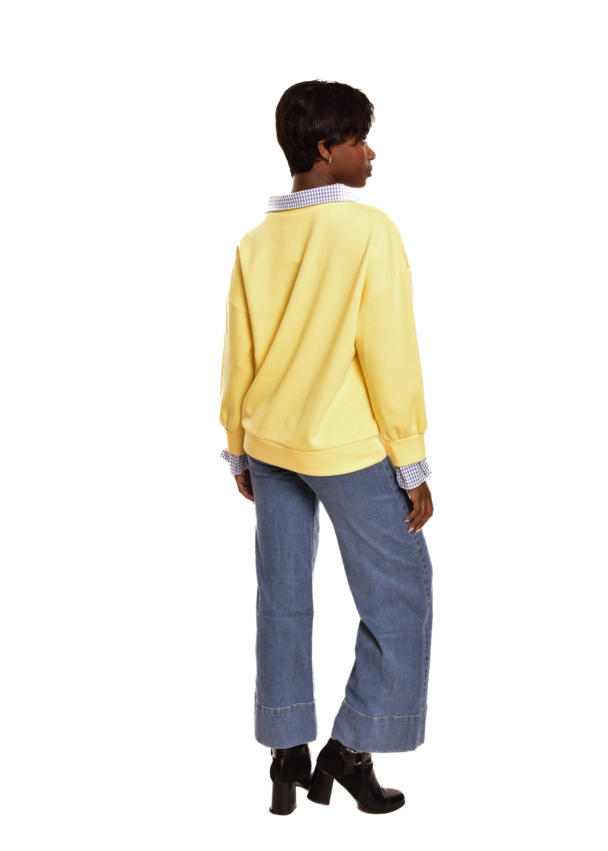 Sudadera en tejido de algodón combinada con partes en cuadro vichy. Esta prenda está disponible en talla única, en este caso es apto hasta una talla 42 amplia.