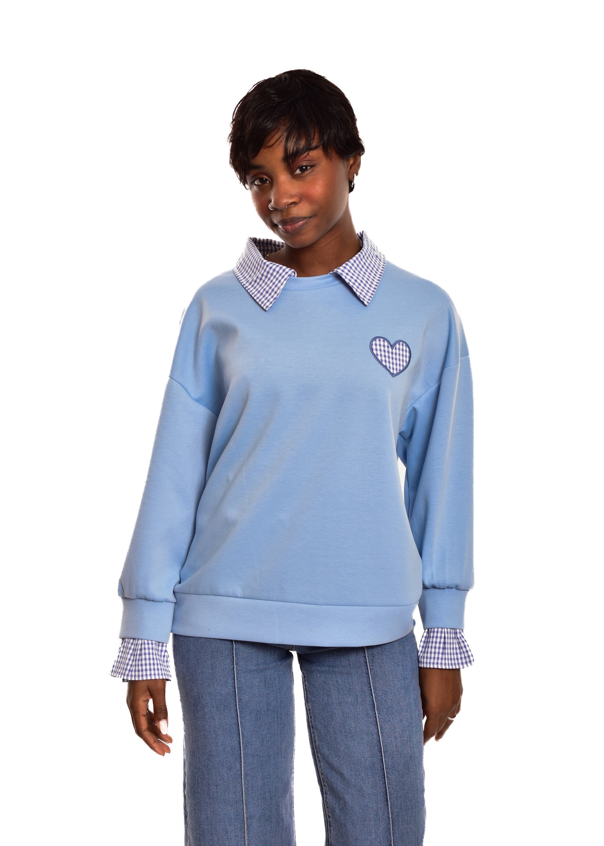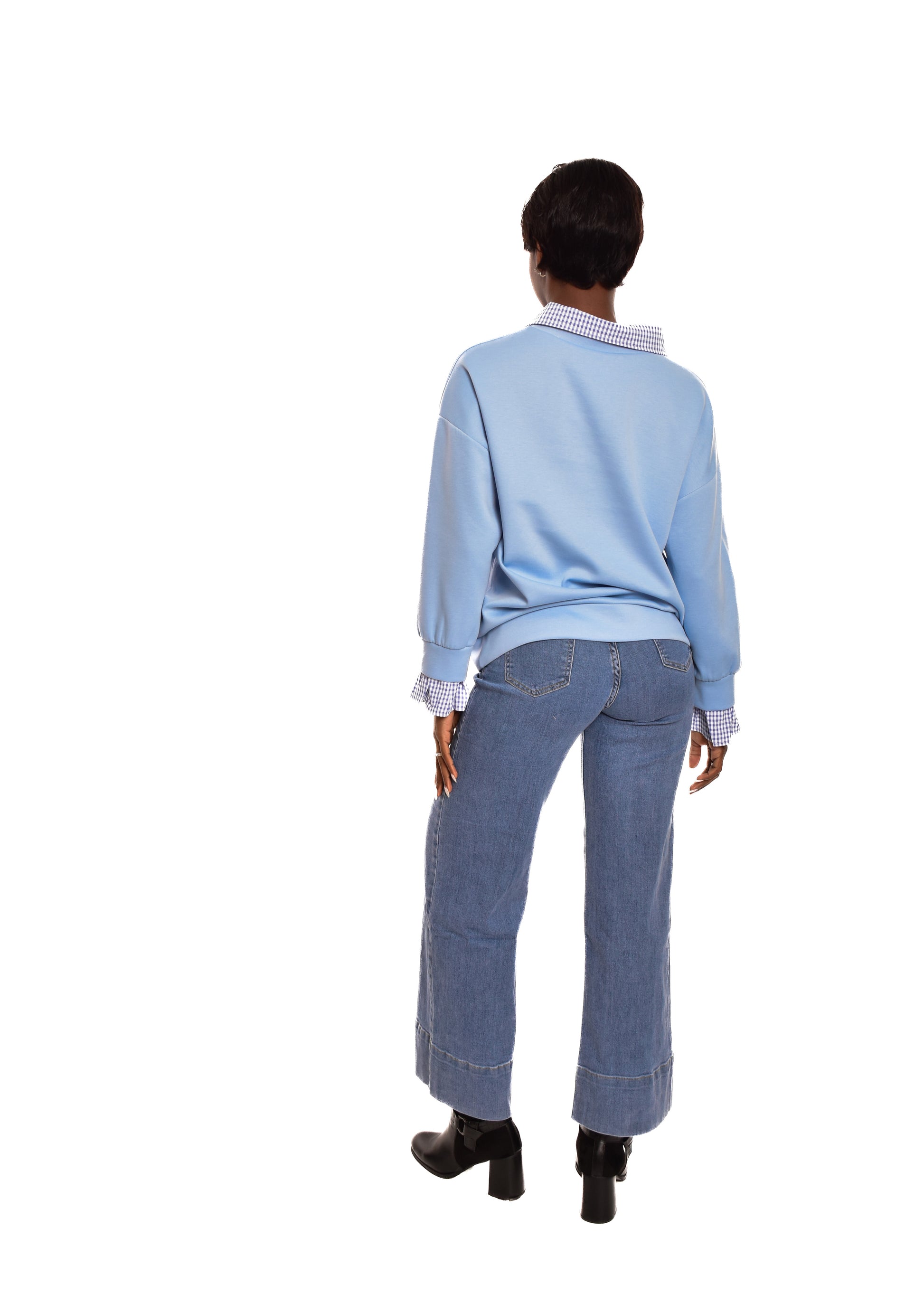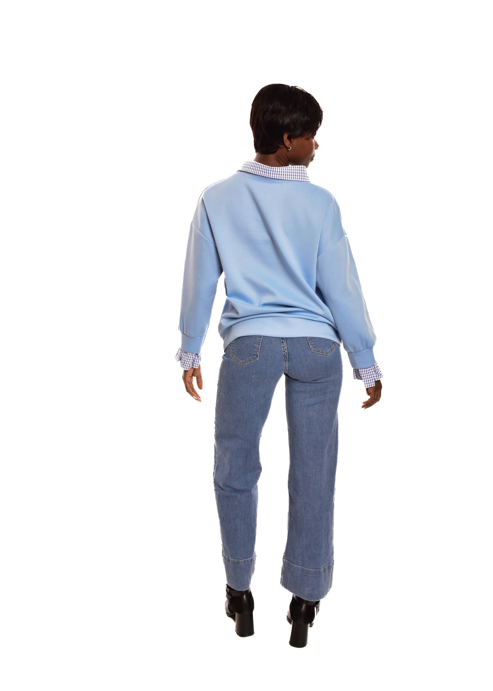 Sudadera en tejido de algodón combinada con partes en cuadro vichy. Esta prenda está disponible en talla única, en este caso es apto hasta una talla 42 amplia.