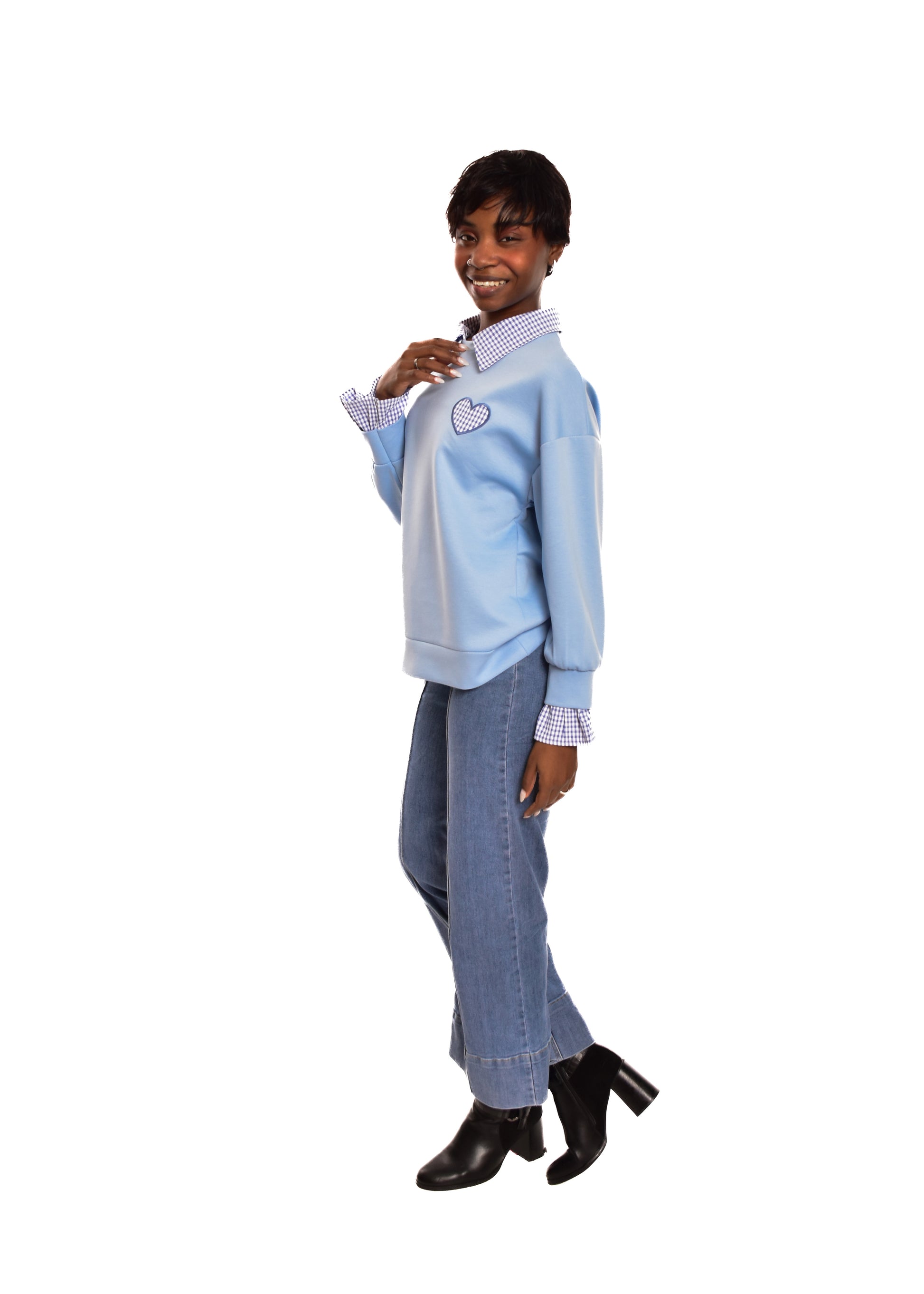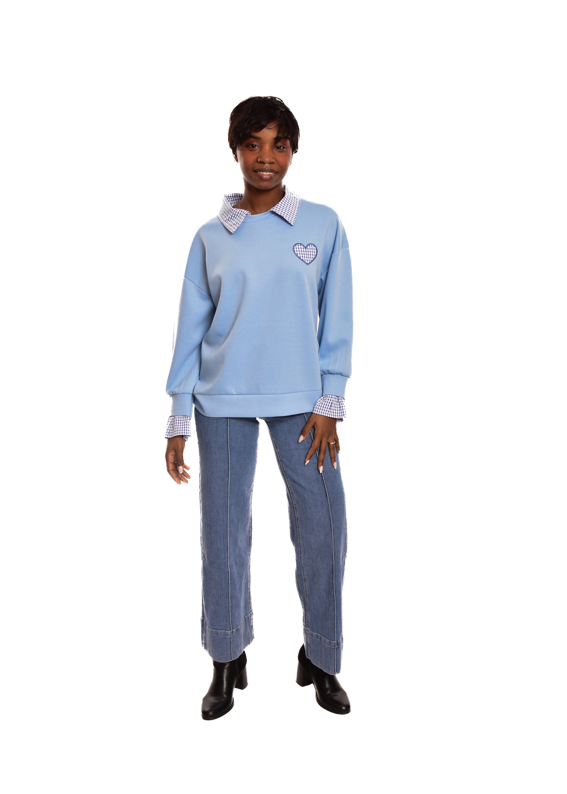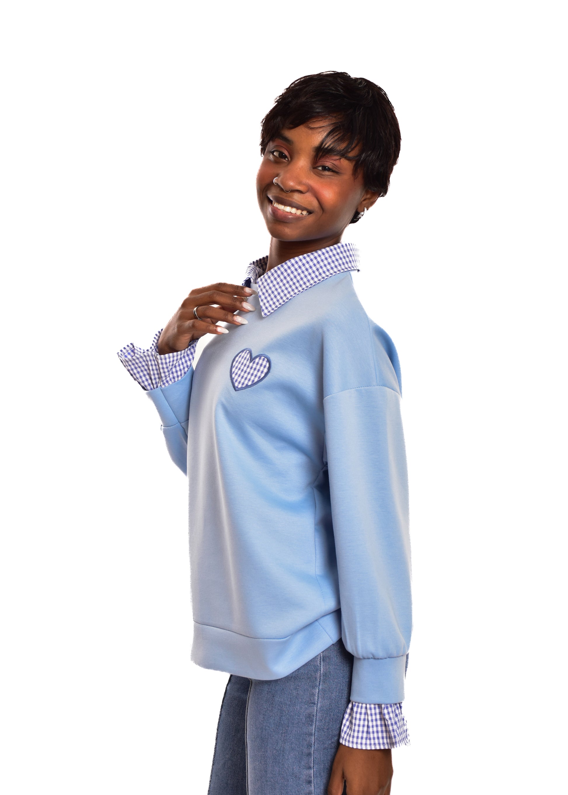 Sudadera en tejido de algodón combinada con partes en cuadro vichy. Esta prenda está disponible en talla única, en este caso es apto hasta una talla 42 amplia.