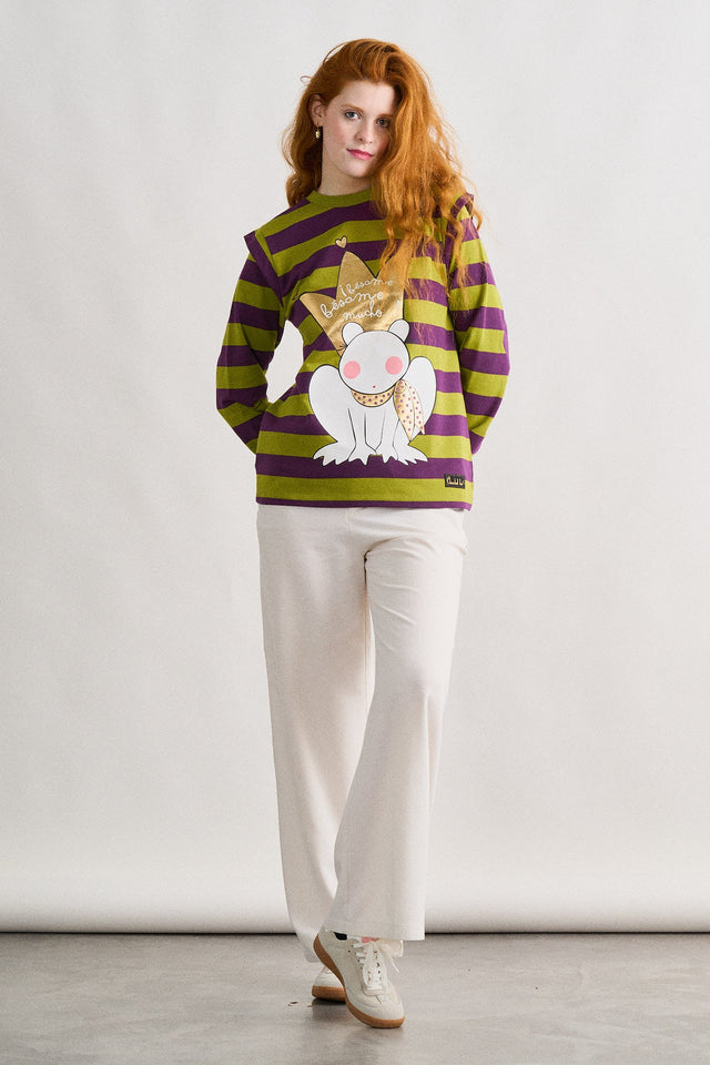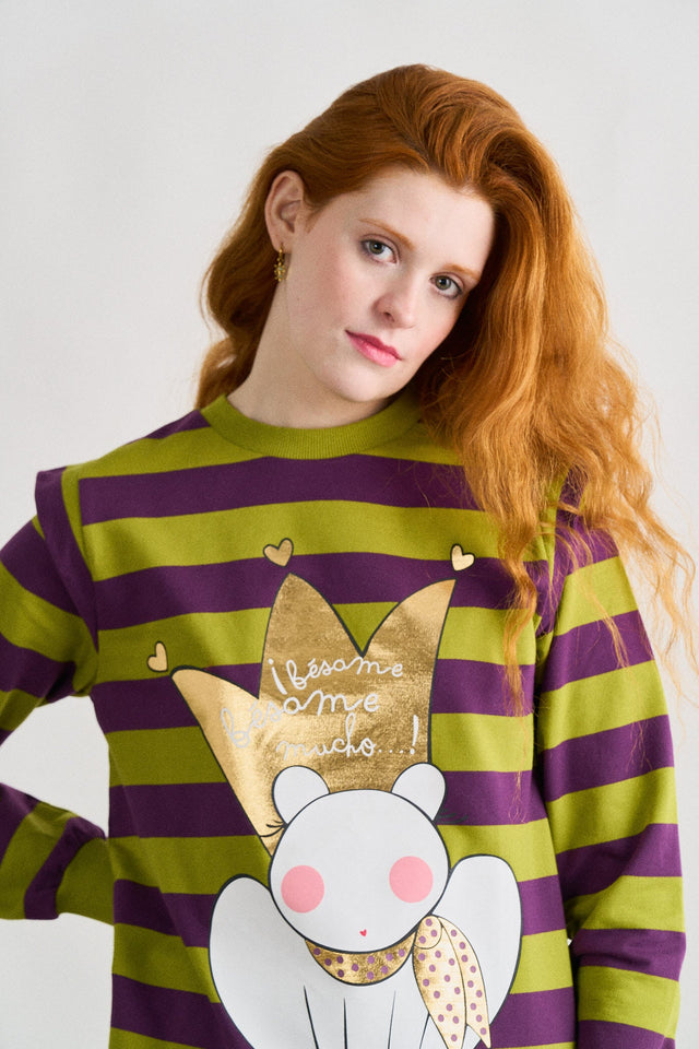 -Sudadera de rayas, manga larga y cuello redondo.