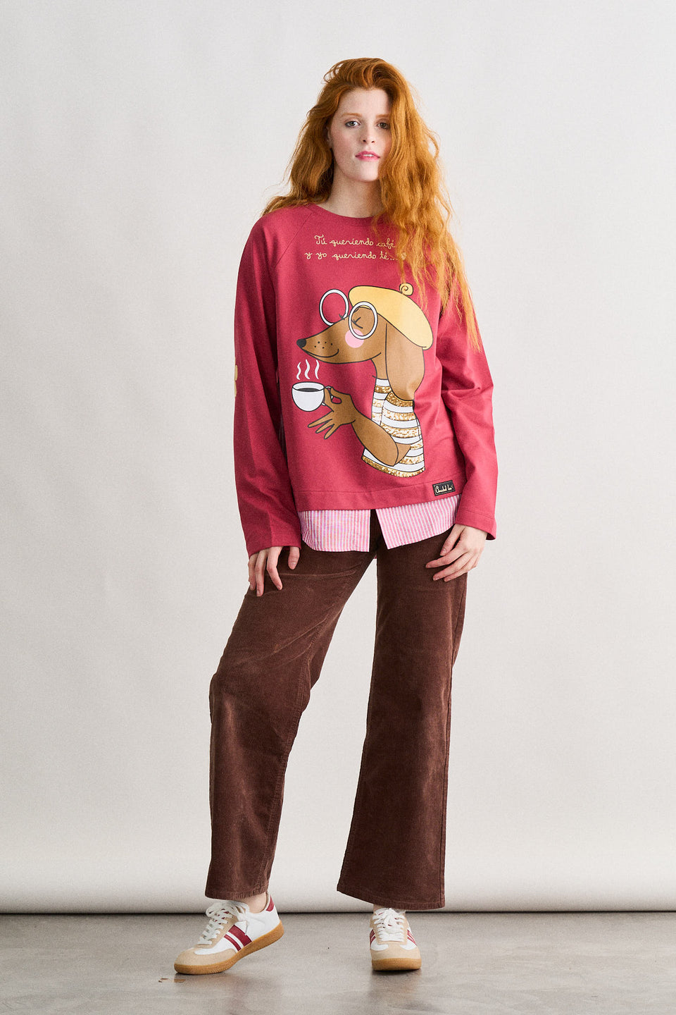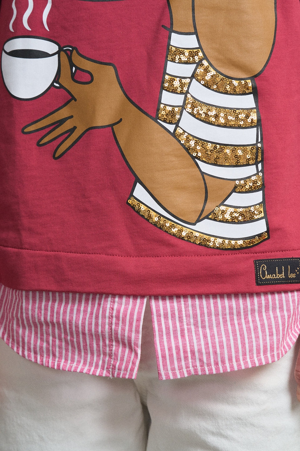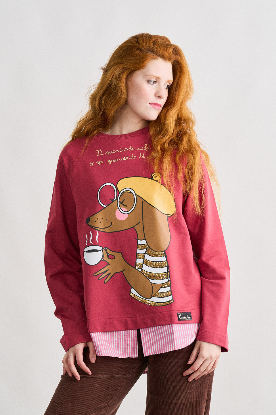 -Maxi print delantero con aplique de lentejuelas y frase bordad.