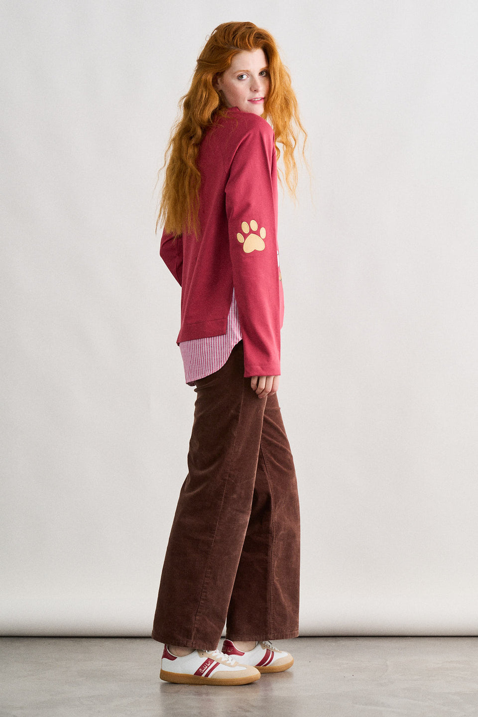 -Bajo de camisa popelín interior adherida en el cuerpo de la sudadera.