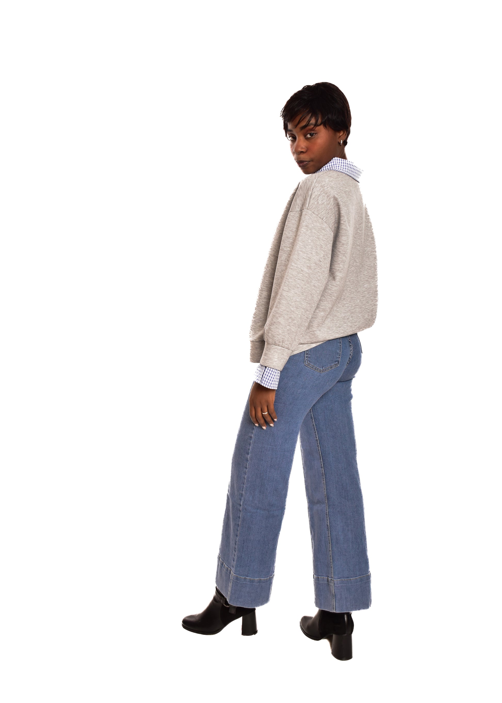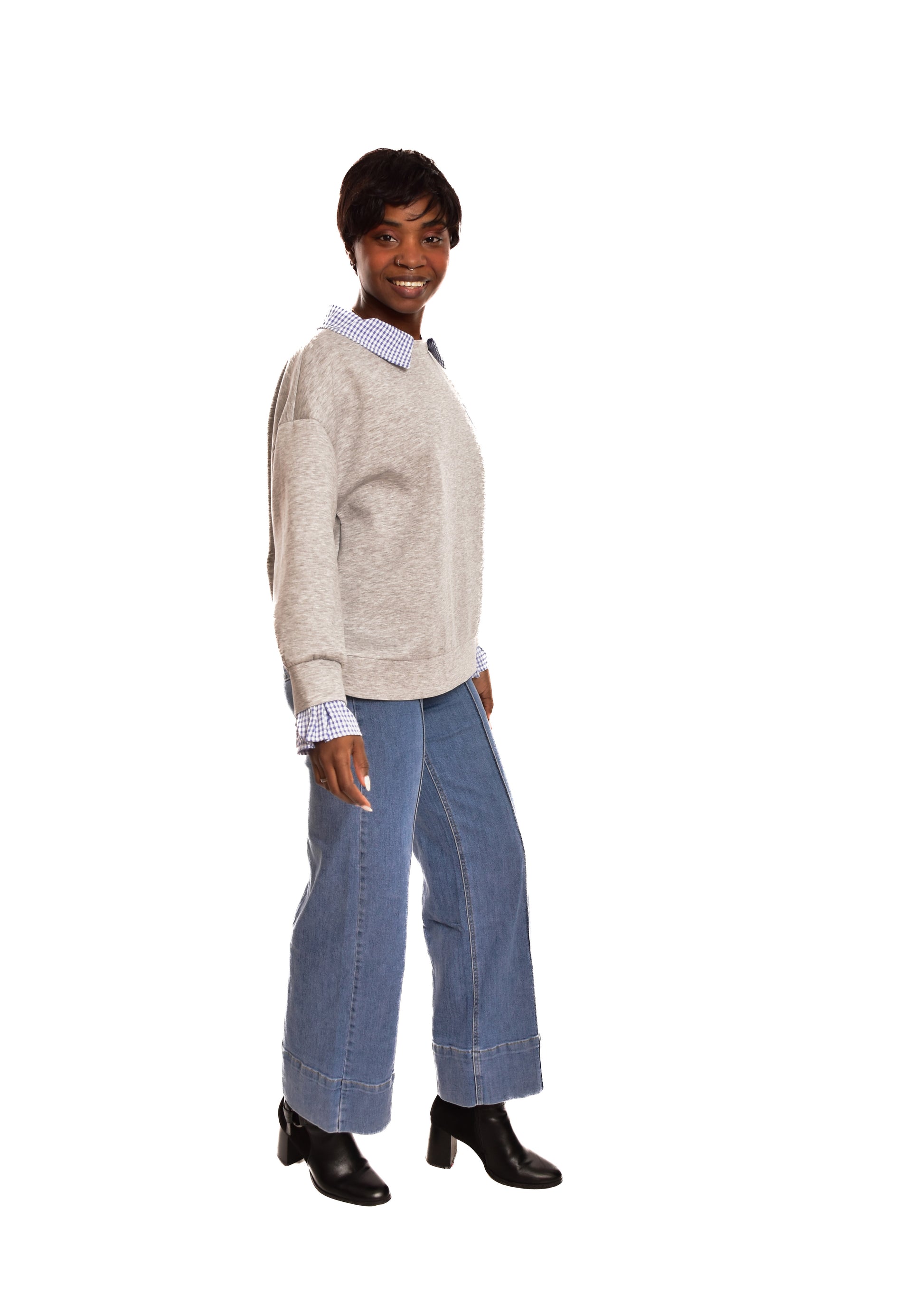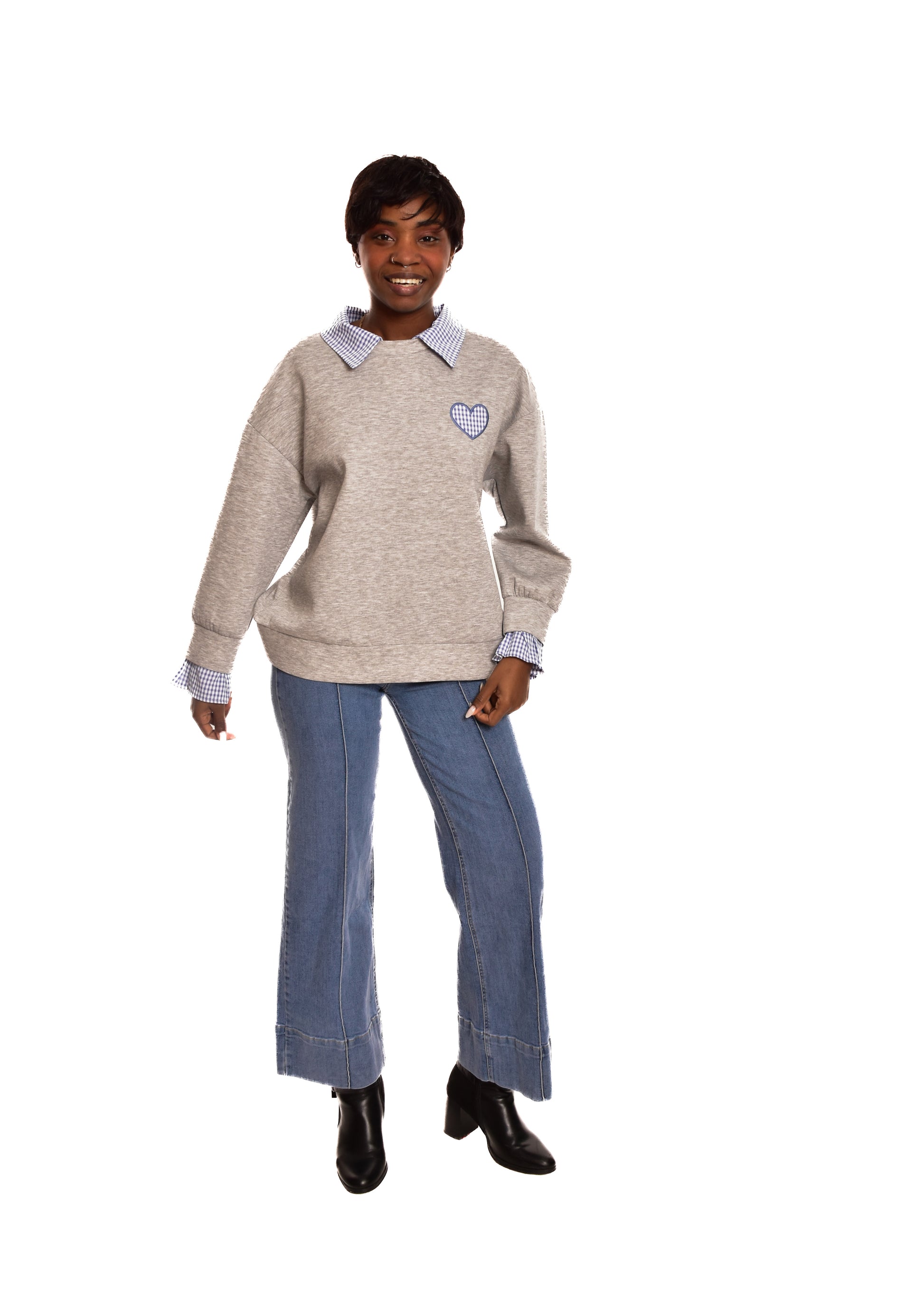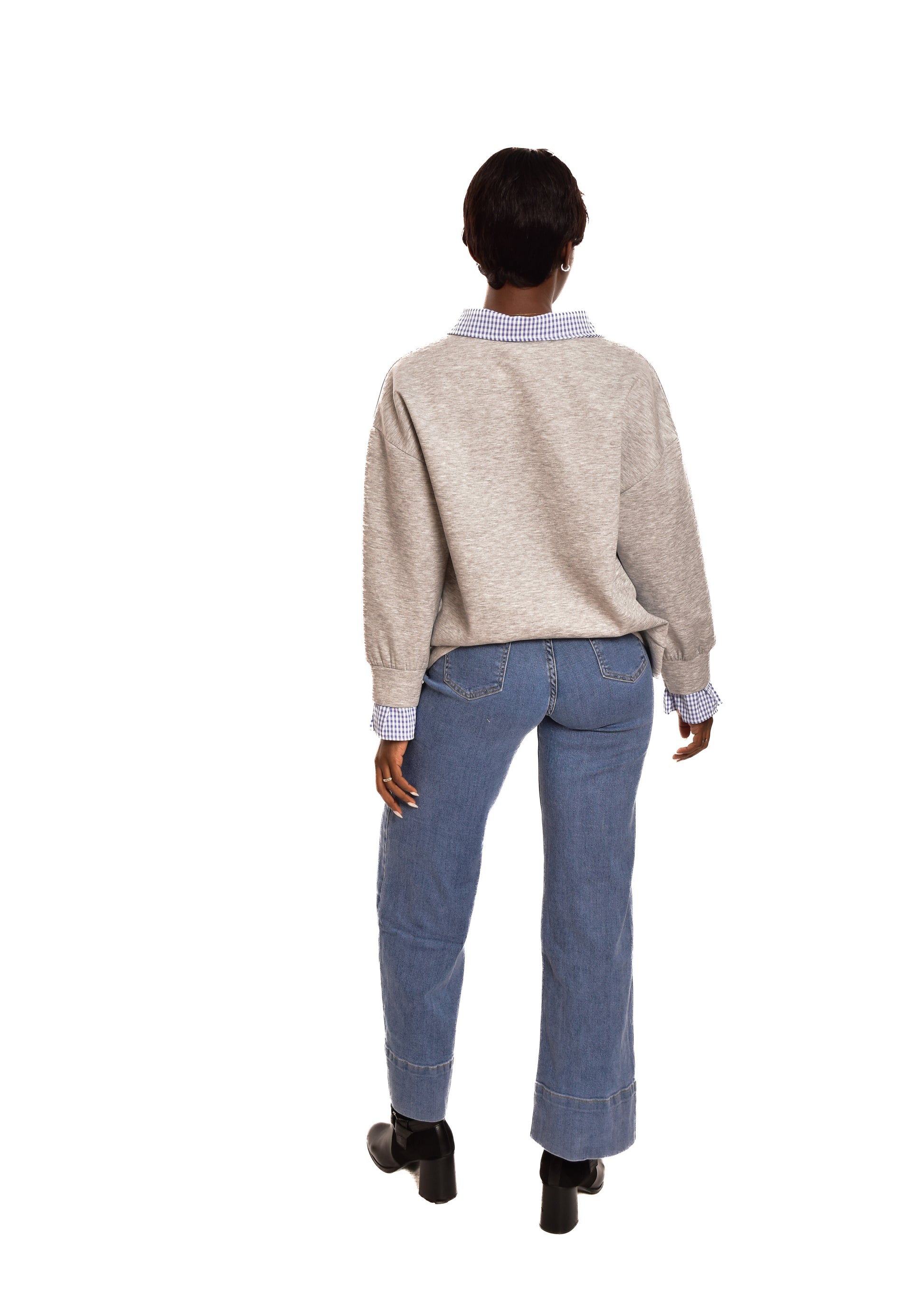 Sudadera en tejido de algodón combinada con partes en cuadro vichy. Esta prenda está disponible en talla única, en este caso es apto hasta una talla 42 amplia.