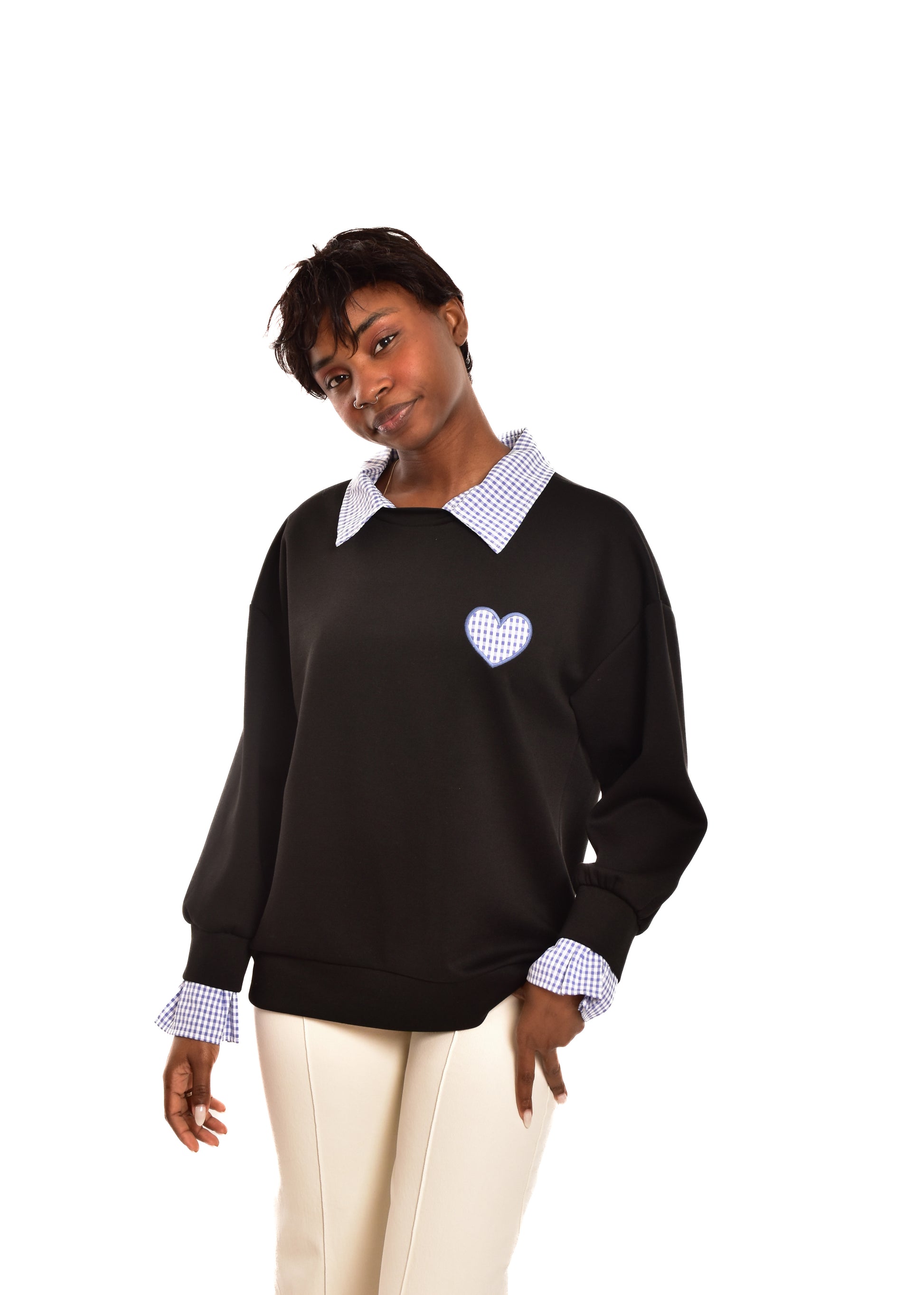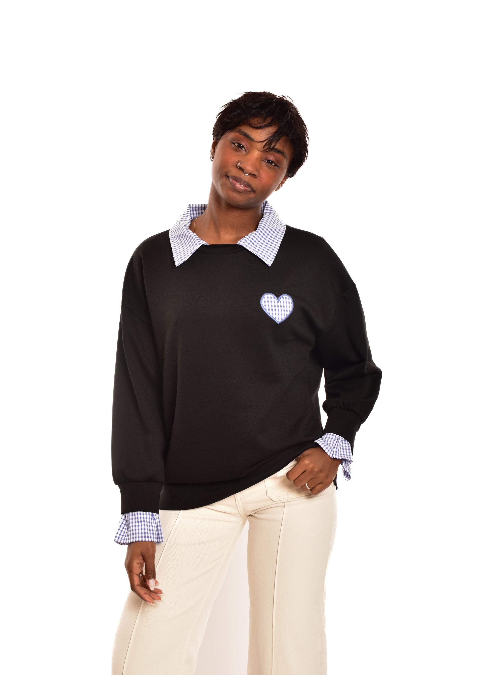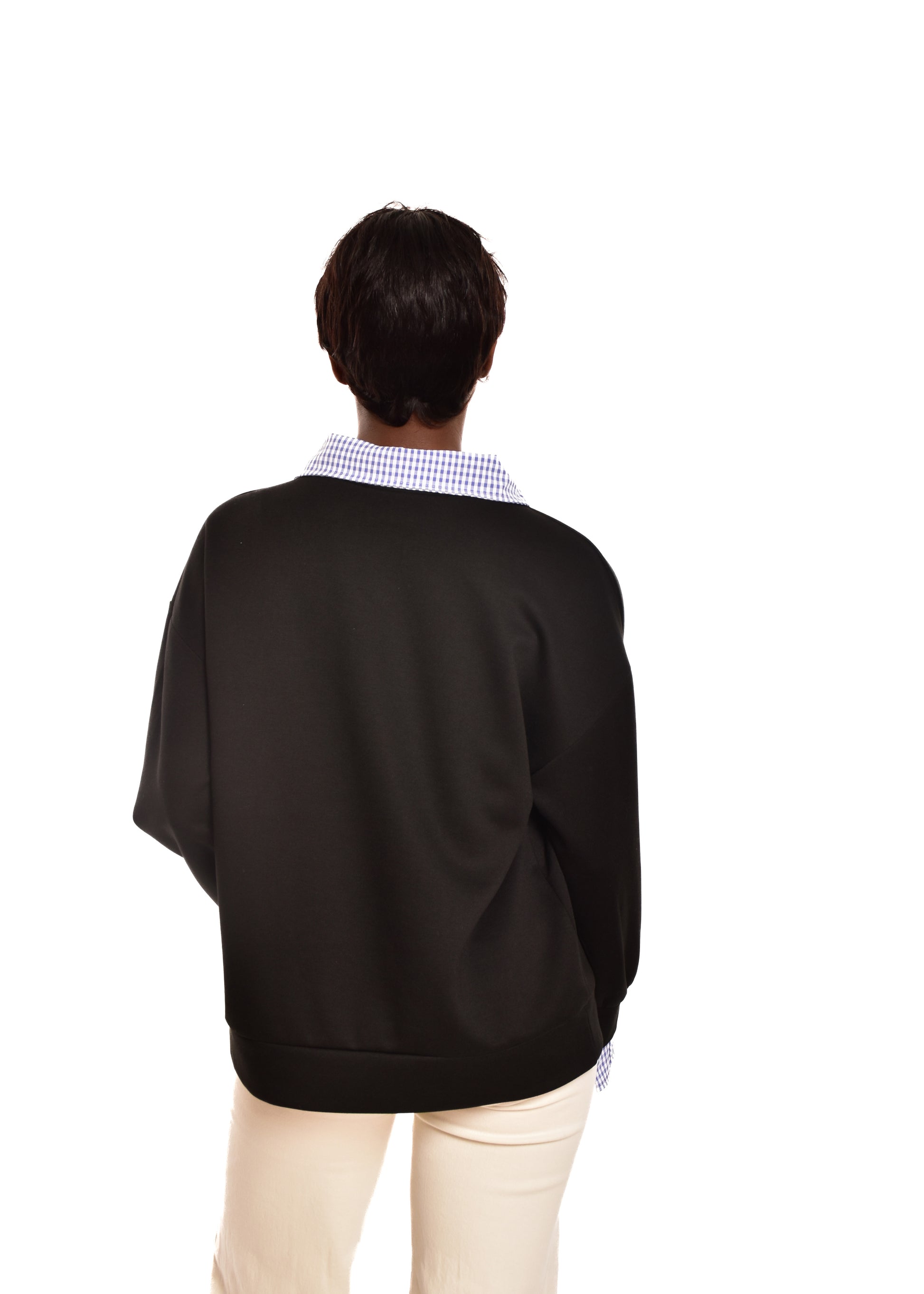 Sudadera en tejido de algodón combinada con partes en cuadro vichy. Esta prenda está disponible en talla única, en este caso es apto hasta una talla 42 amplia.