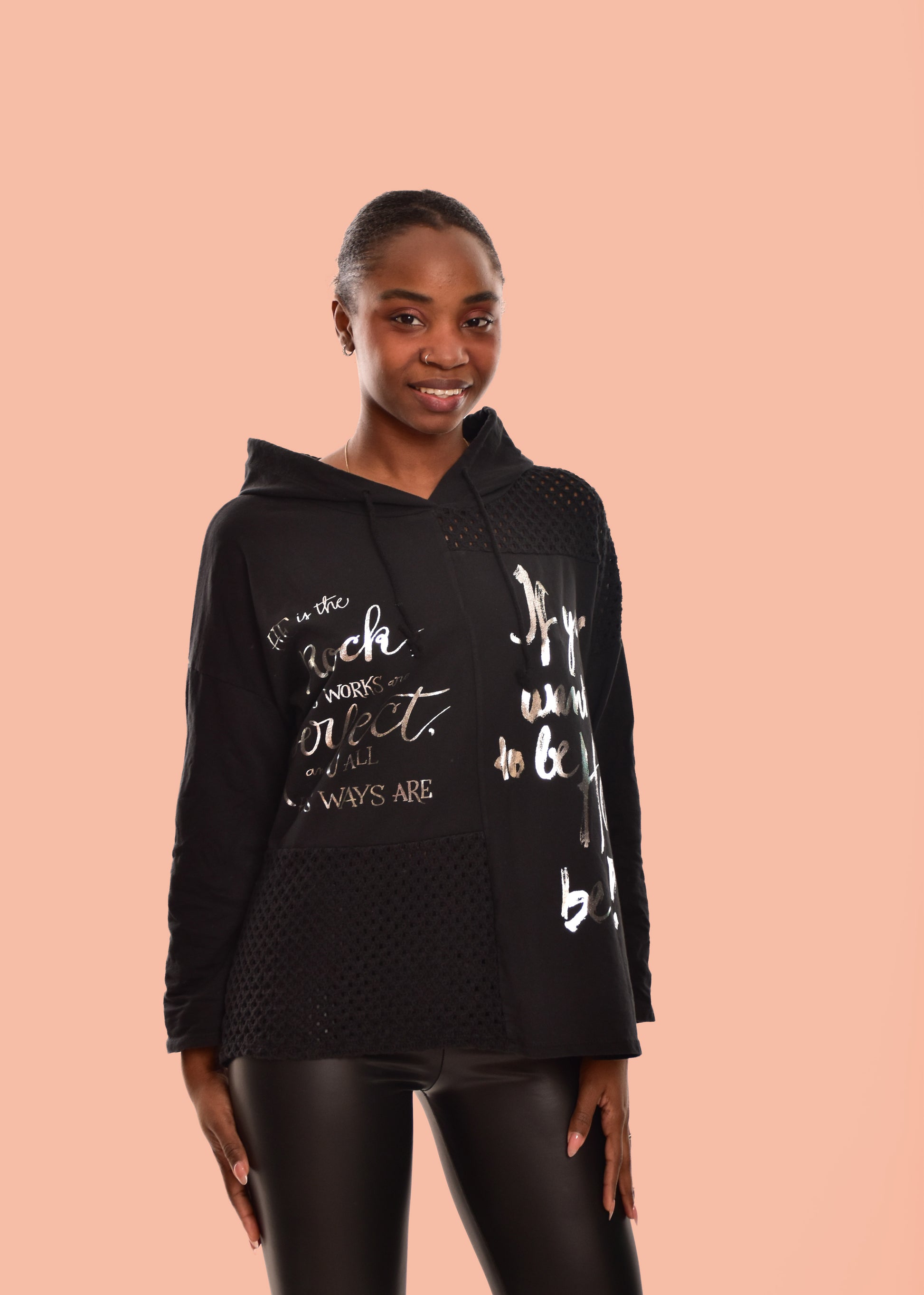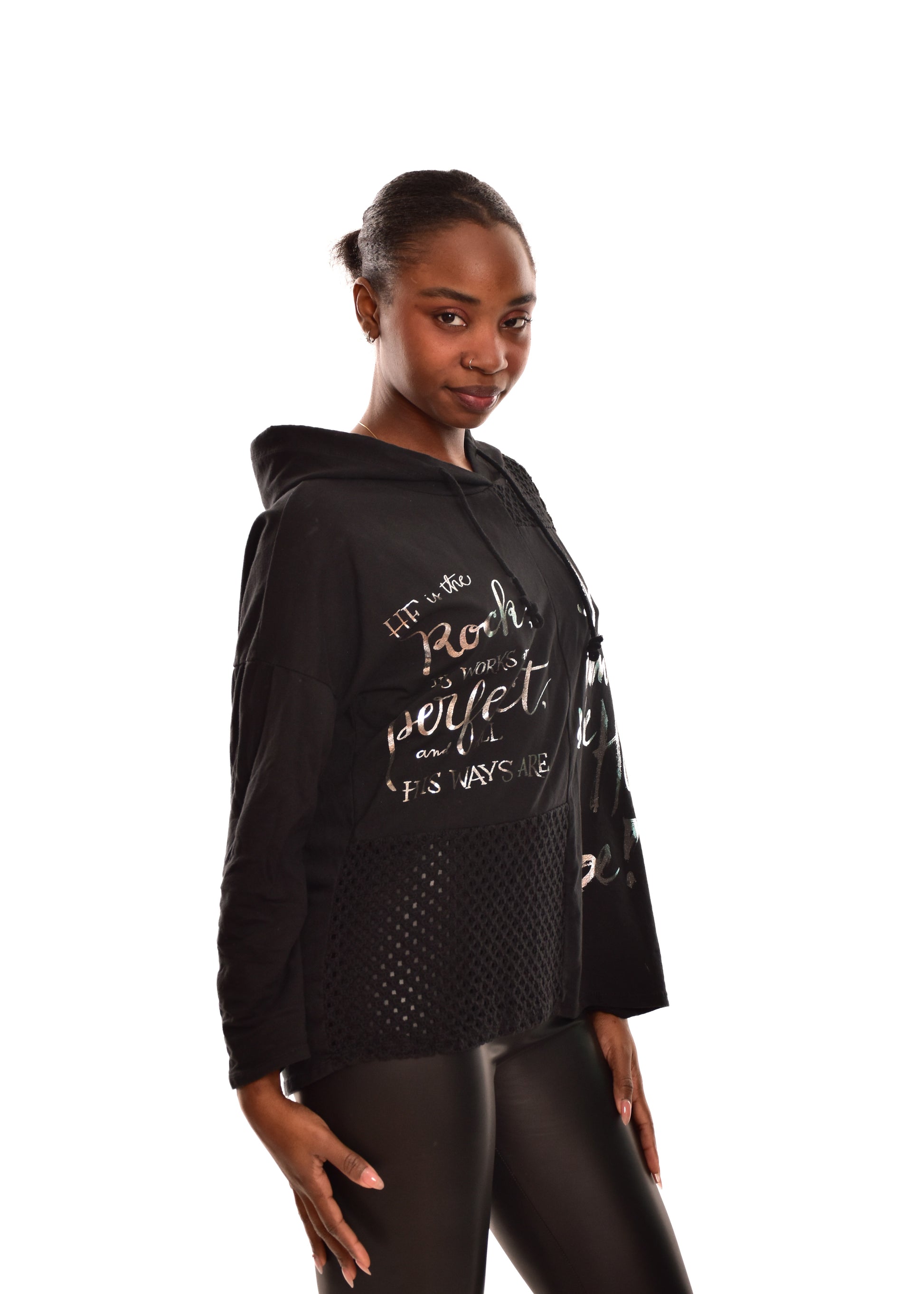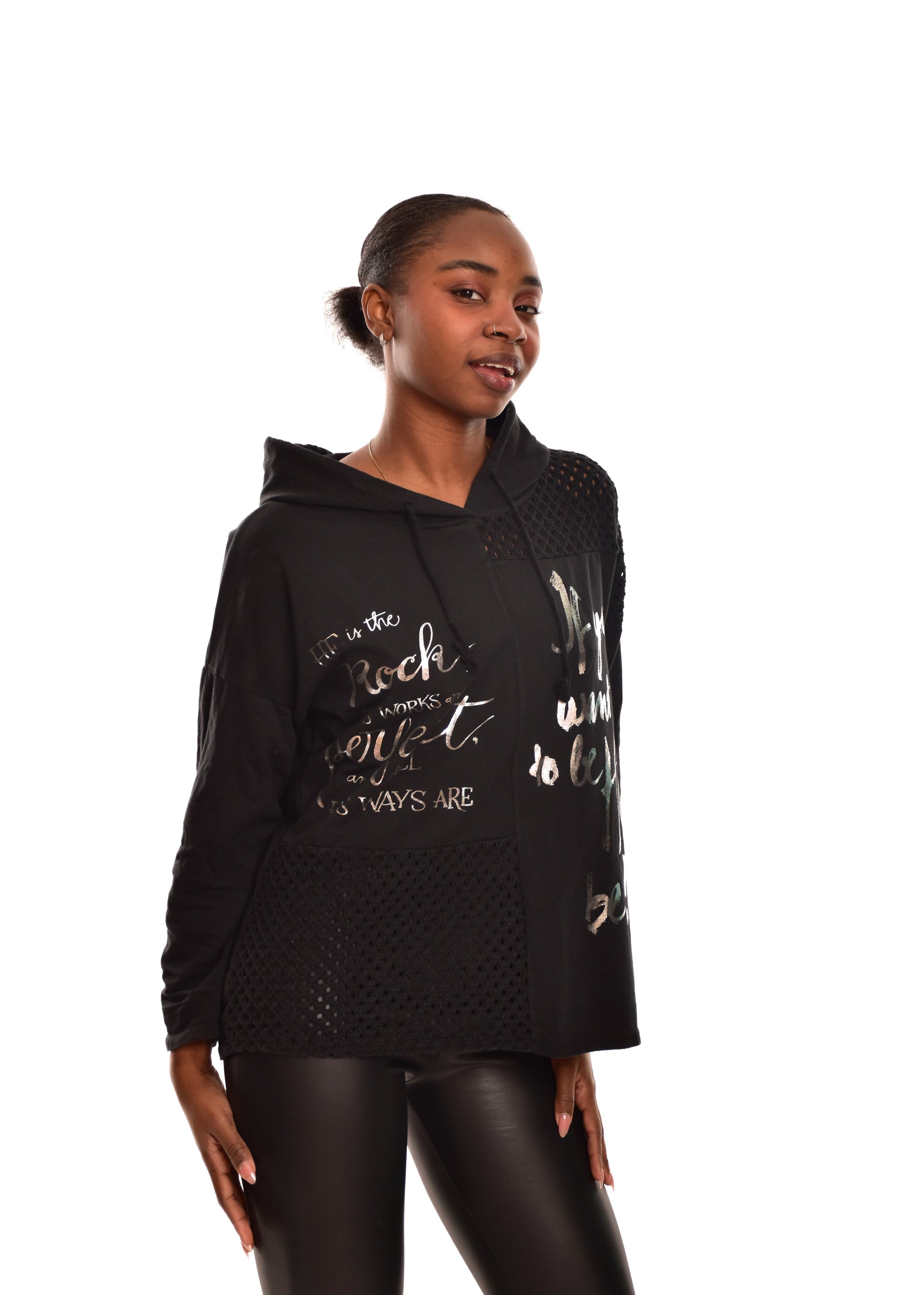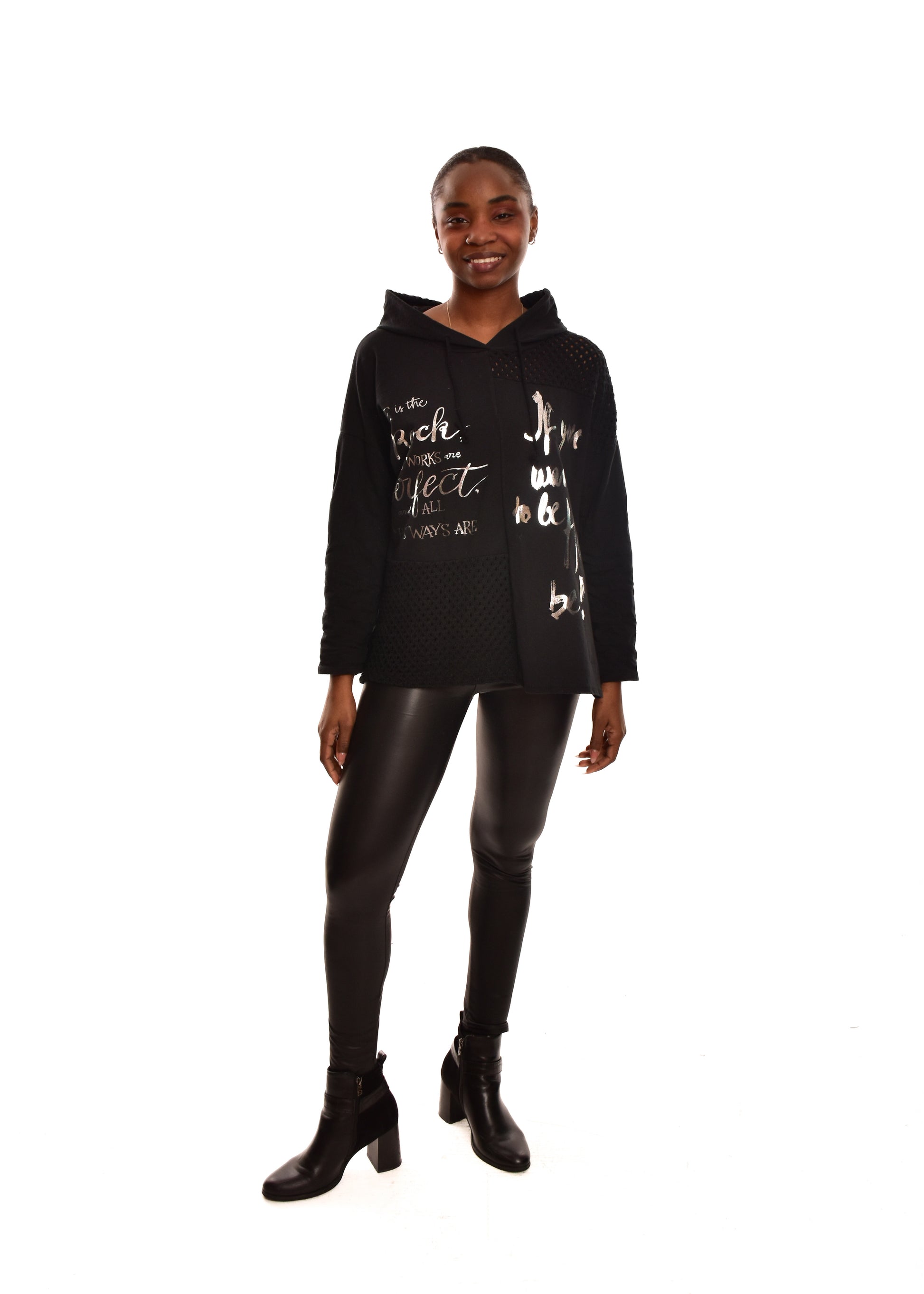 Sudadera de algodón con corte oversize. Incorpora troquelados. No lleva felpa interior.Esta prenda está disponible en talla única, en este caso es apto hasta una talla 44.