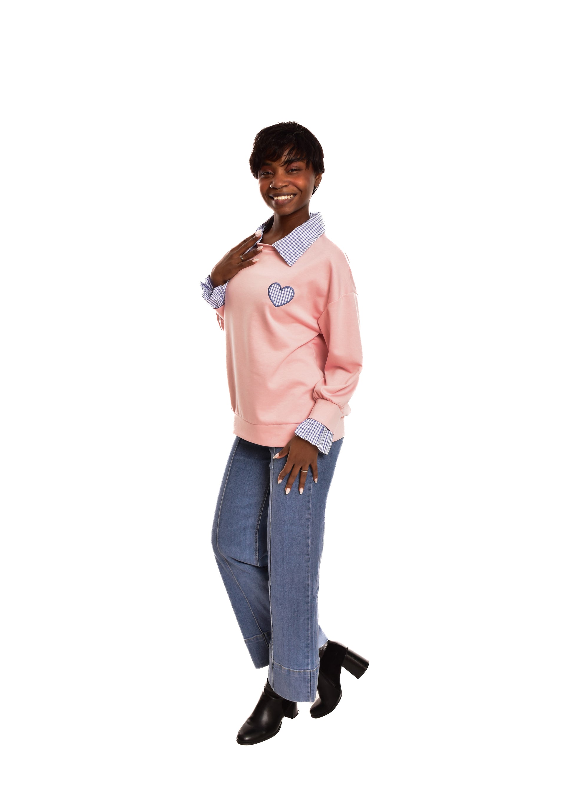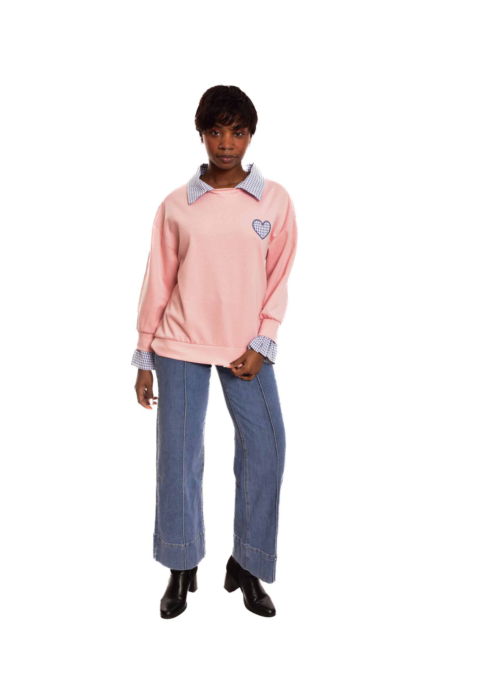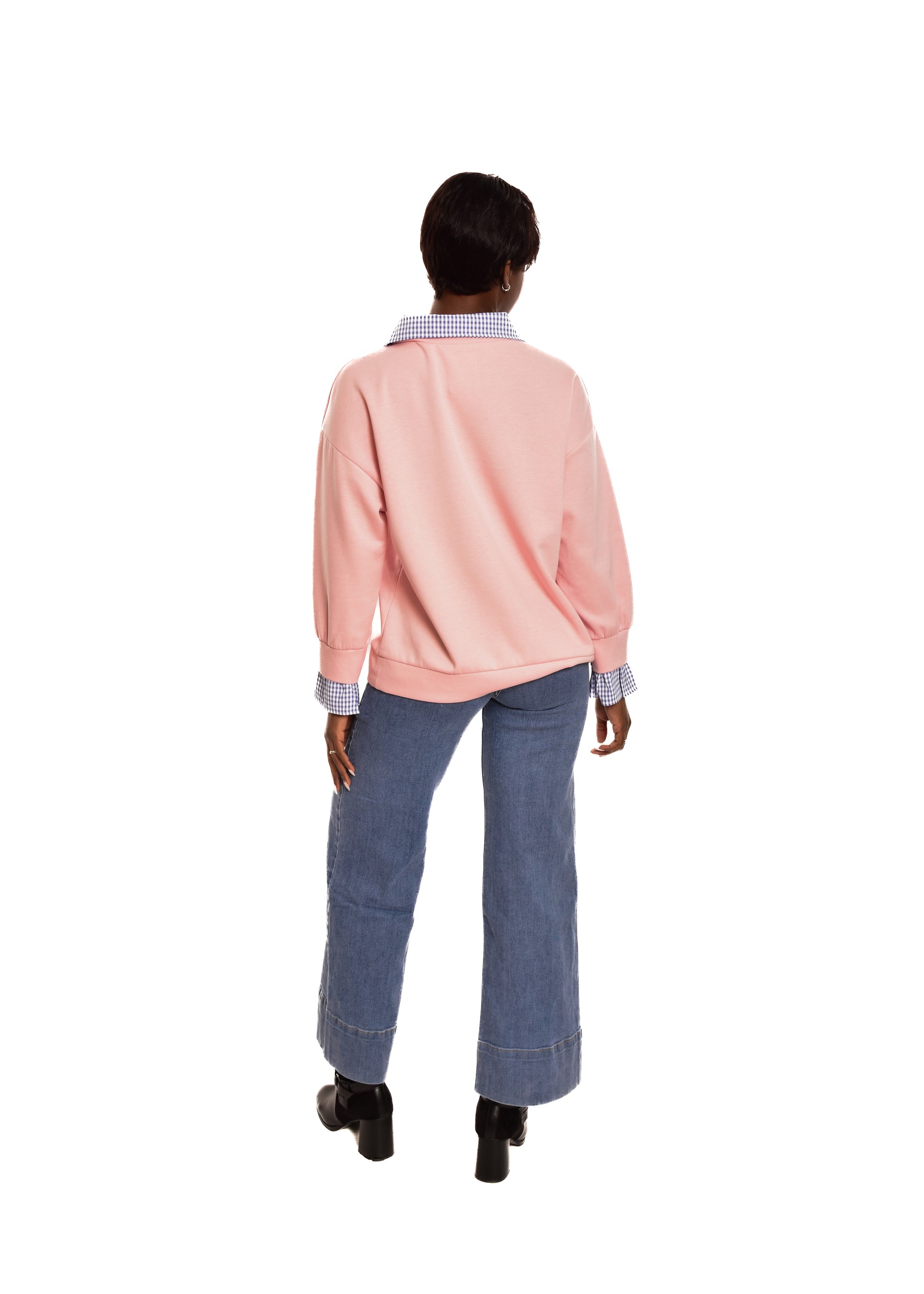 Sudadera en tejido de algodón combinada con partes en cuadro vichy. Esta prenda está disponible en talla única, en este caso es apto hasta una talla 42 amplia.