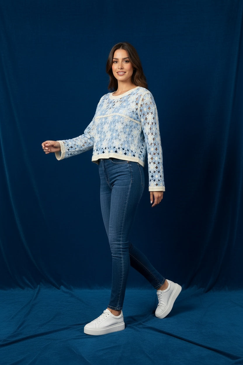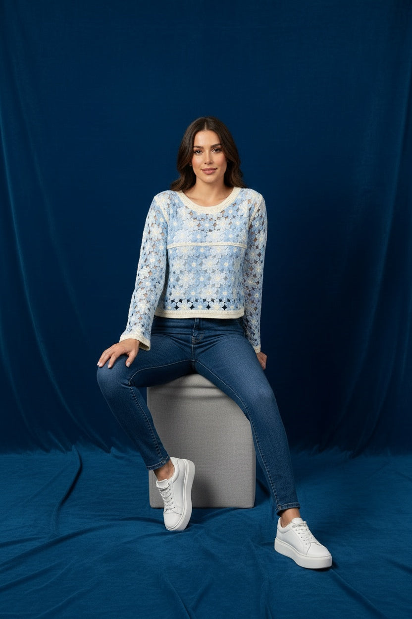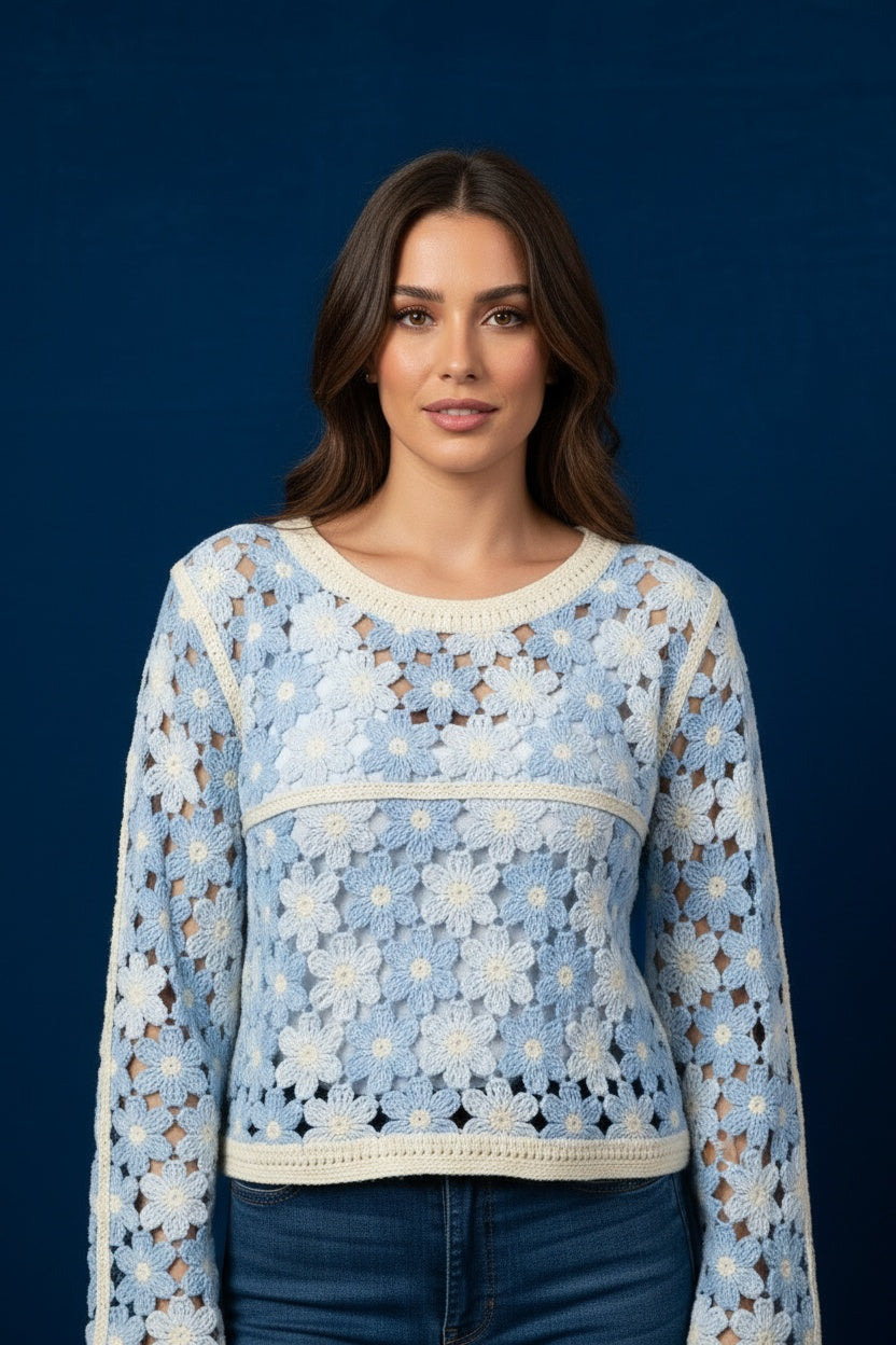 Top Calado en crochet en forma de florecitas.Esta prenda está disponible en doble talla S/M y L/XL, en este caso es apto hasta una talla 42.