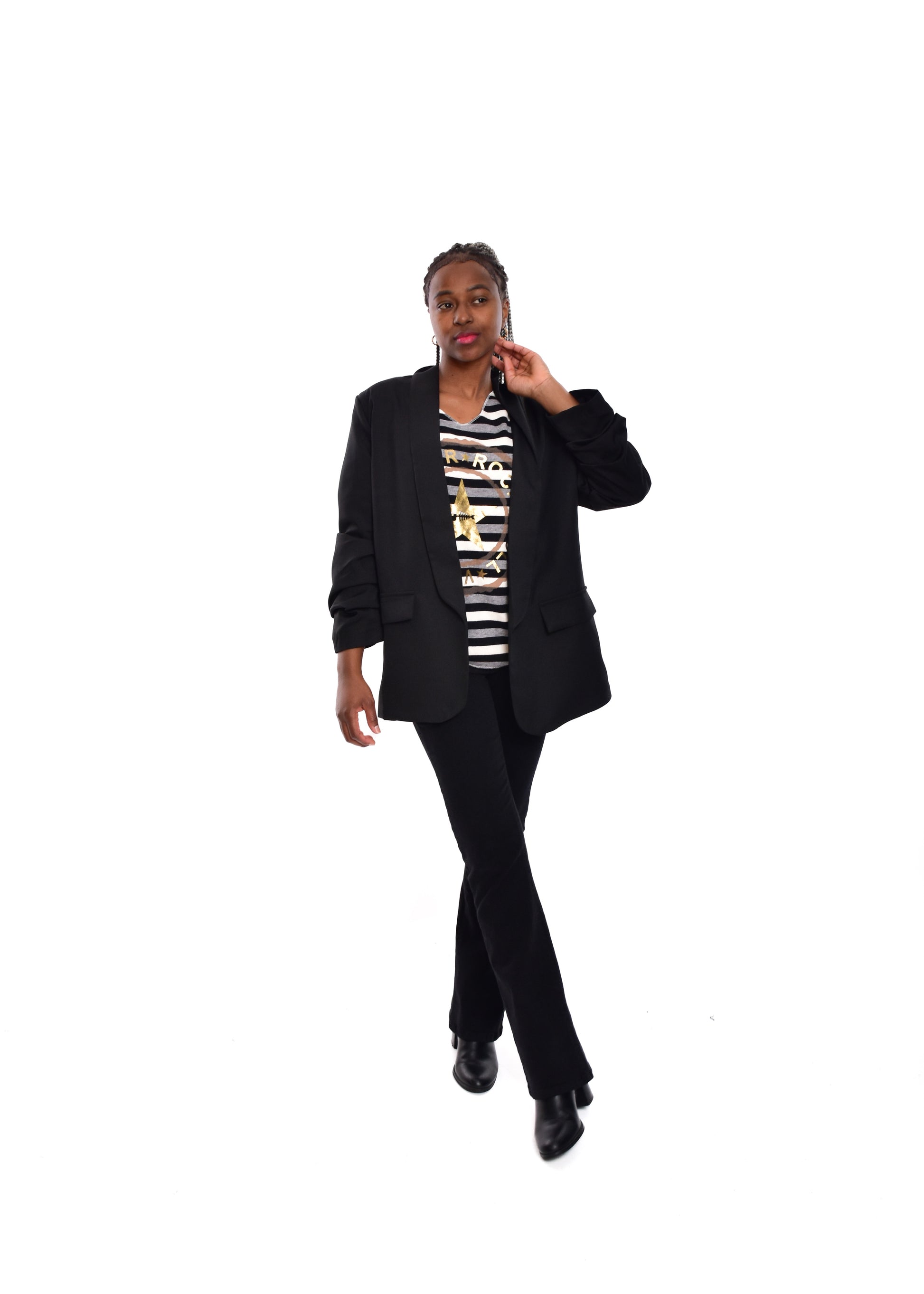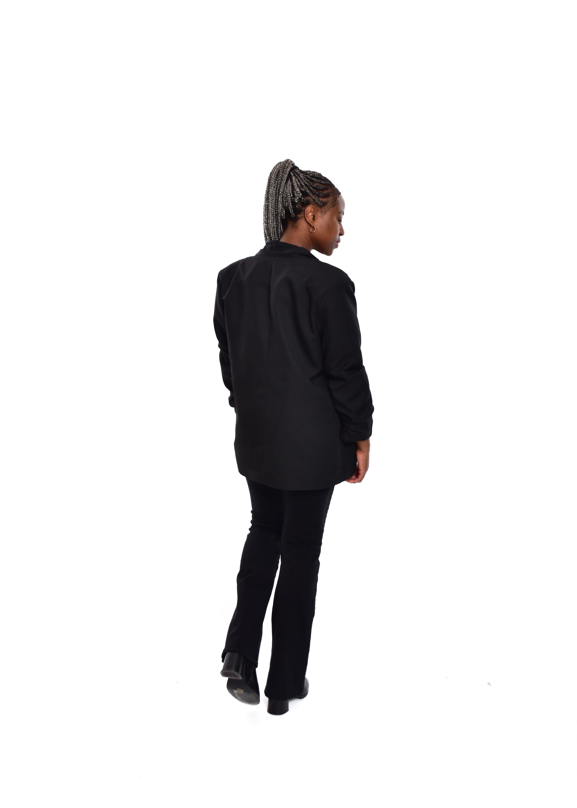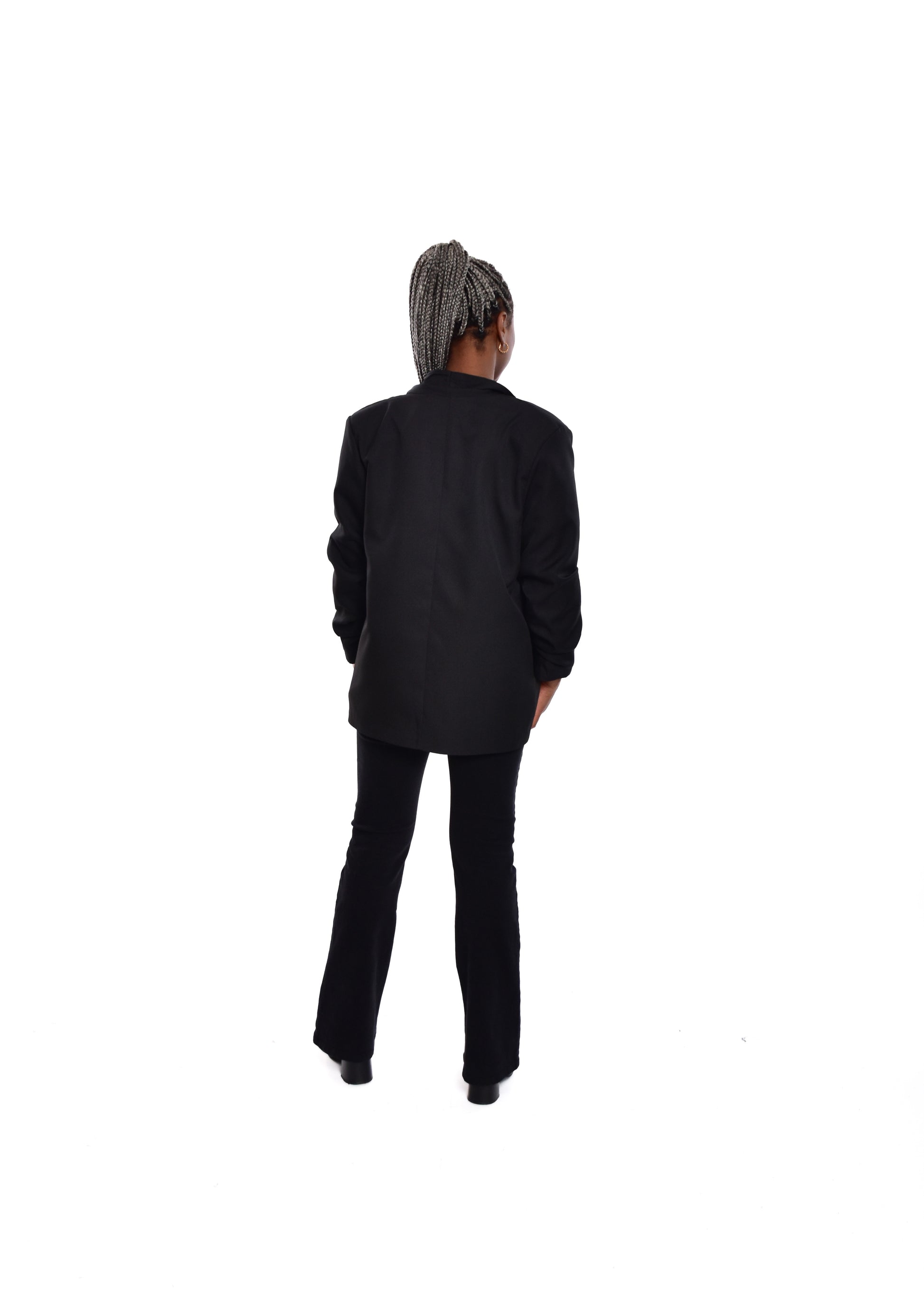 Blazer básico com mangas franzidas. Corte oversize. Possui forro. não inclui encerramento. Possui ombreiras. Este modelo está disponível em tamanho único, neste caso serve até o tamanho 44.