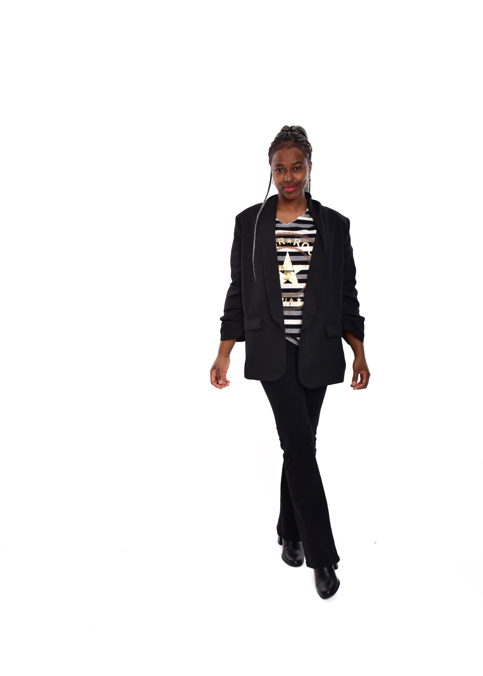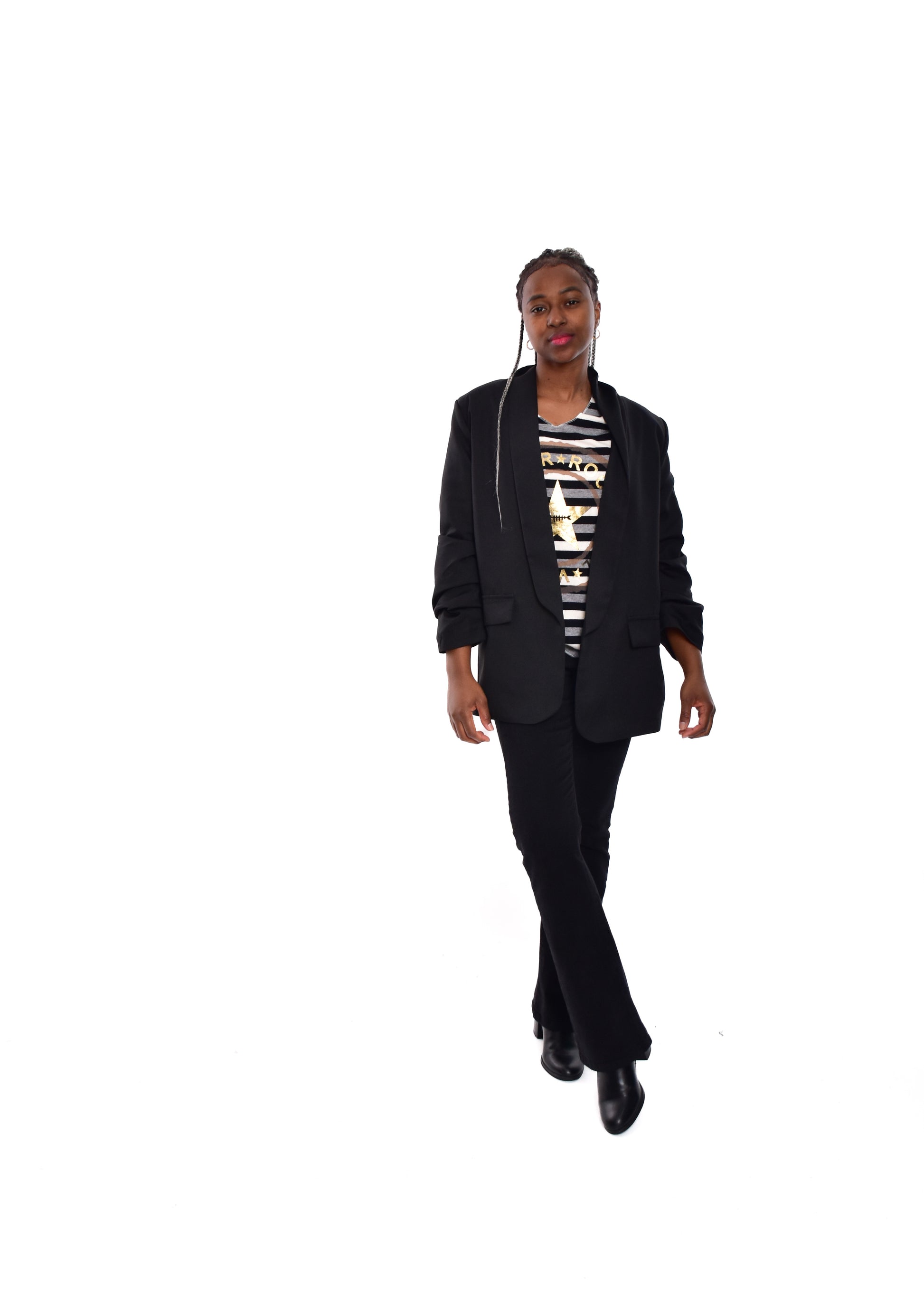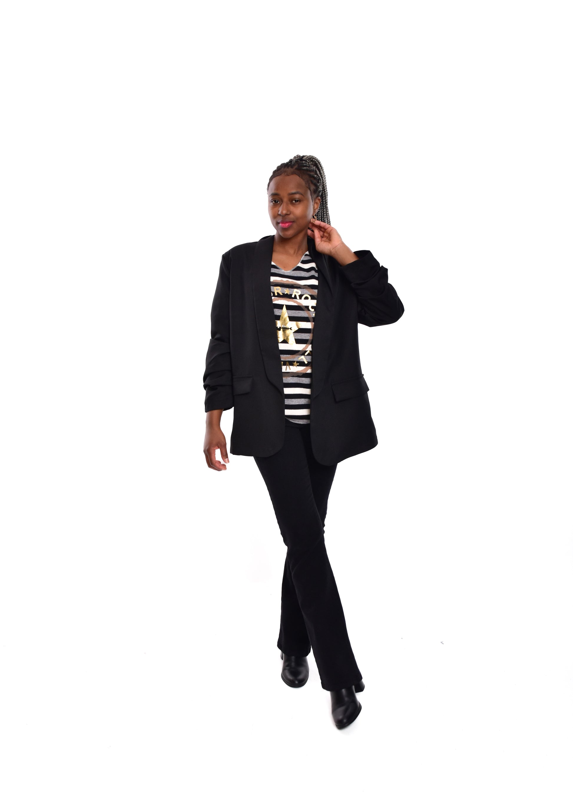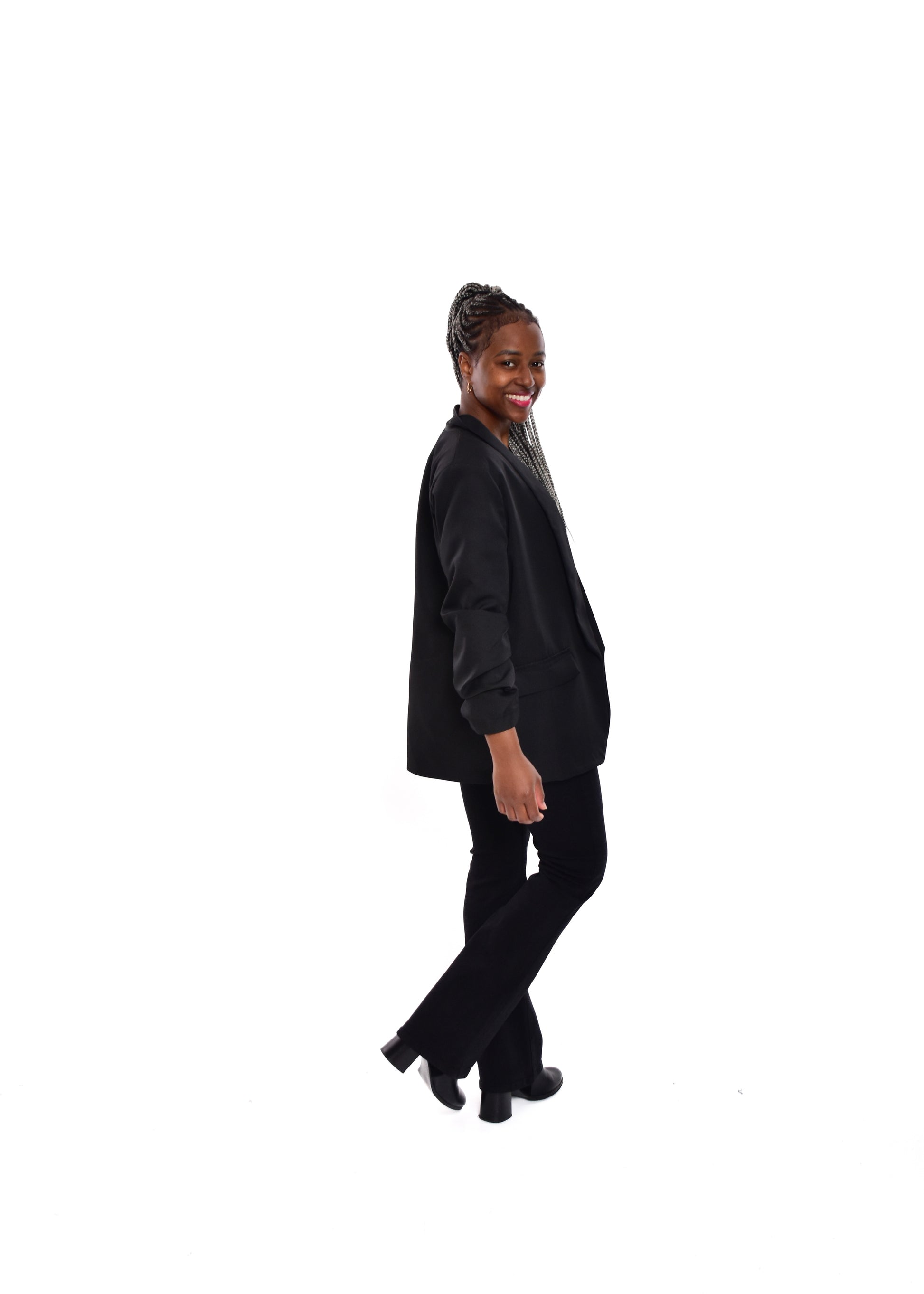 Blazer básico com mangas franzidas. Corte oversize. Possui forro. não inclui encerramento. Possui ombreiras. Este modelo está disponível em tamanho único, neste caso serve até o tamanho 44.