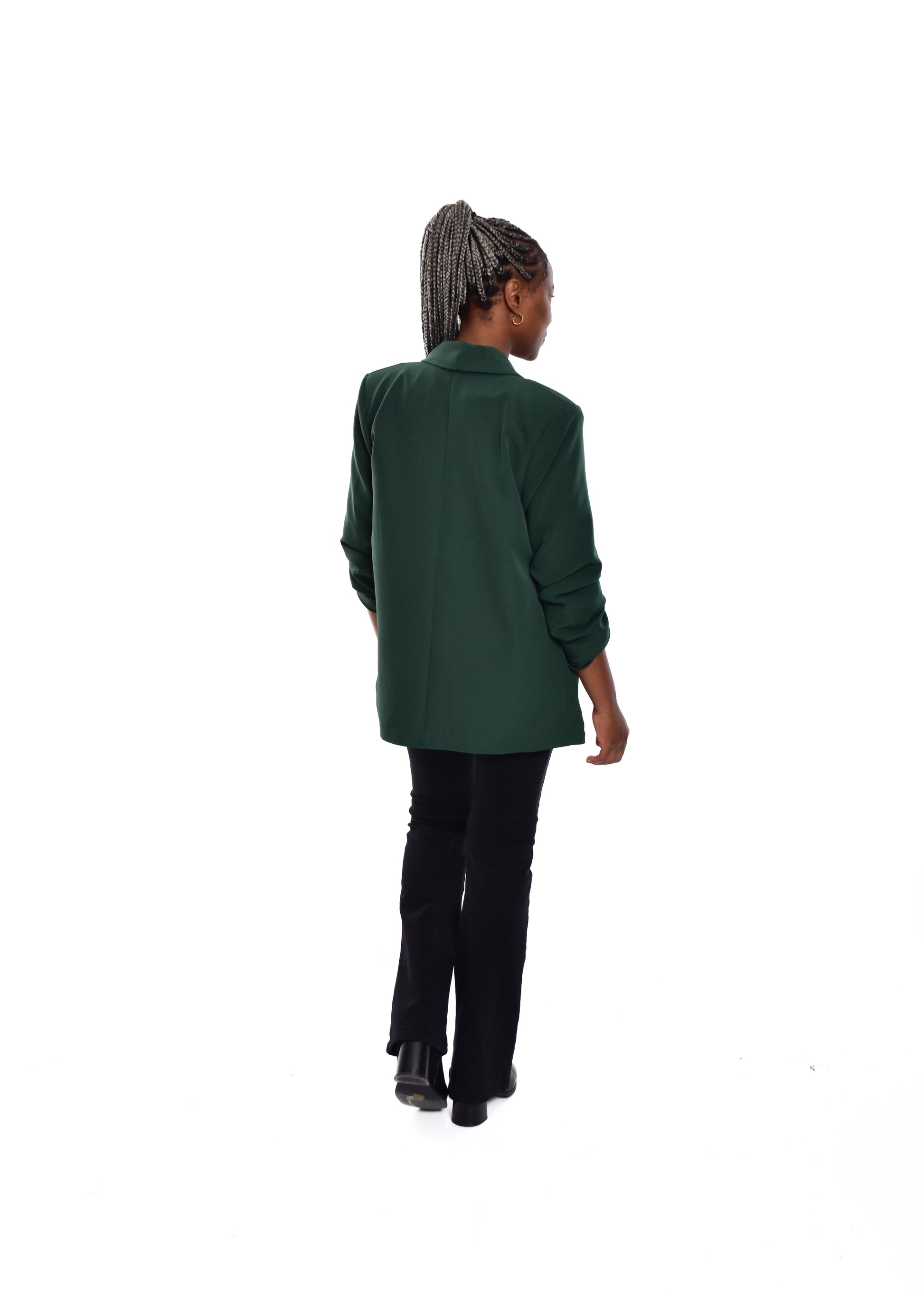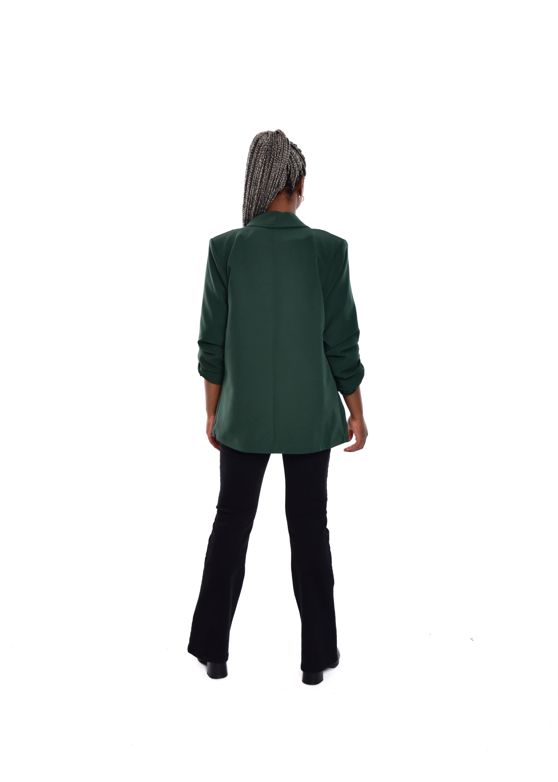 Blazer básico com mangas franzidas. Corte oversize. Possui forro. não inclui encerramento. Possui ombreiras. Este modelo está disponível em tamanho único, neste caso serve até o tamanho 44.