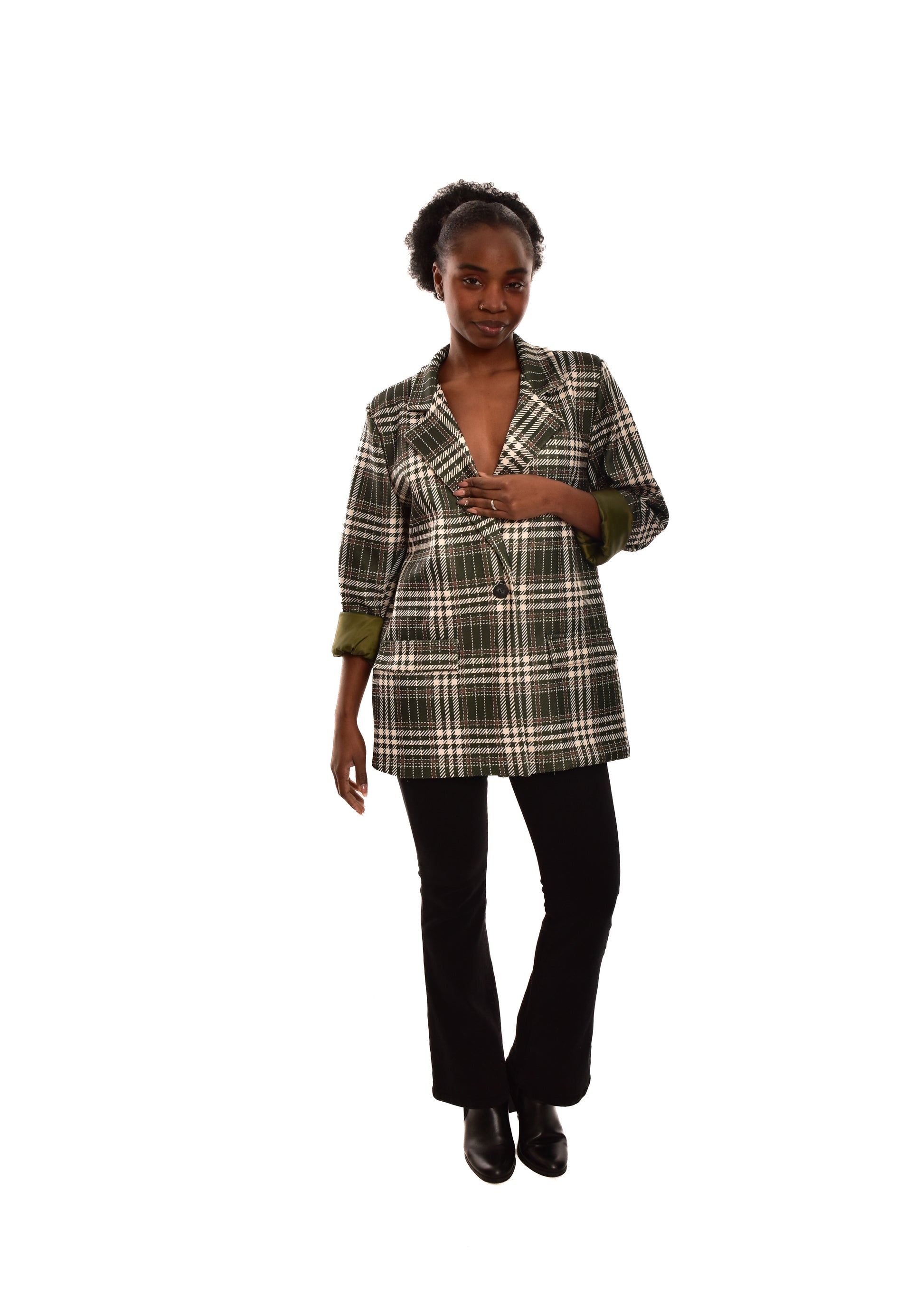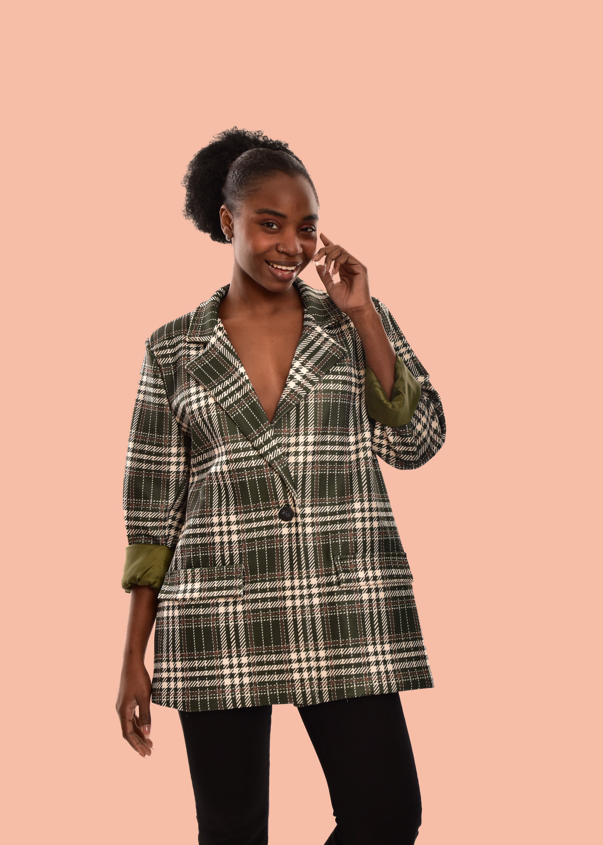 Blazer básico com mangas franzidas. Corte oversize. Possui forro. não inclui encerramento. Possui ombreiras. Este modelo está disponível em tamanho único, neste caso serve até o tamanho 44.