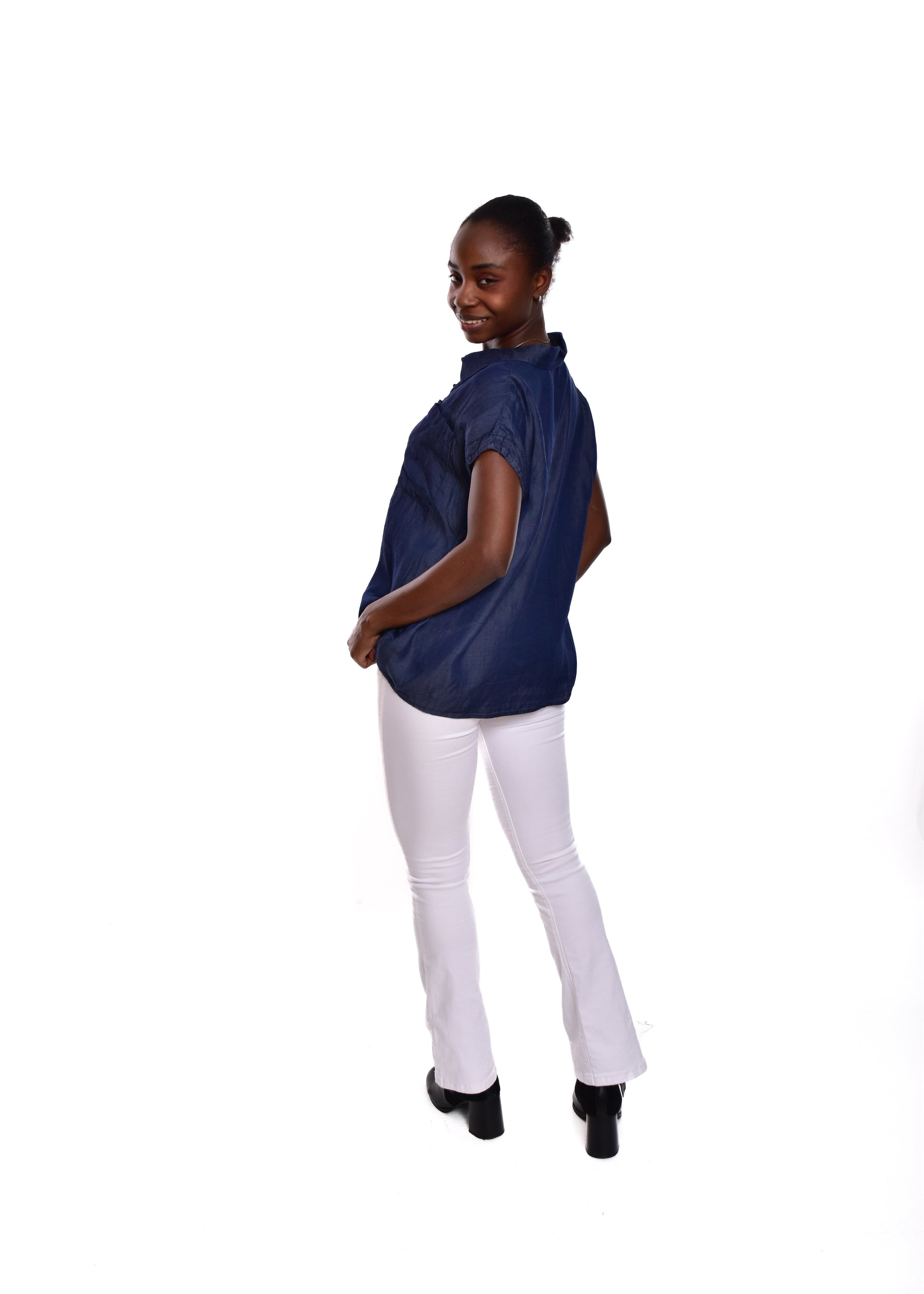 Una blusa versátil y fácil de combinar, diseñada con líneas relajadas y acabados cuidados. Disponible en dos tallas, se adapta a tus movimientos sin perder estilo.