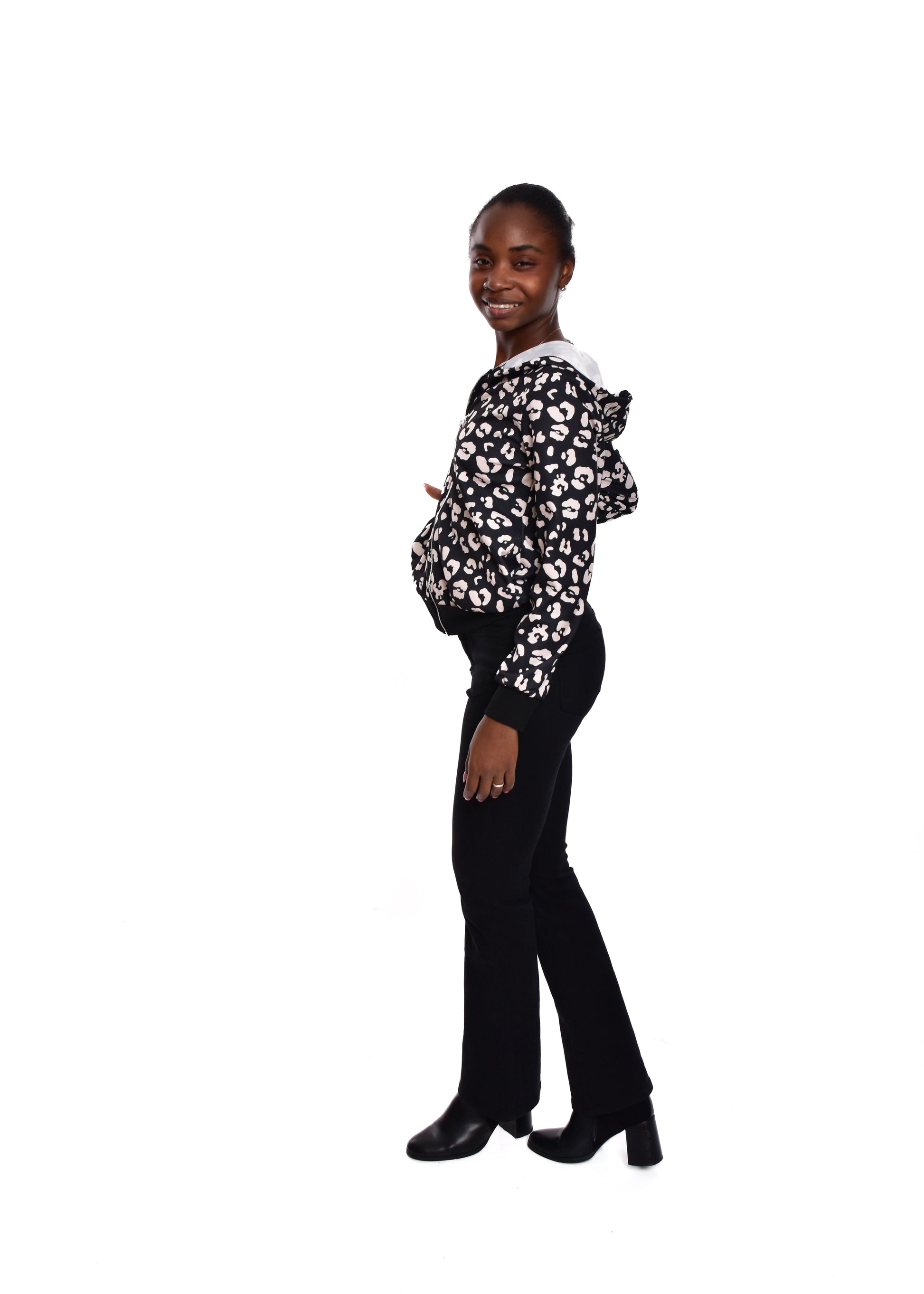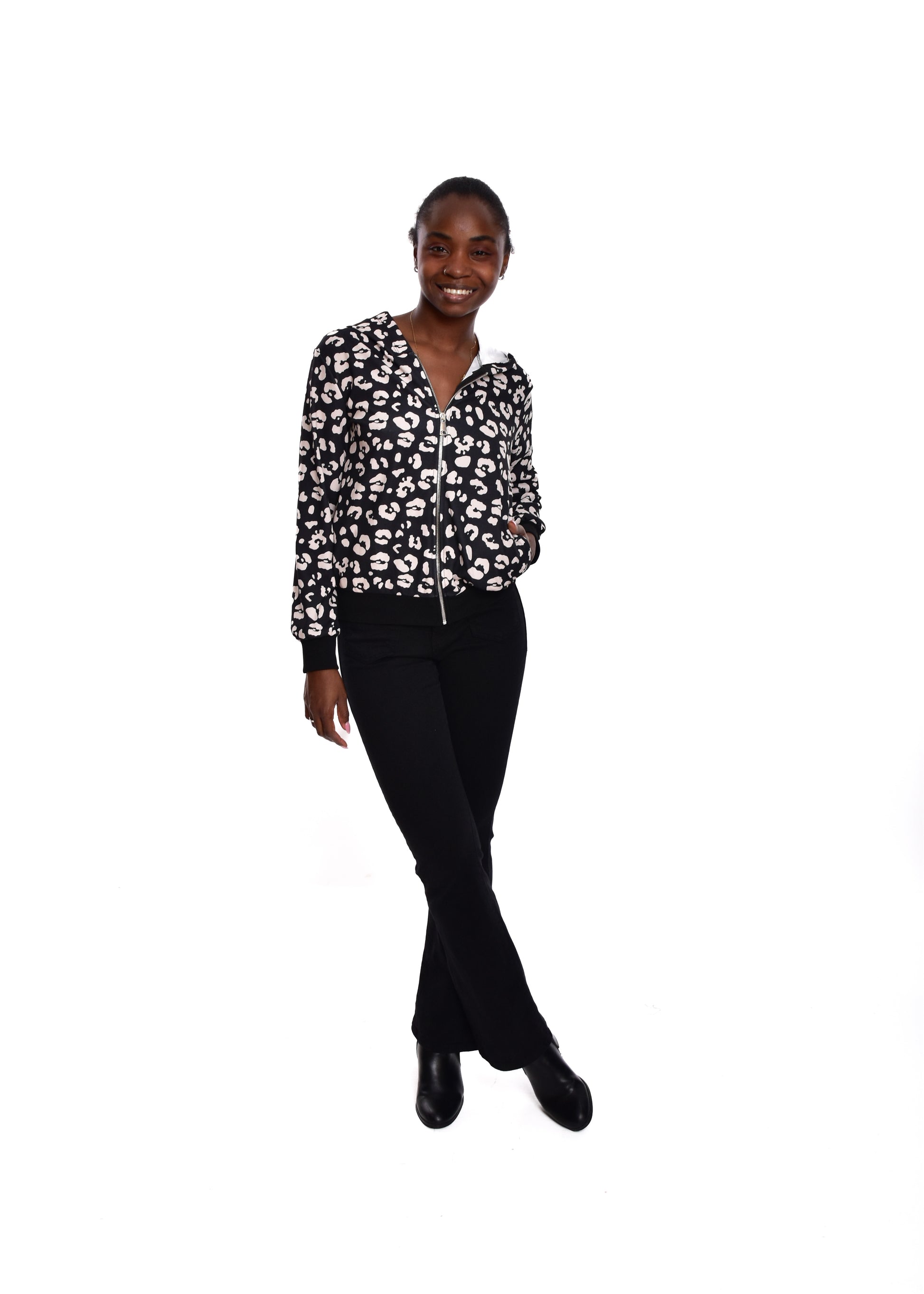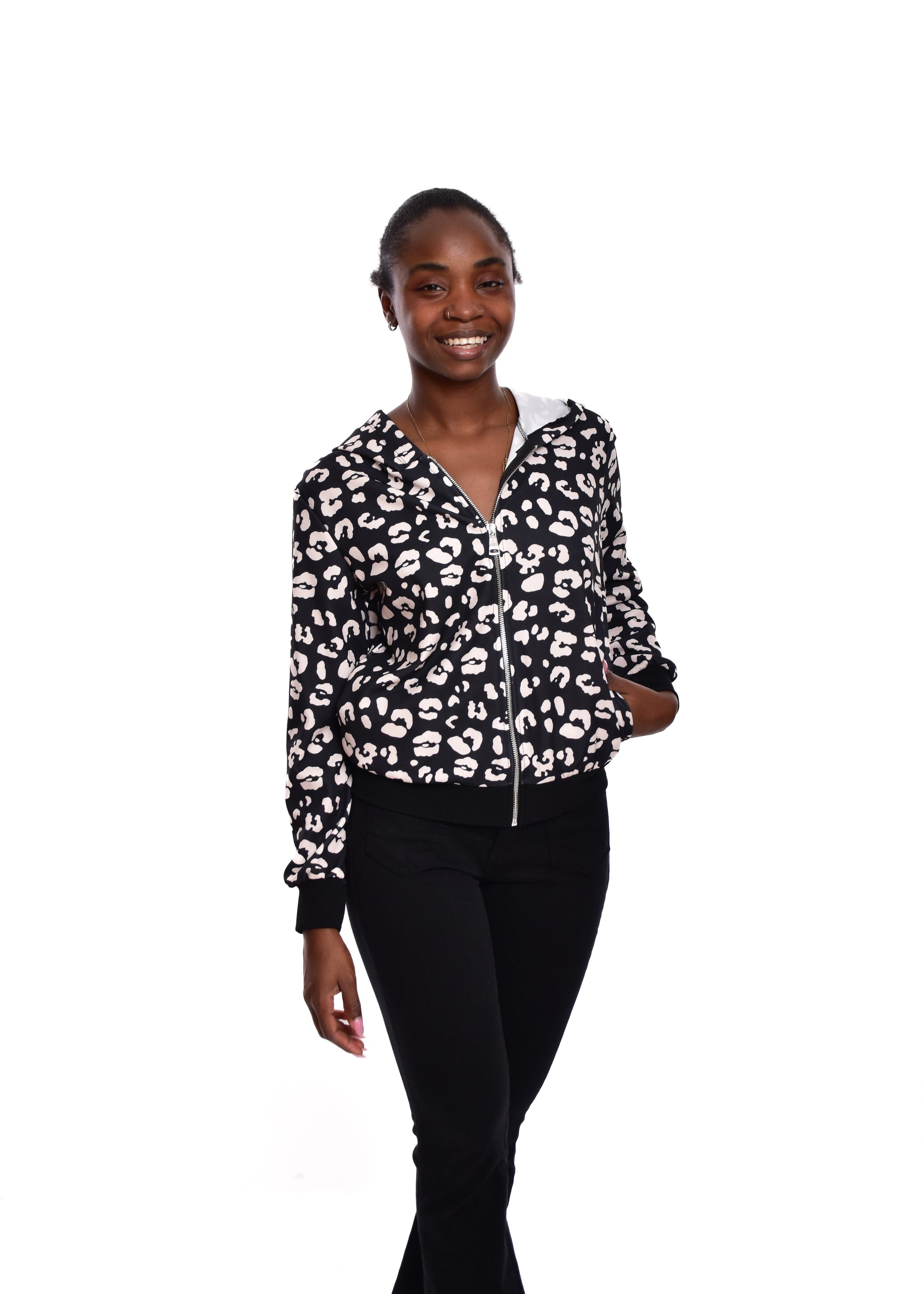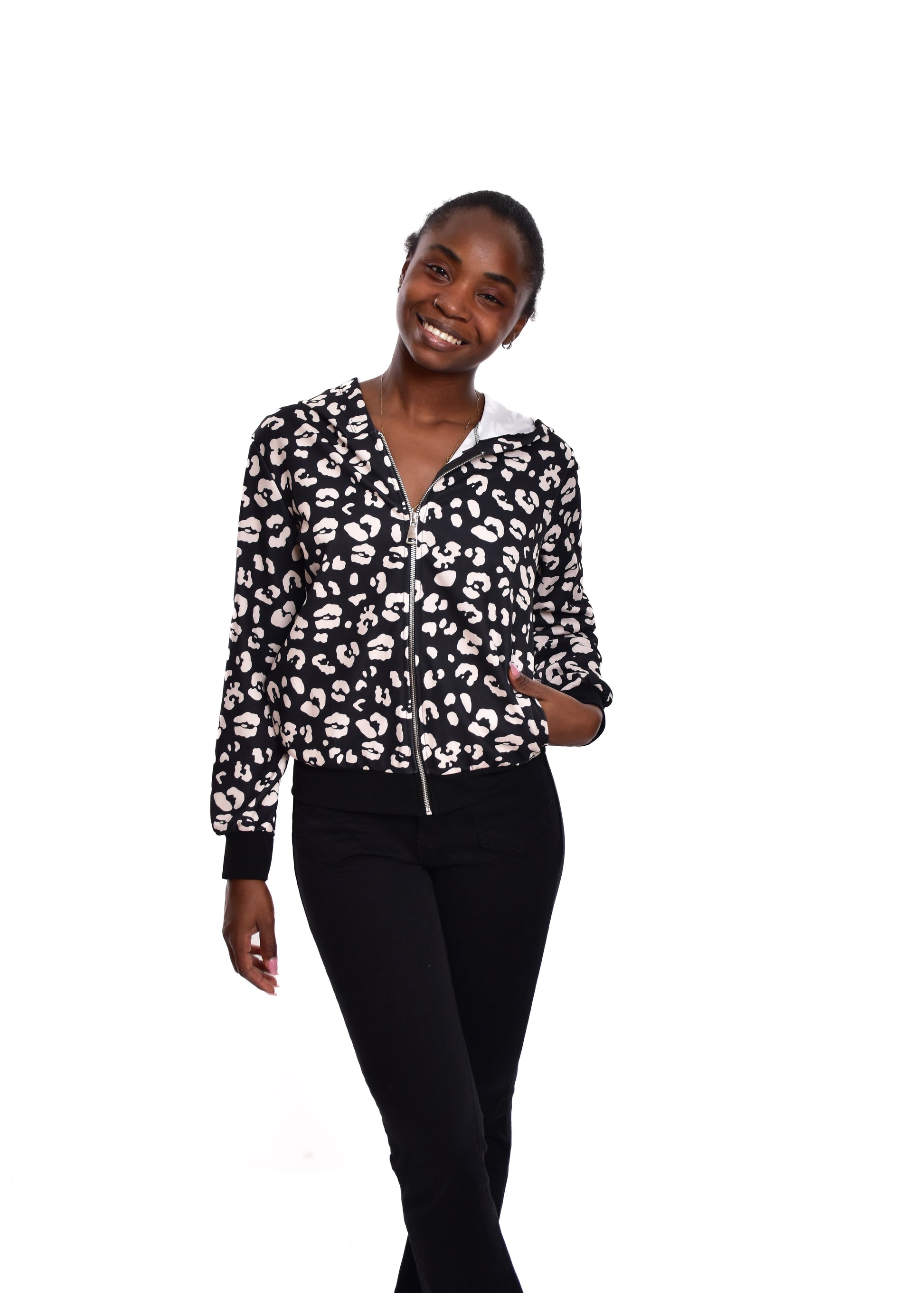 La Bomber Animal Print es una chaqueta de estilo bomber que combina un diseño moderno con un toque animal print. Confeccionada en un tejido suave y cómodo, esta prenda es ideal para añadir un toque de estilo a tu look.