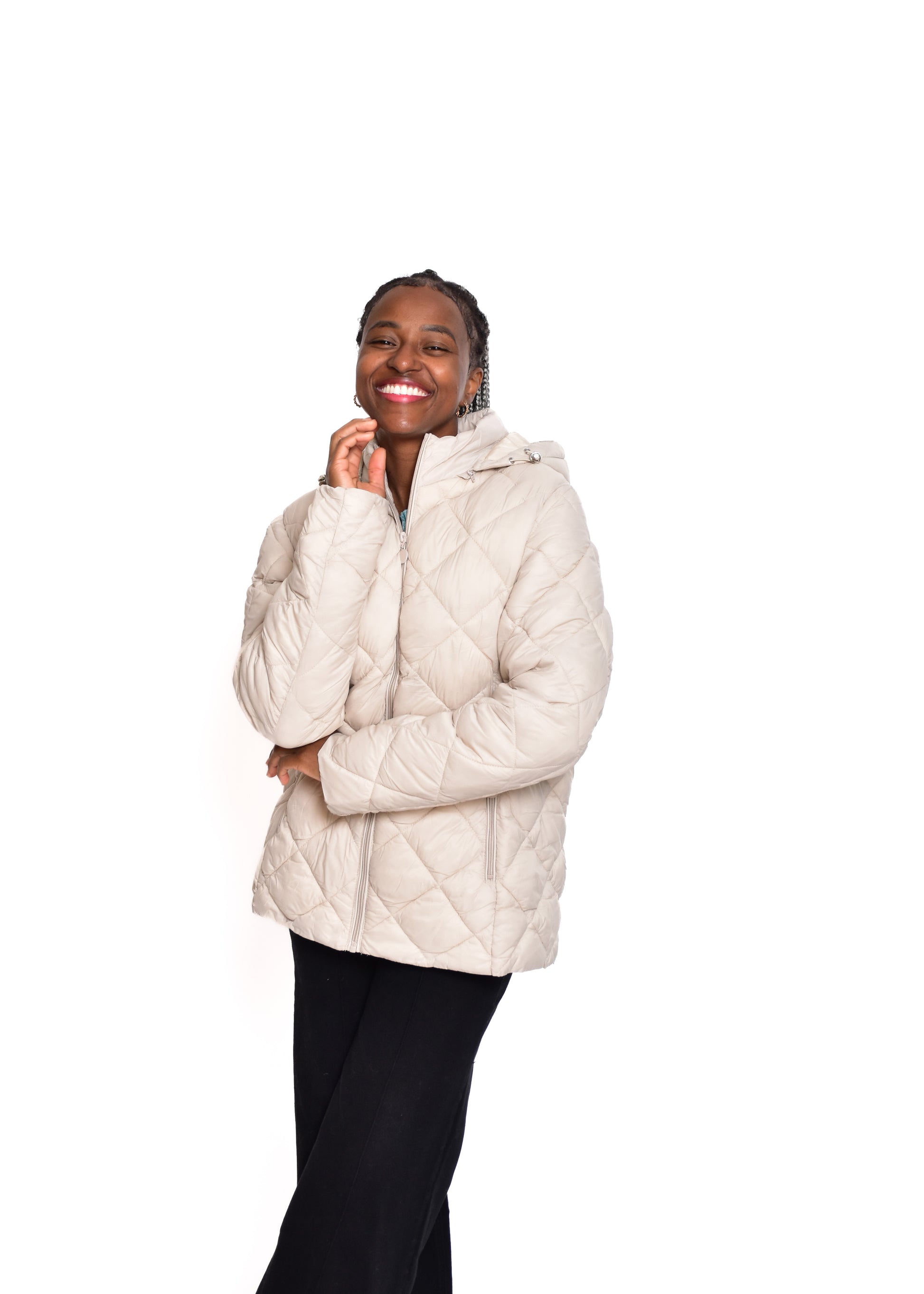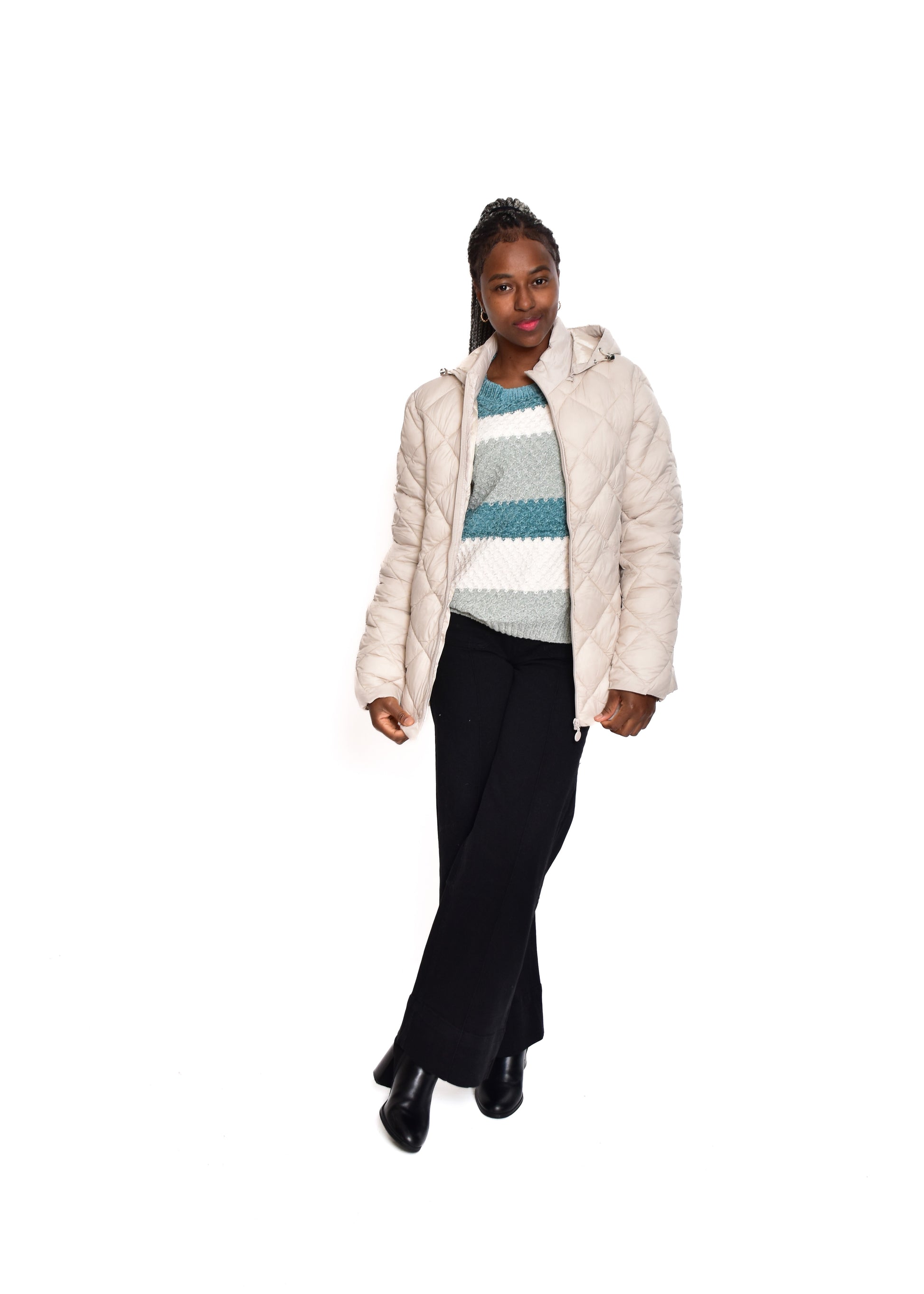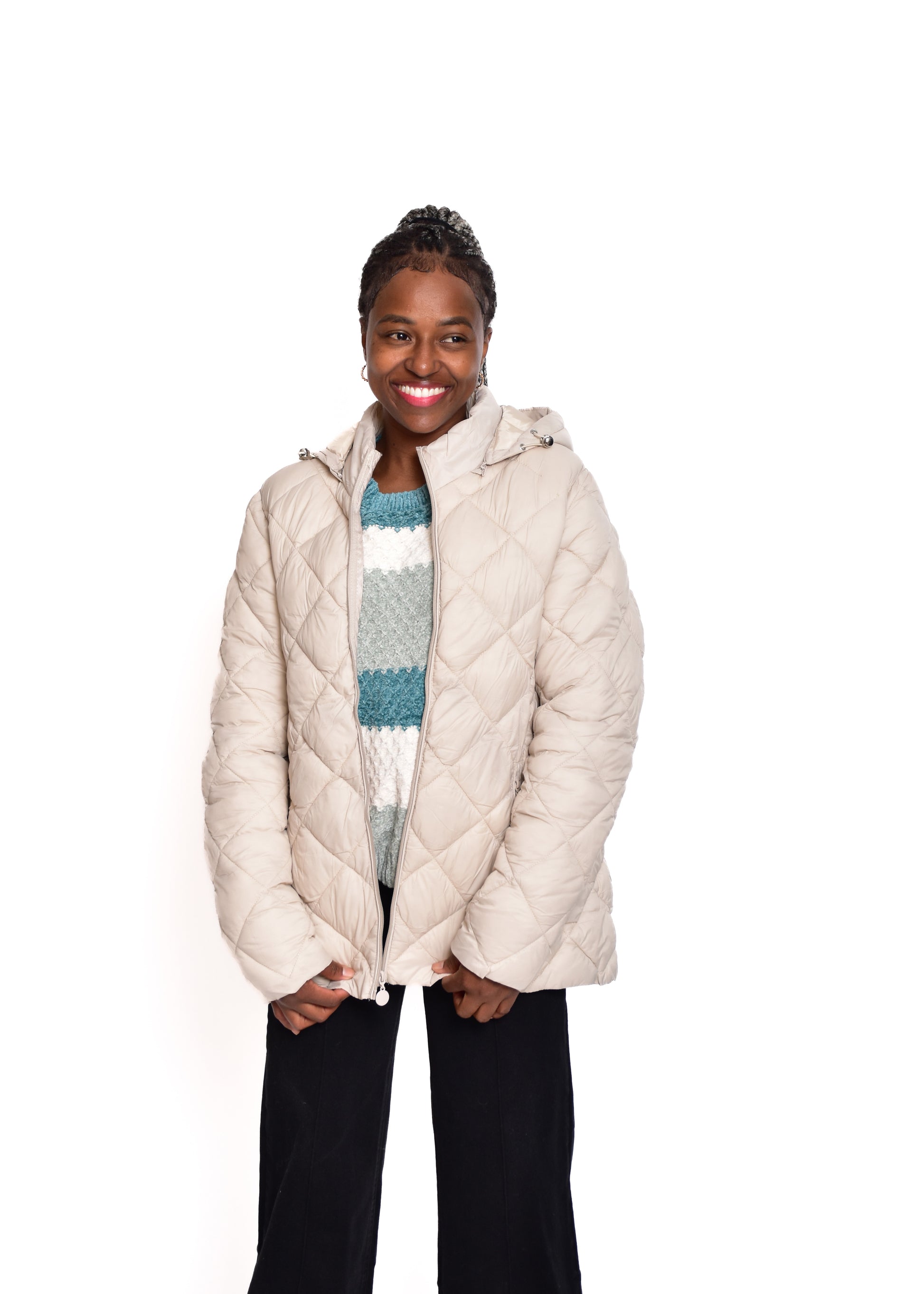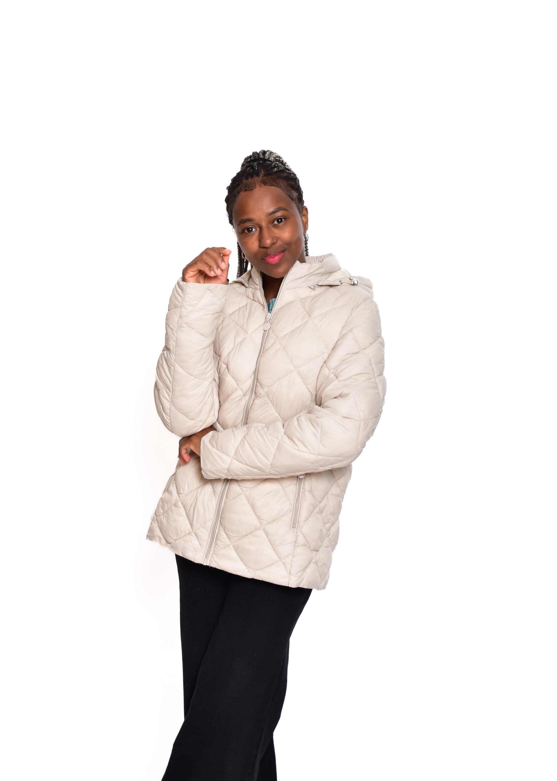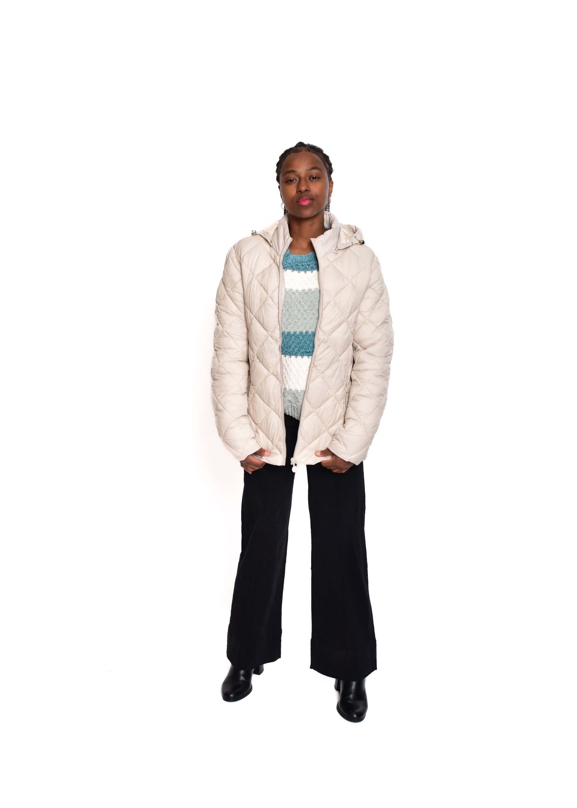 Jaqueta acolchoada. Enchimento sintético. Este modelo está disponível do tamanho S ao XL, neste caso serve até o tamanho 44.