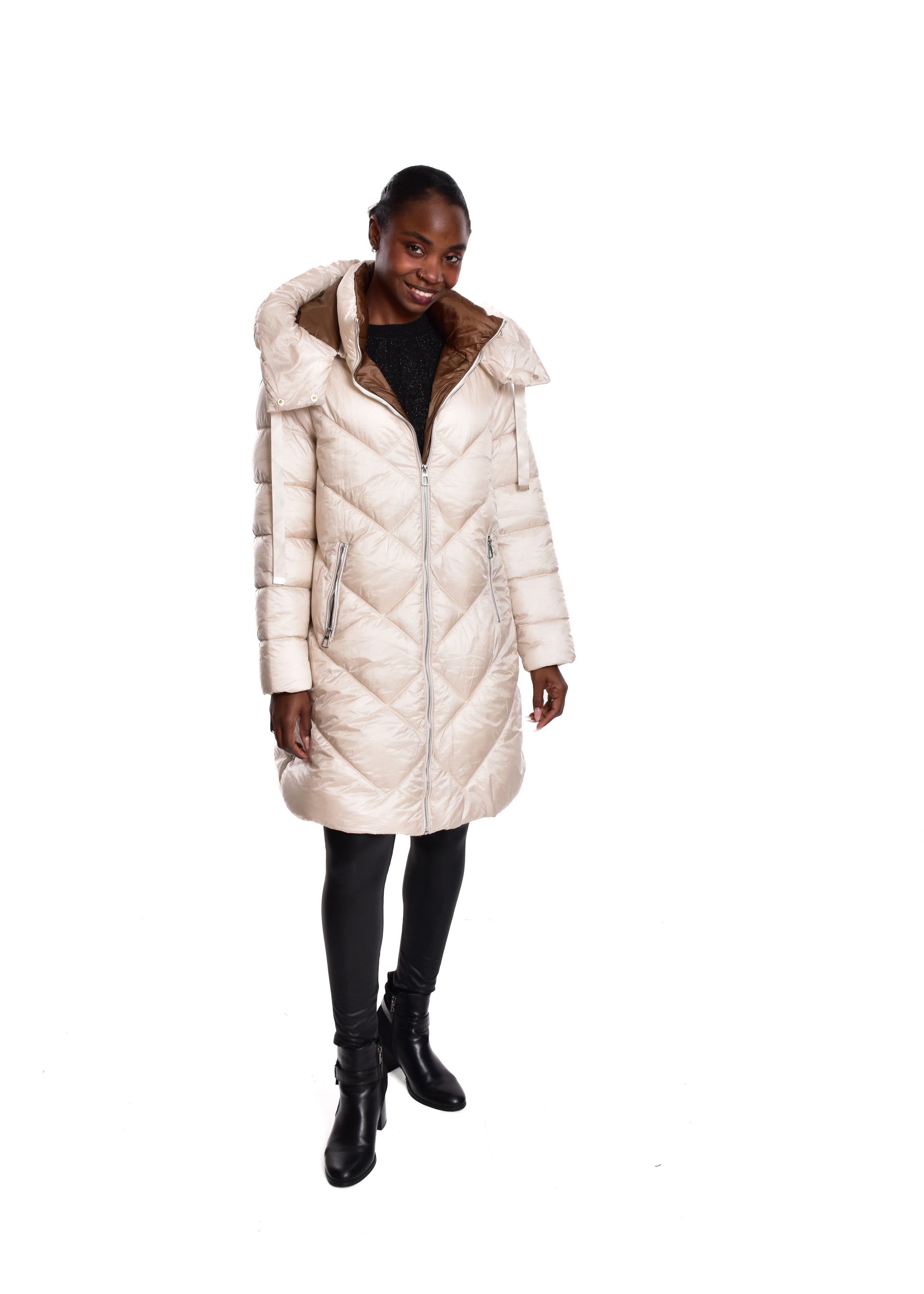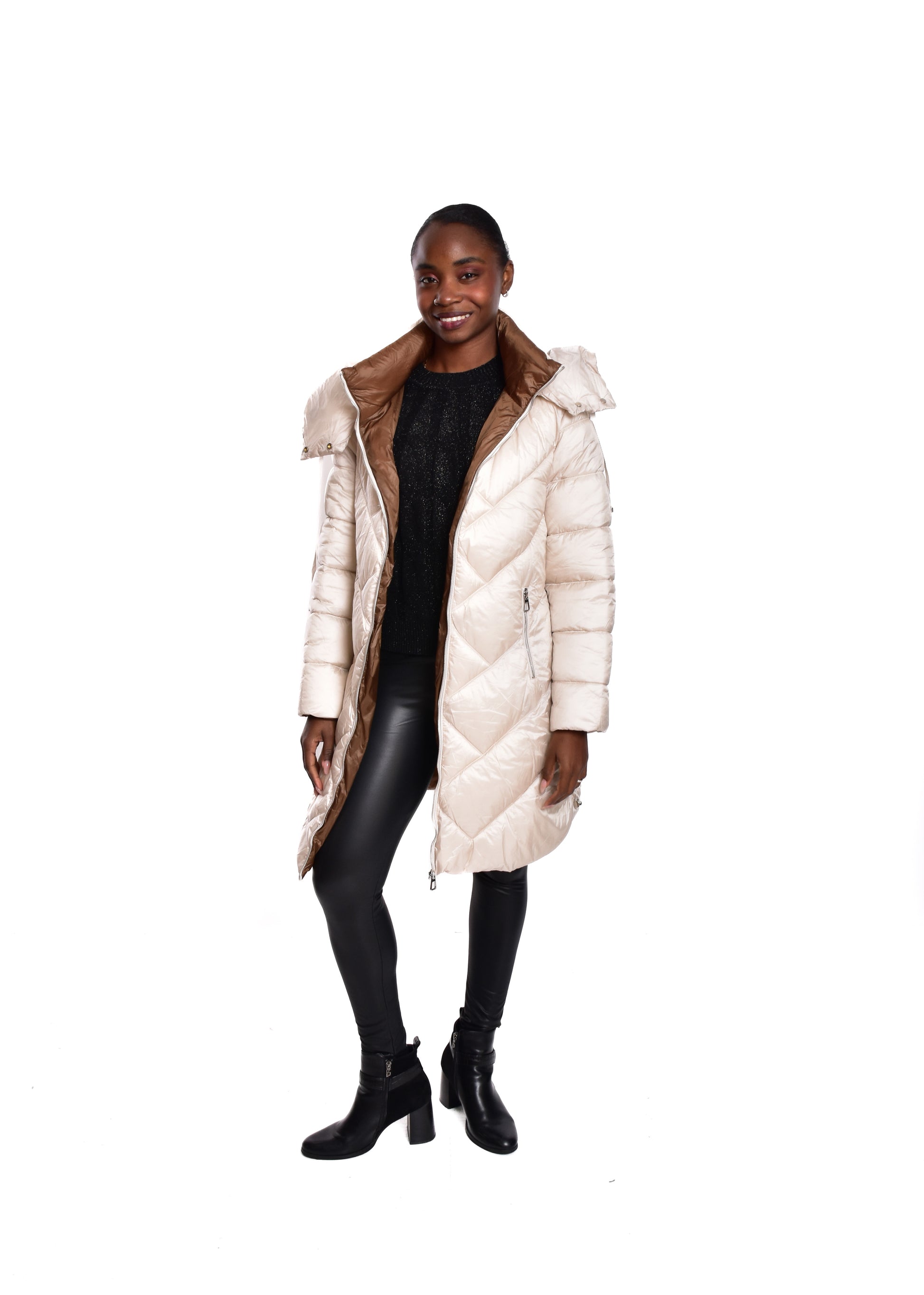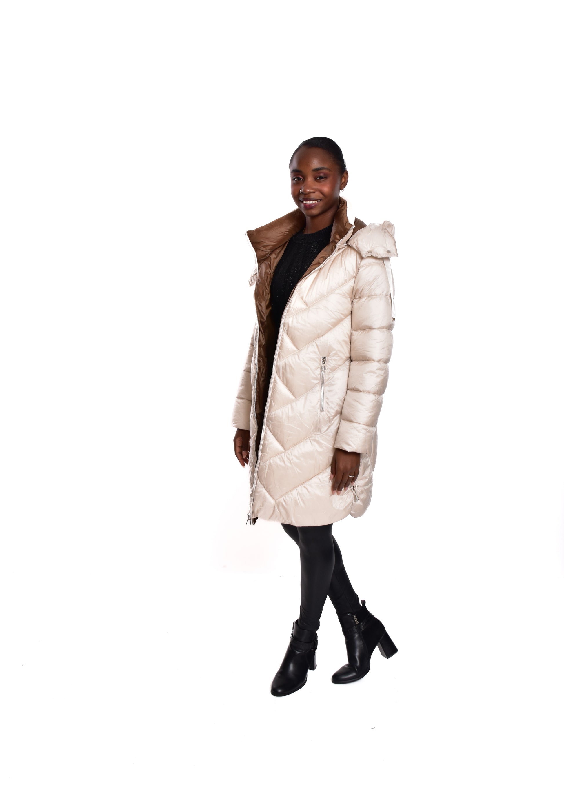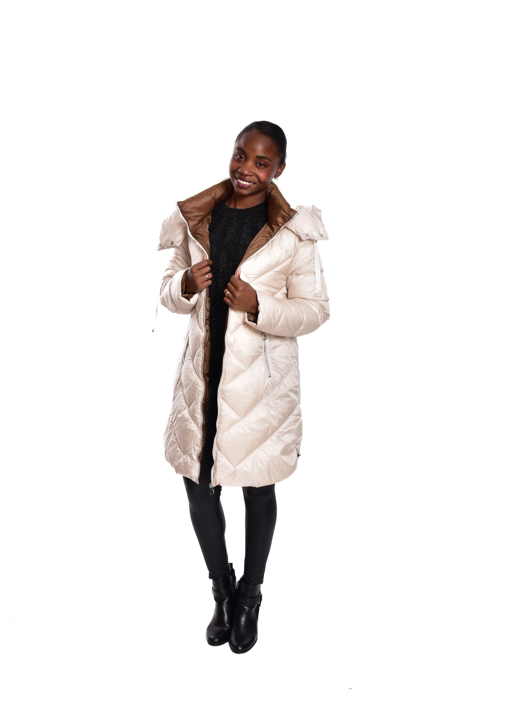 Jaqueta acolchoada. Enchimento sintético. Este modelo está disponível do tamanho S ao XL, neste caso serve até o tamanho 44.