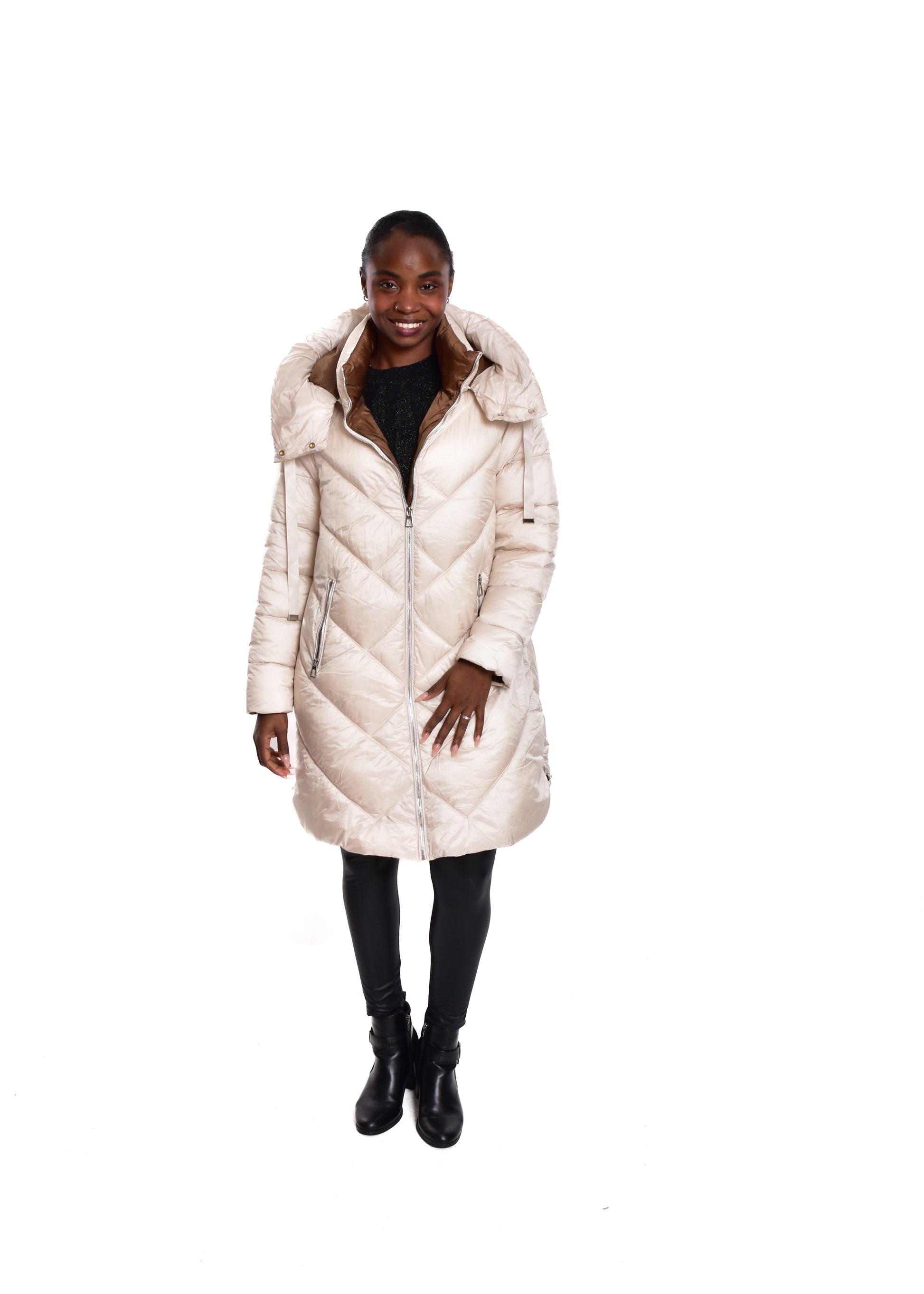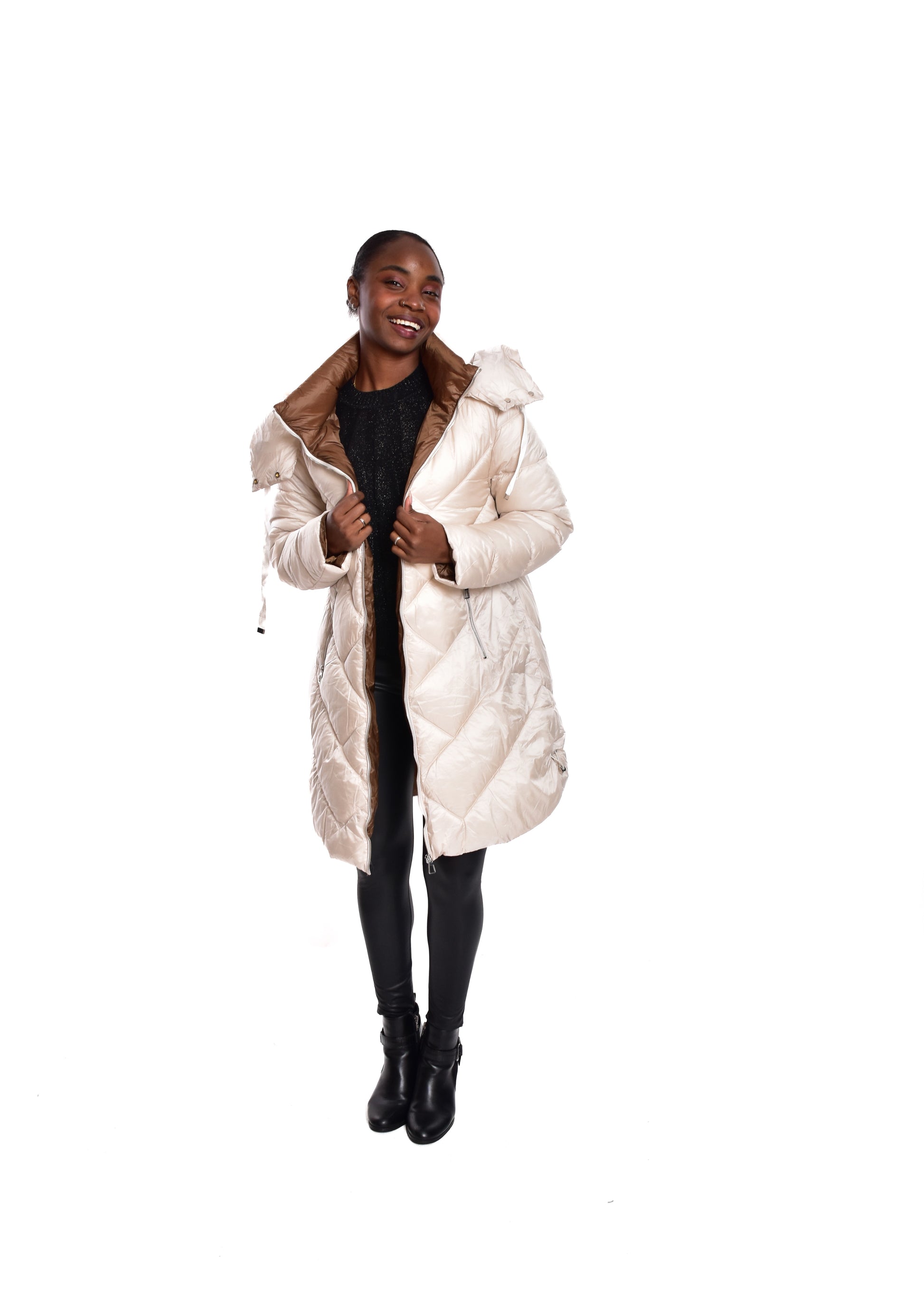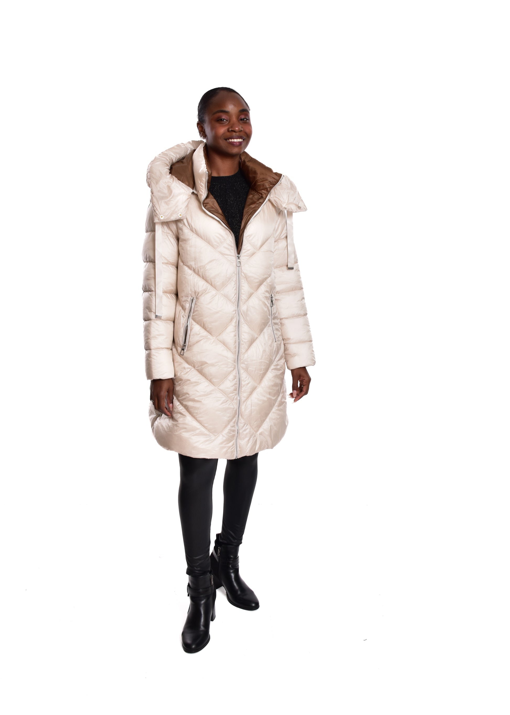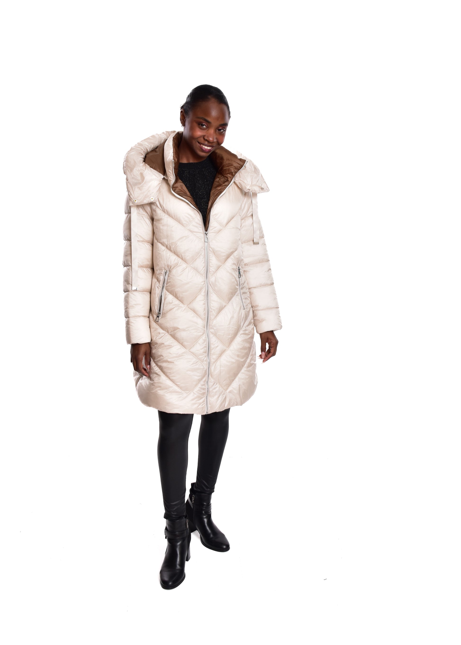 Jaqueta acolchoada. Enchimento sintético. Este modelo está disponível do tamanho S ao XL, neste caso serve até o tamanho 44.