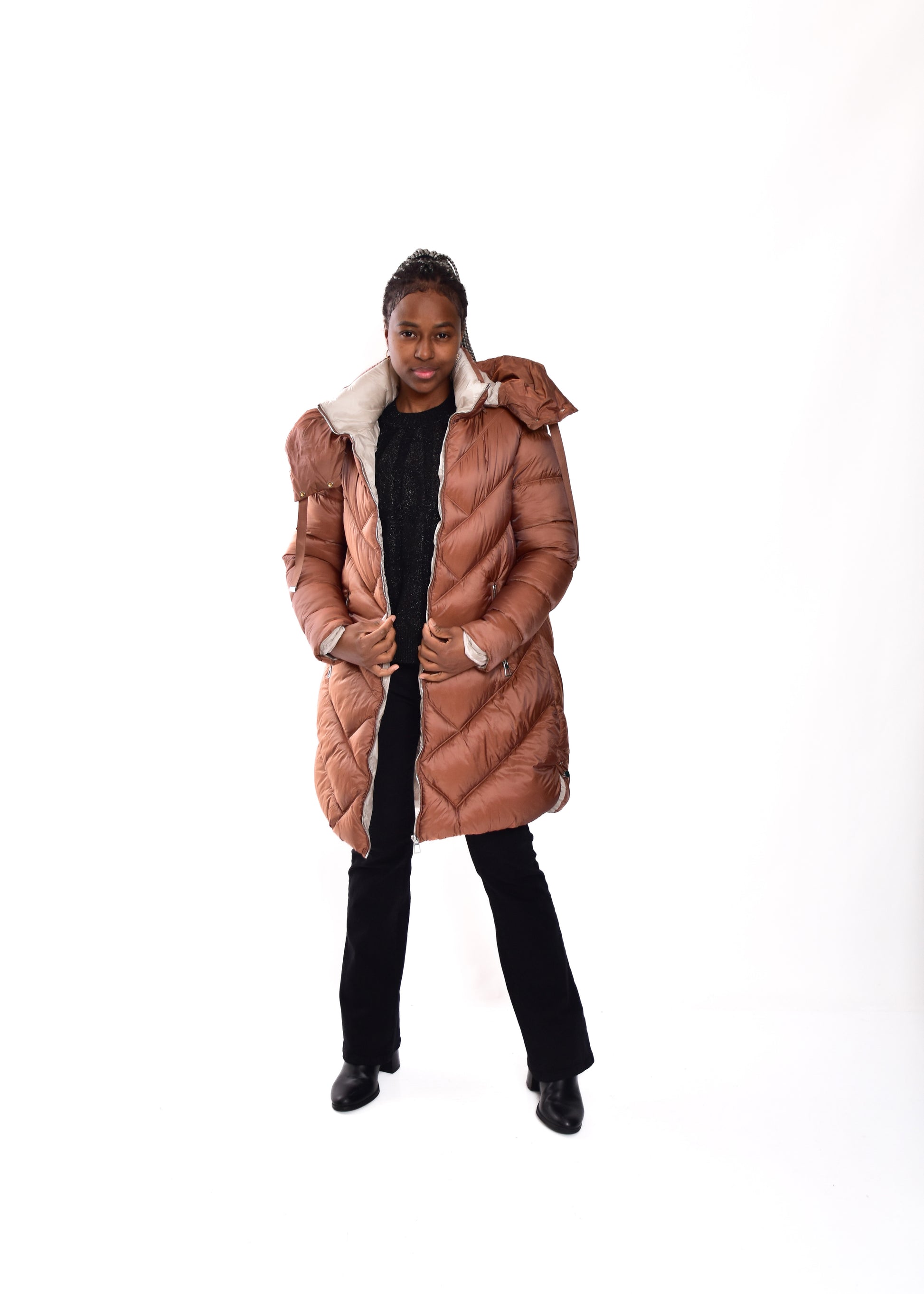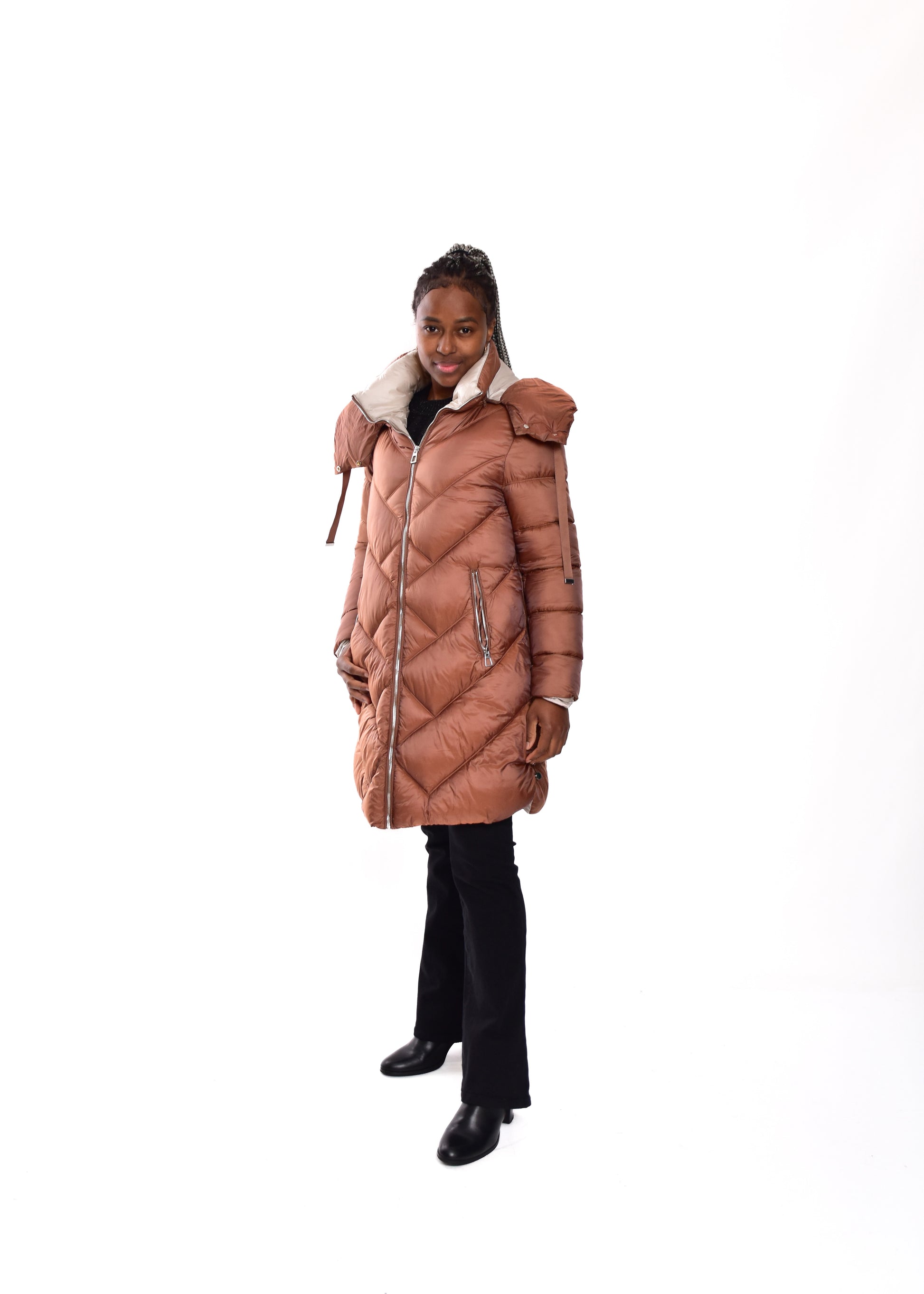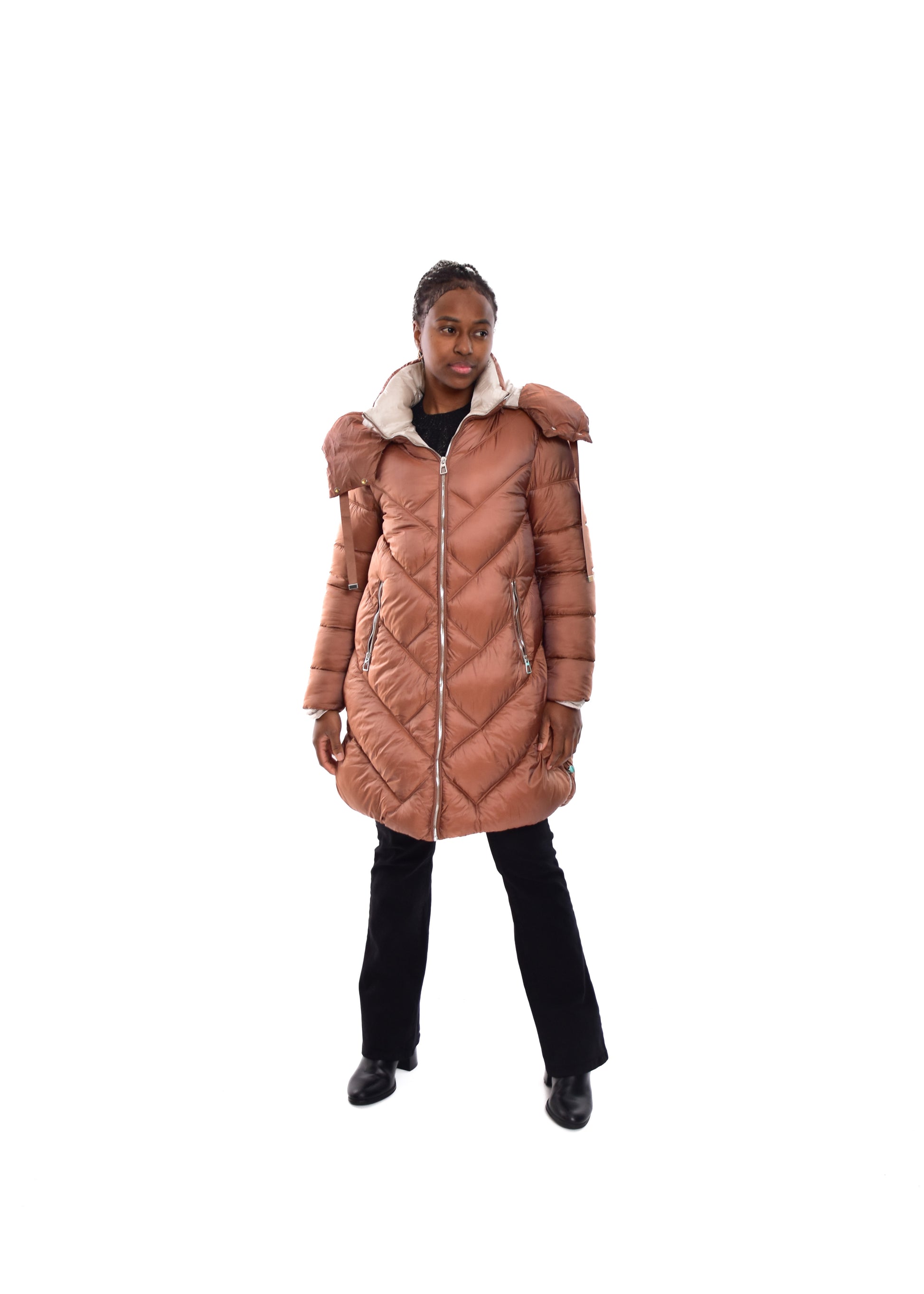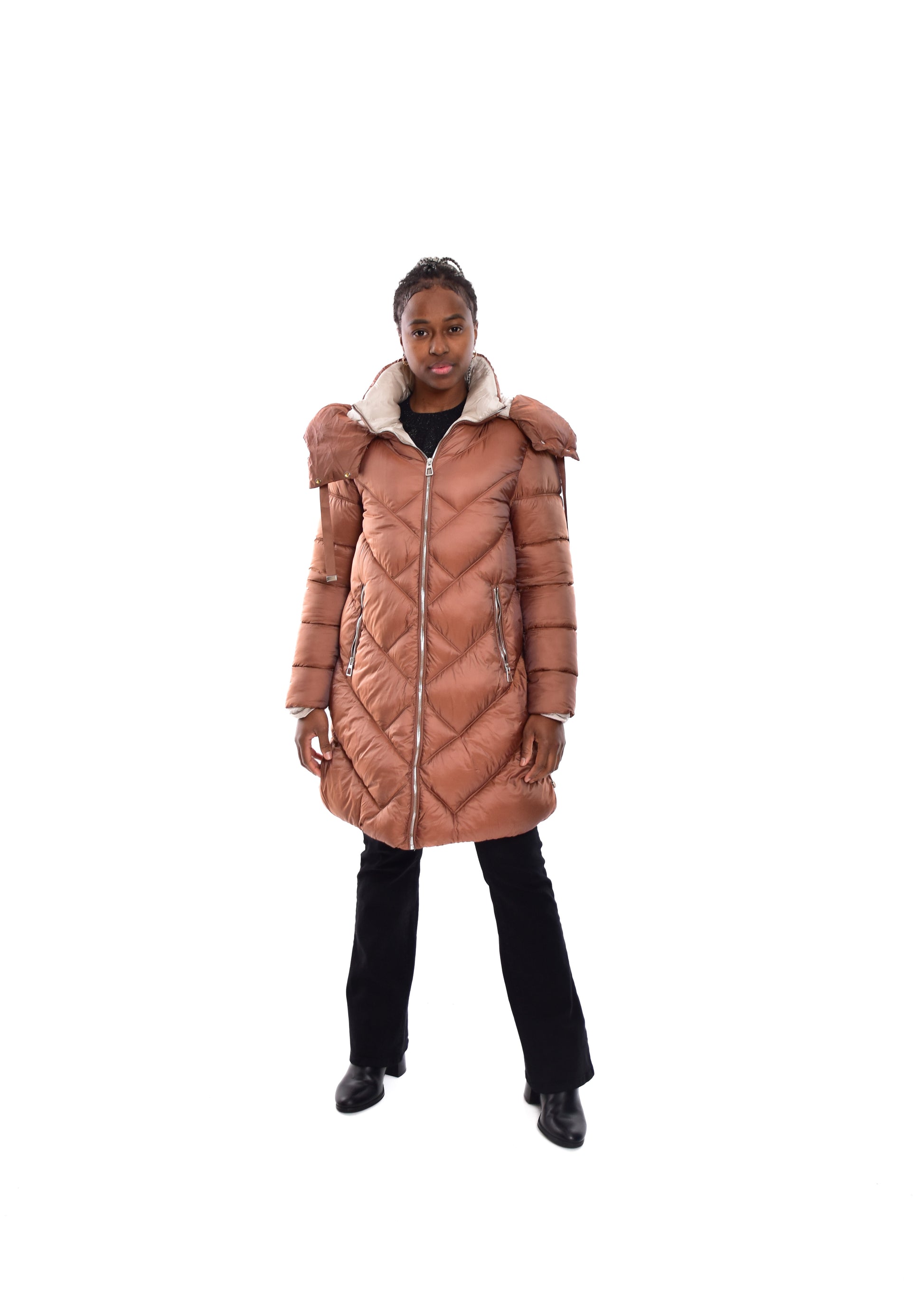 Jaqueta acolchoada. Enchimento sintético. Este modelo está disponível do tamanho S ao XL, neste caso serve até o tamanho 44.