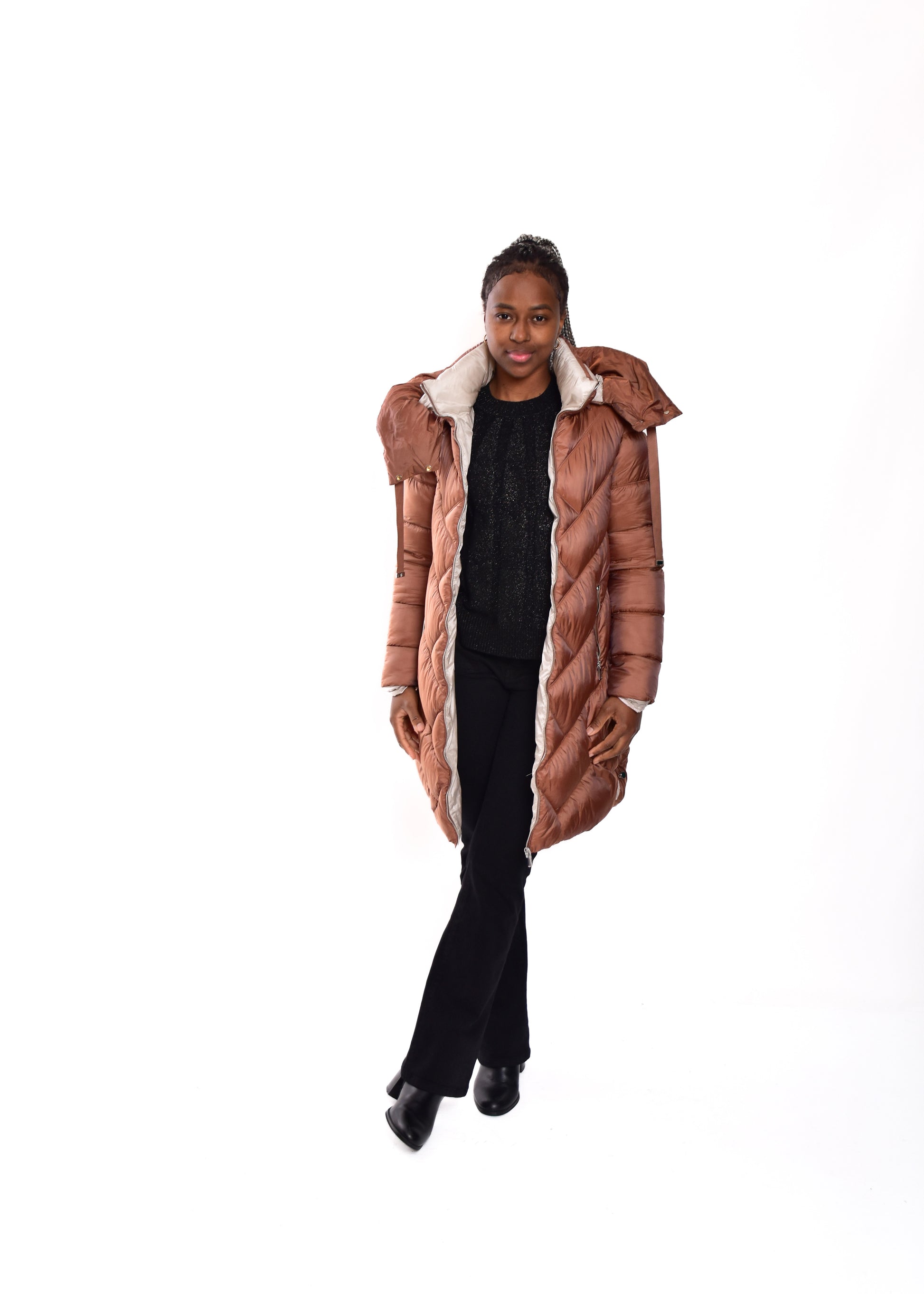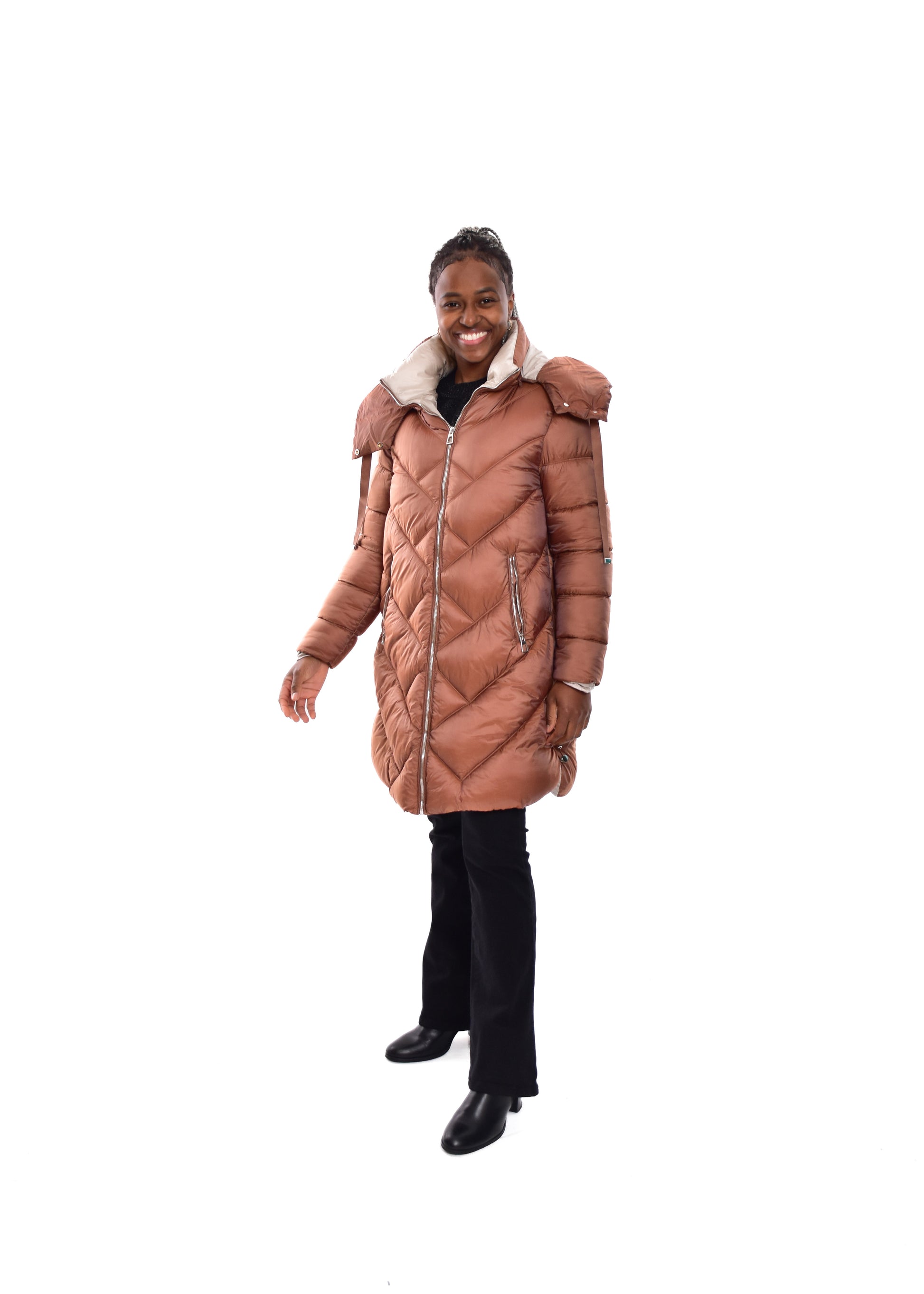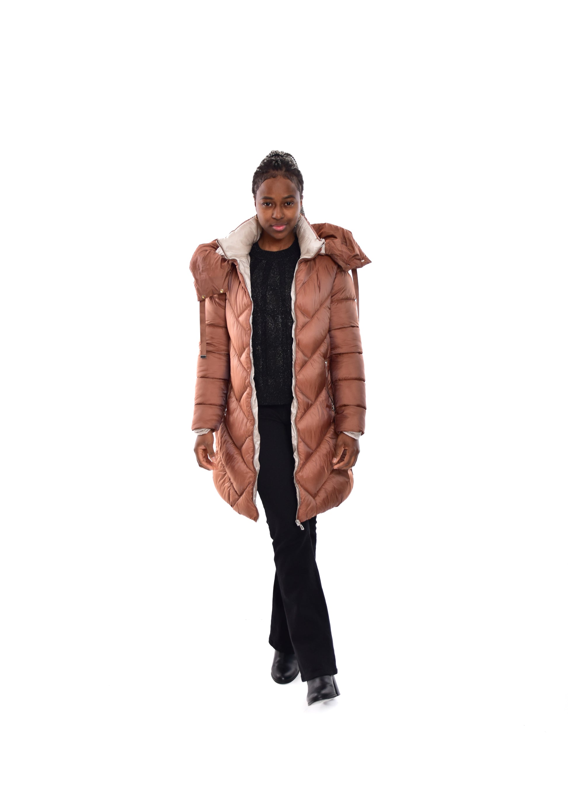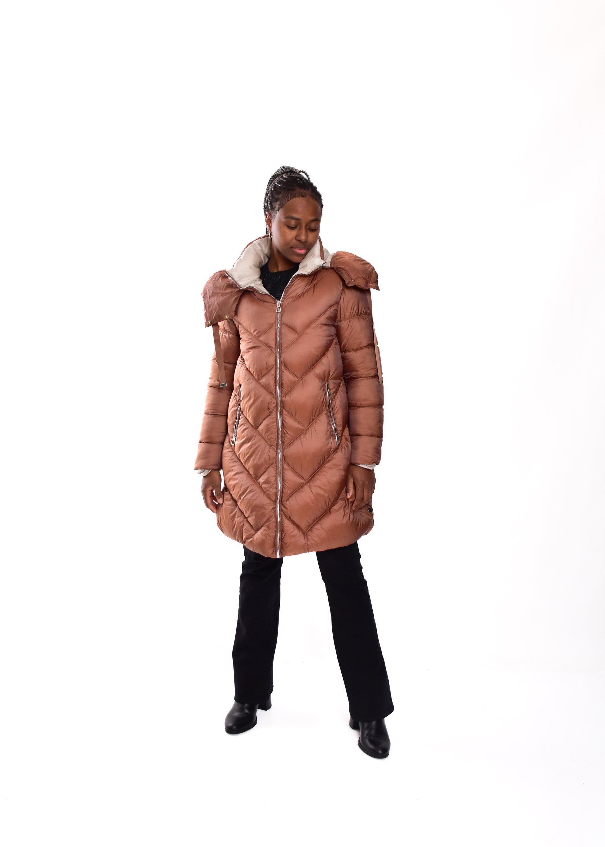 Jaqueta acolchoada. Enchimento sintético. Este modelo está disponível do tamanho S ao XL, neste caso serve até o tamanho 44.