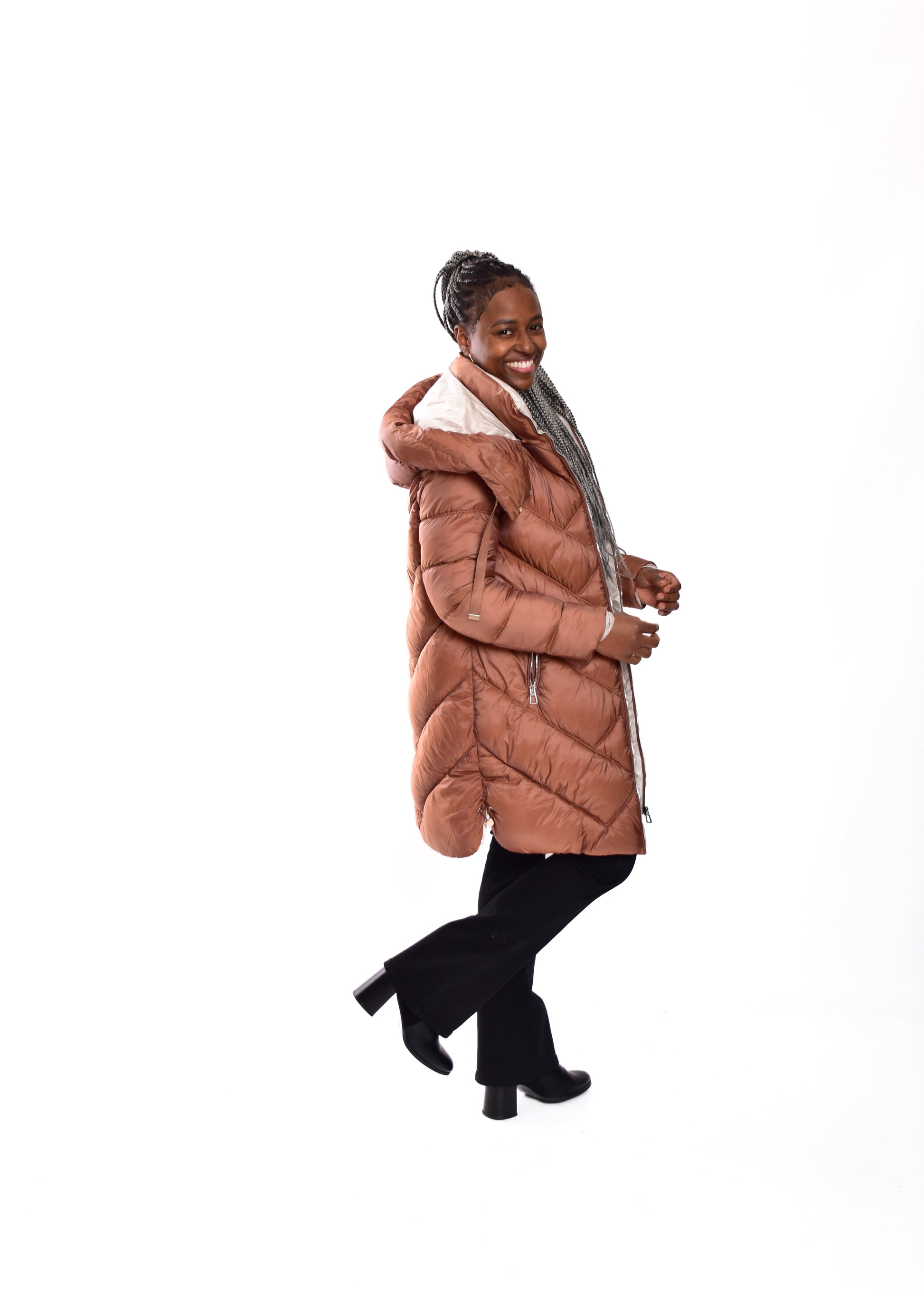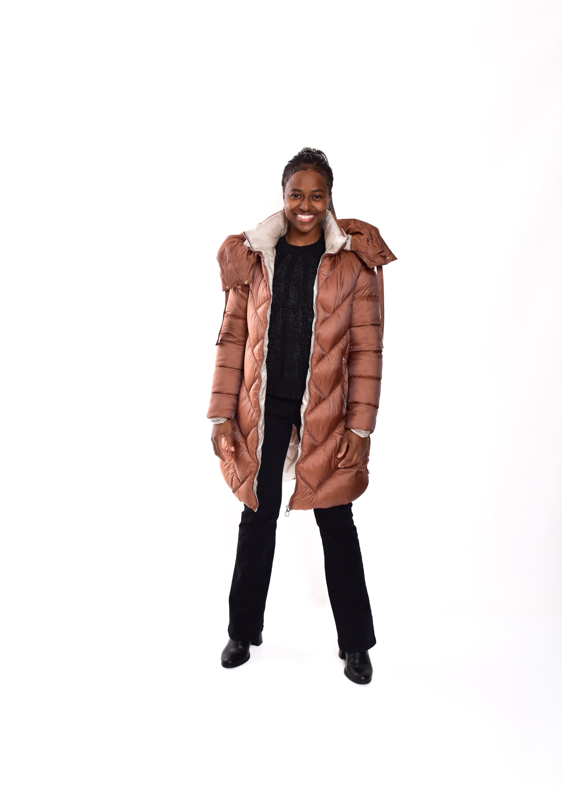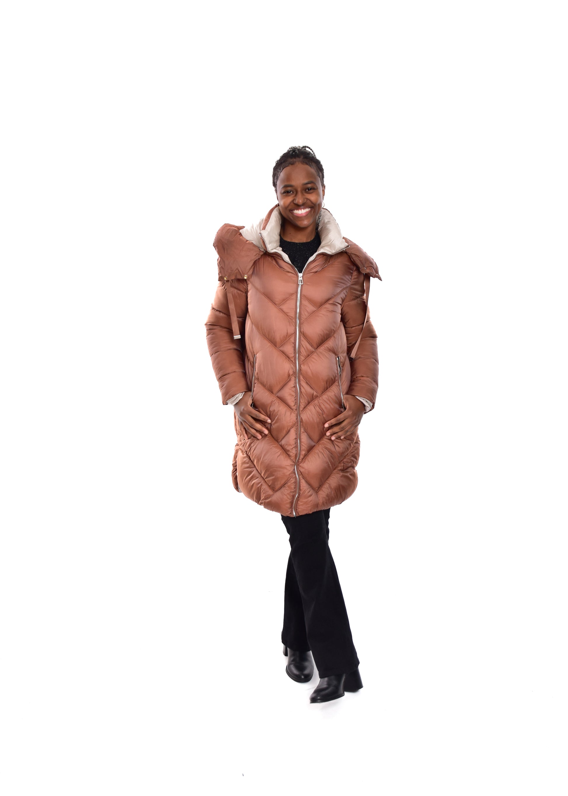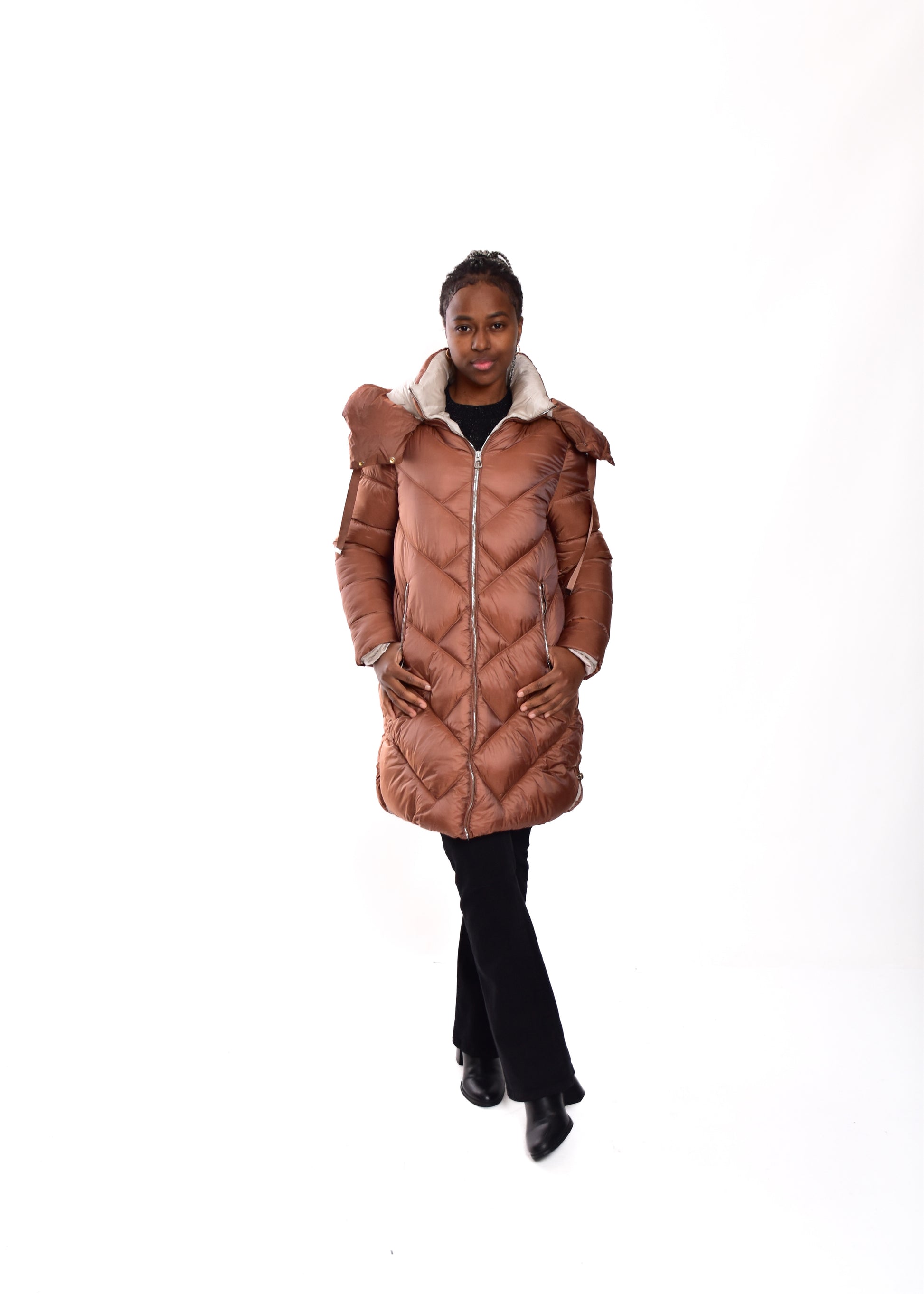 Jaqueta acolchoada. Enchimento sintético. Este modelo está disponível do tamanho S ao XL, neste caso serve até o tamanho 44.