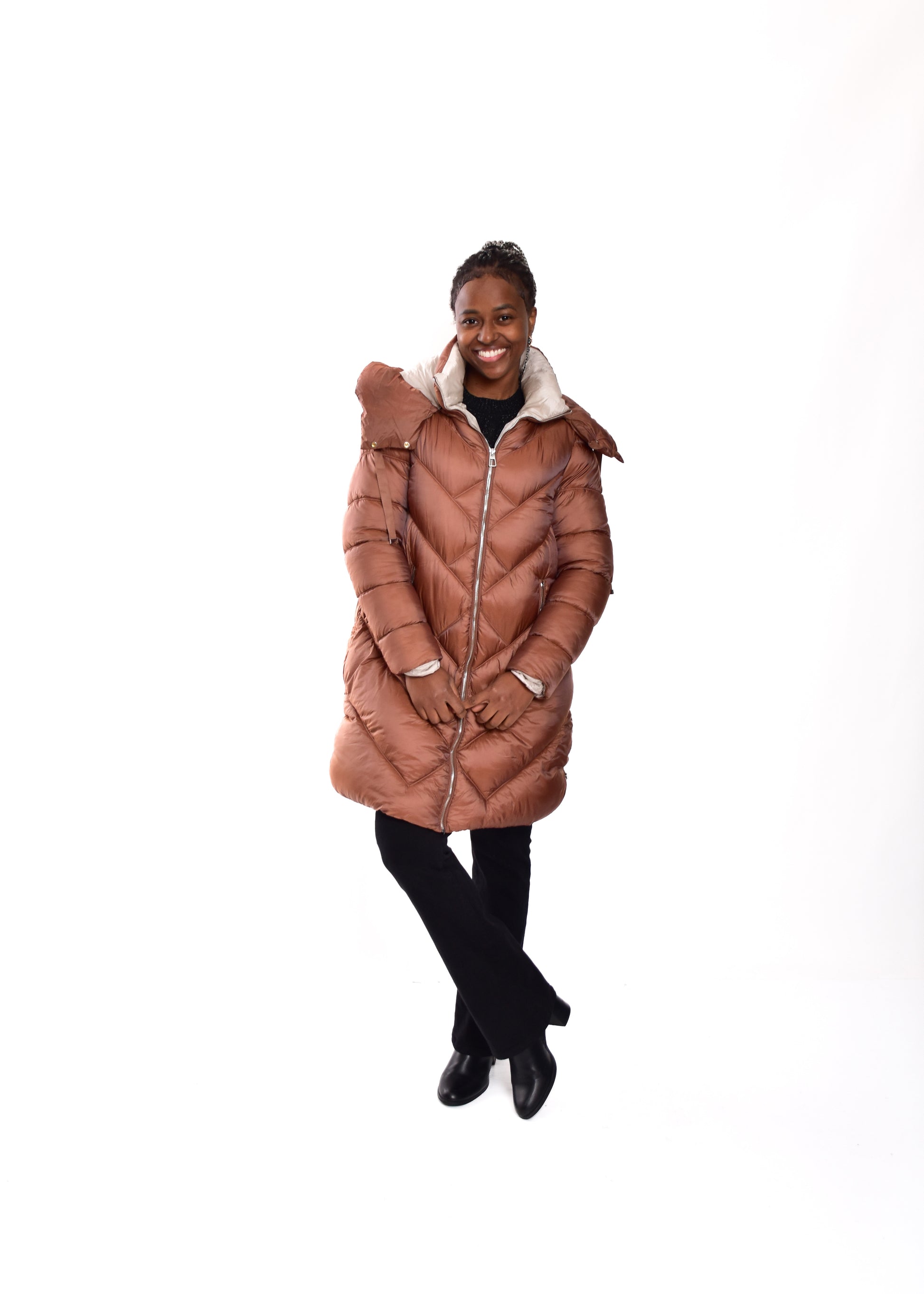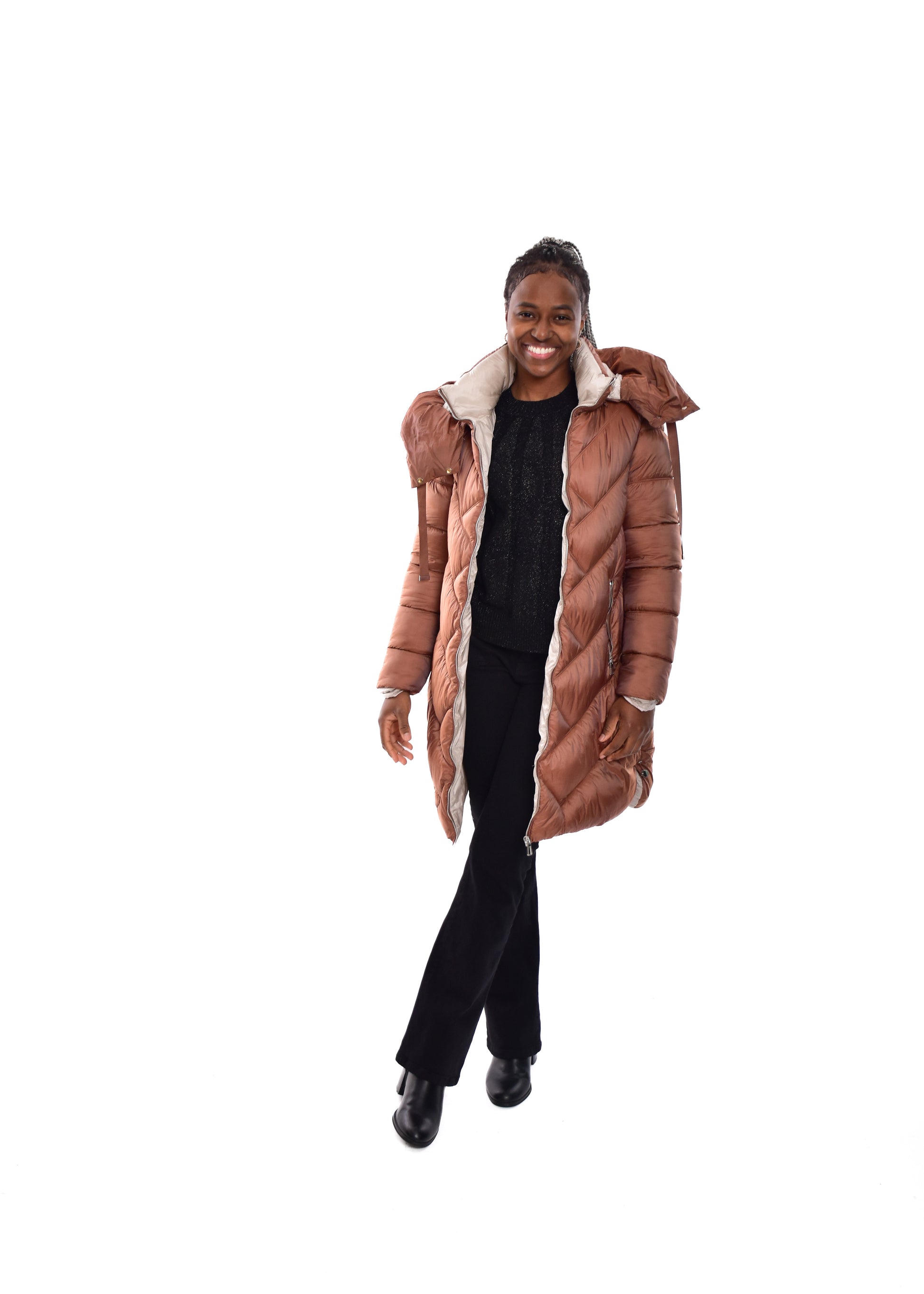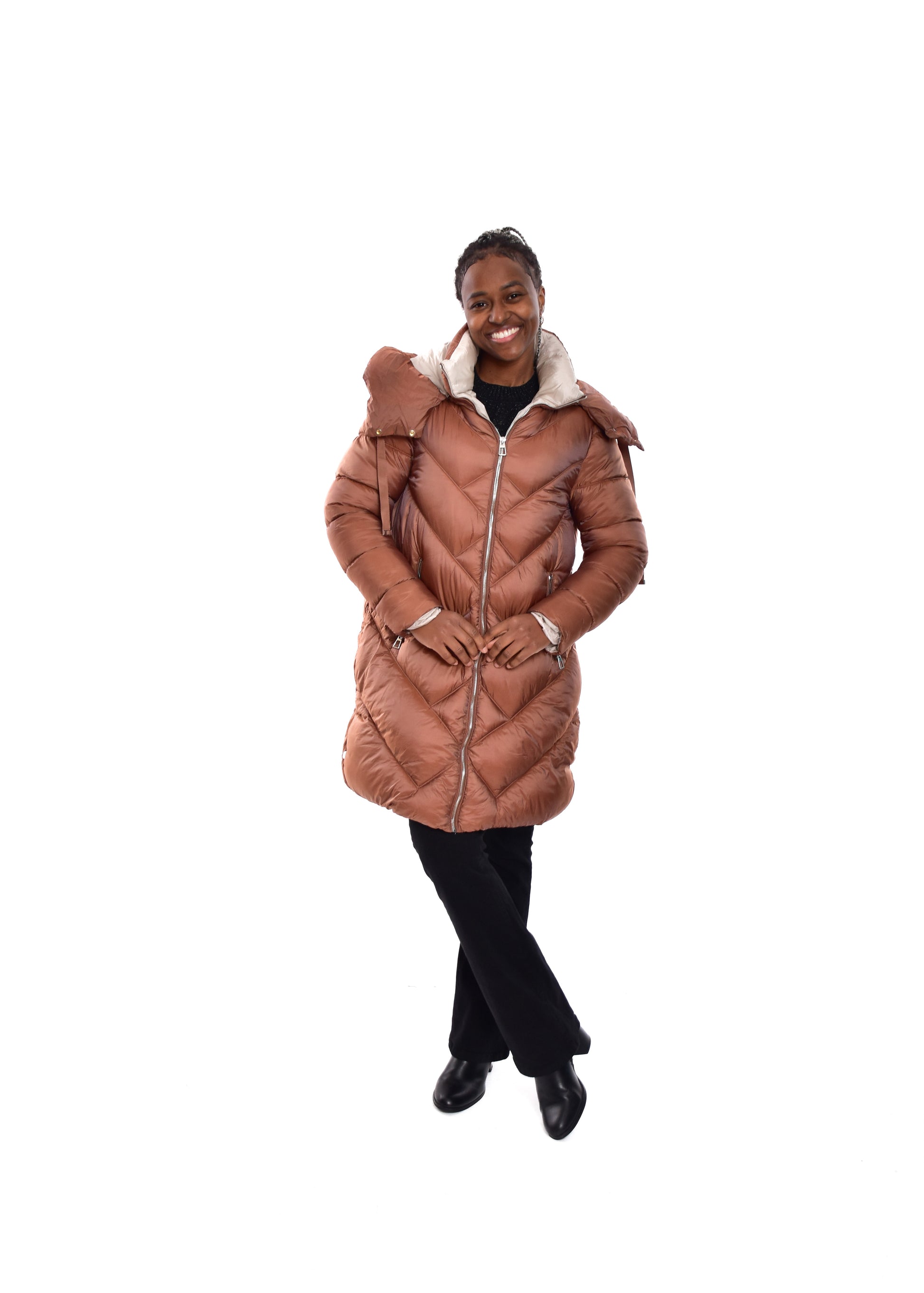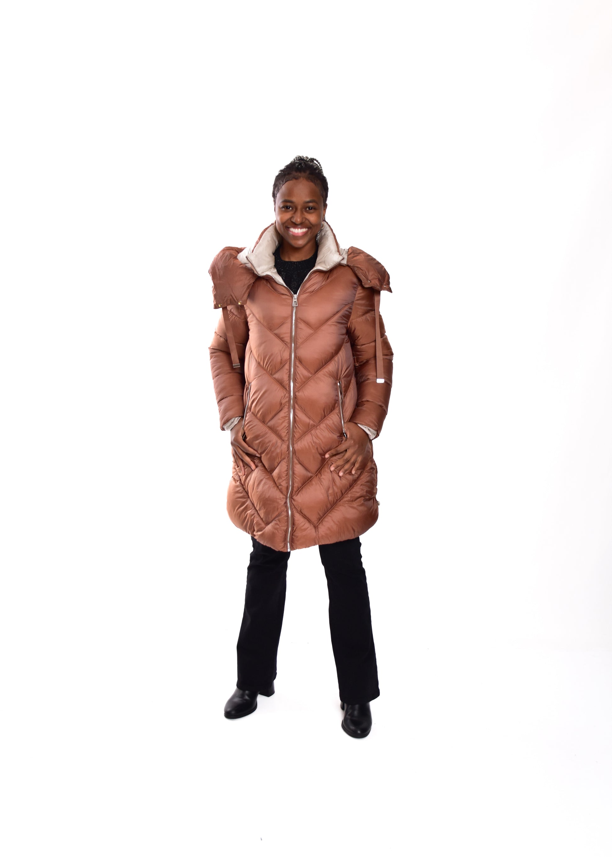 Jaqueta acolchoada. Enchimento sintético. Este modelo está disponível do tamanho S ao XL, neste caso serve até o tamanho 44.