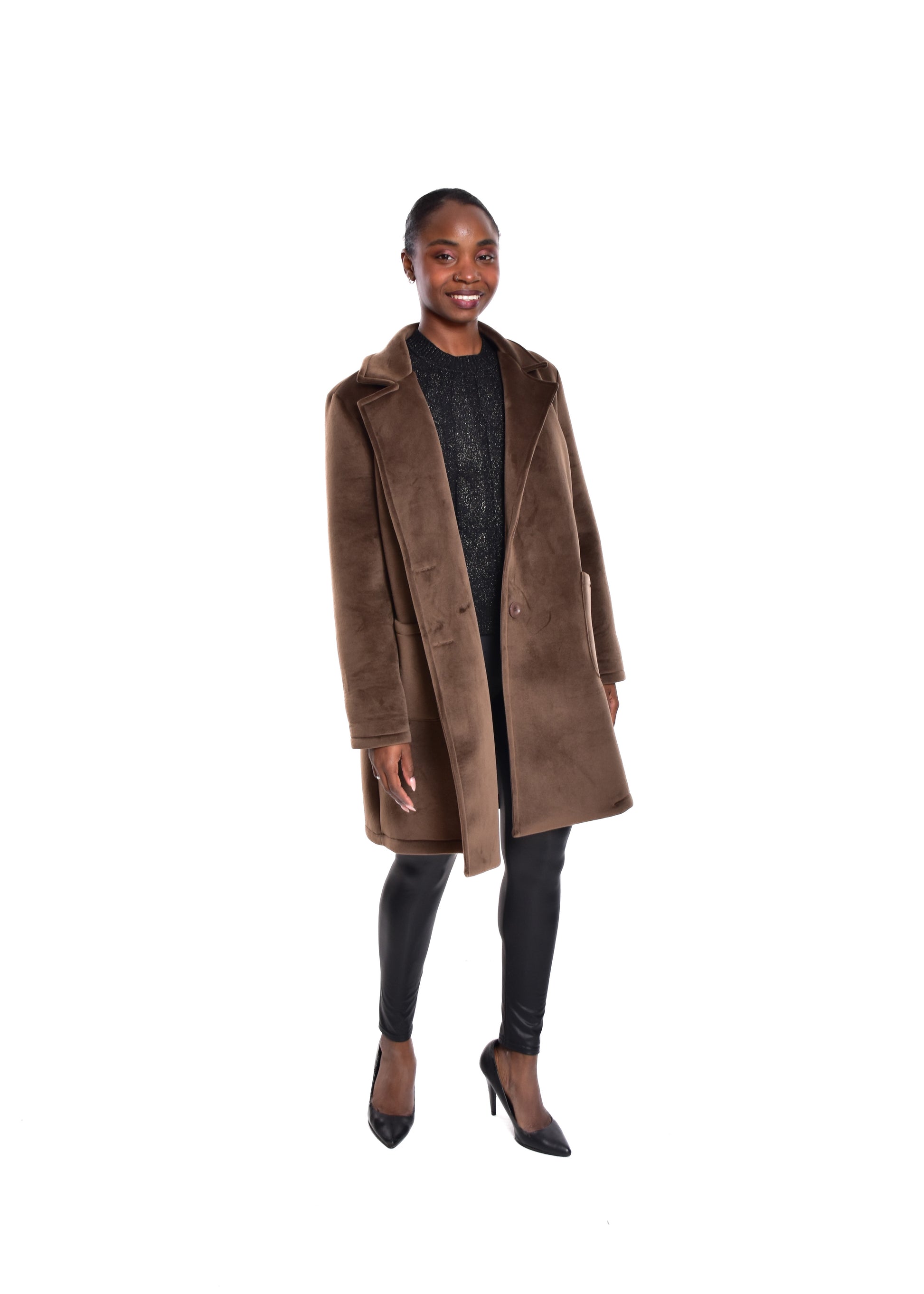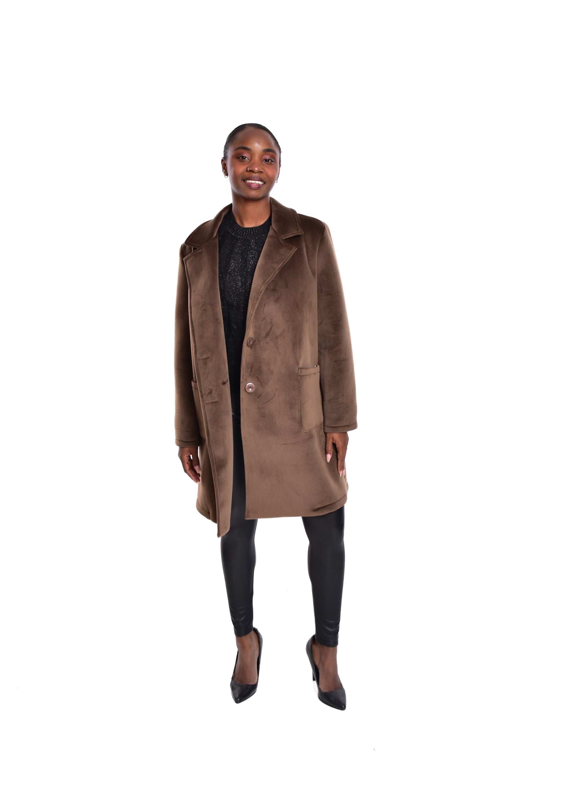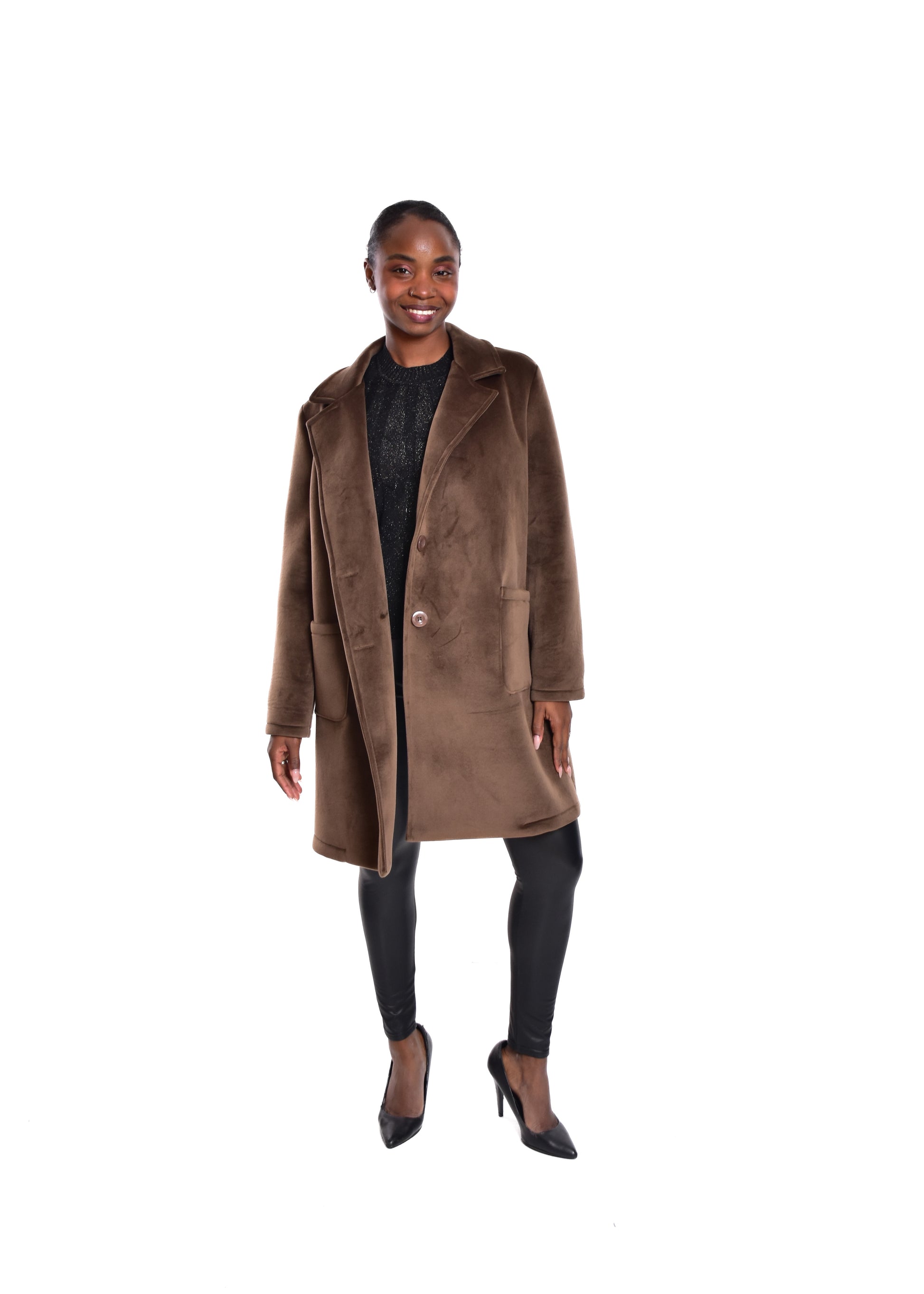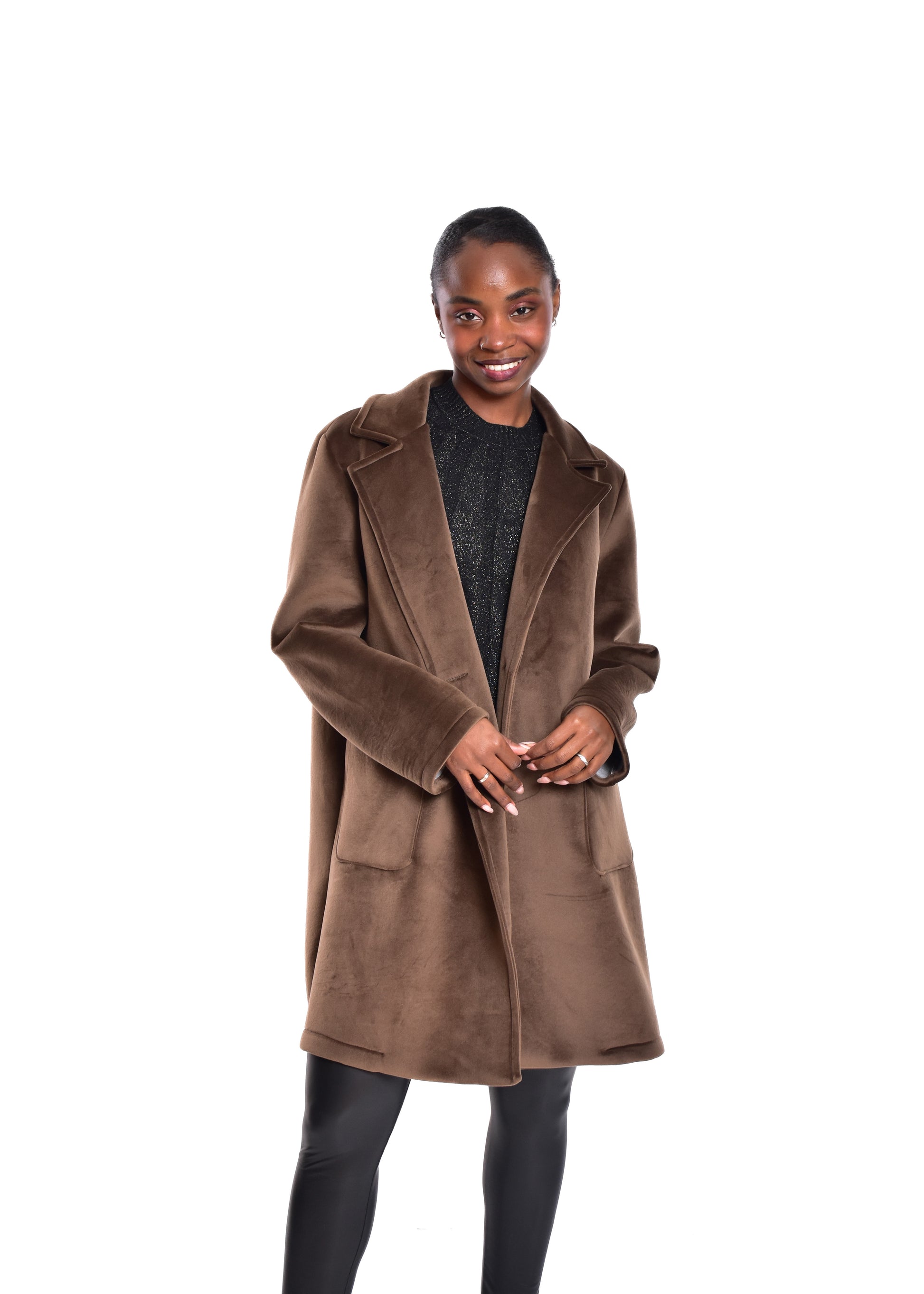 Casaco de neoprene. Tem bolsos. Não inclui forro. Este modelo está disponível em tamanho único, neste caso serve até o tamanho 42.