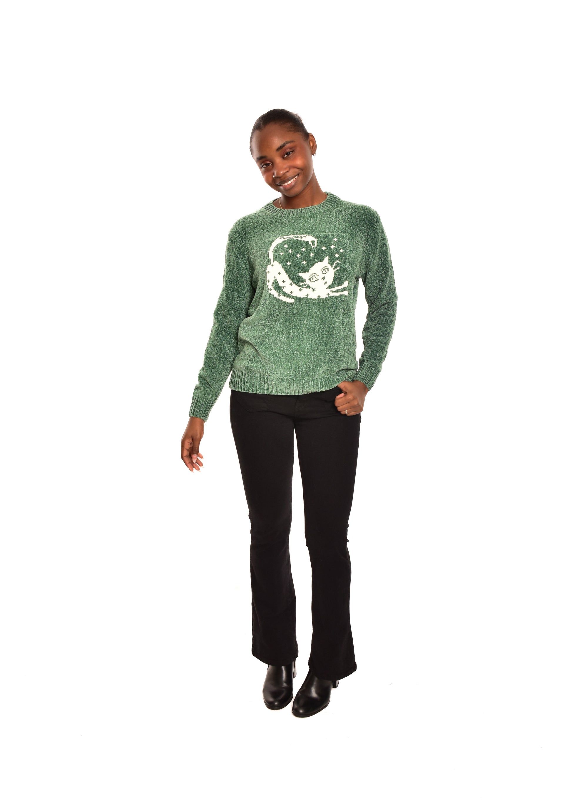 Jersey de punto en chenilla. Tejido súper suave. Esta prenda está disponible en doble talla M/L y XL/XXL, en este caso es apto hasta una talla 44.