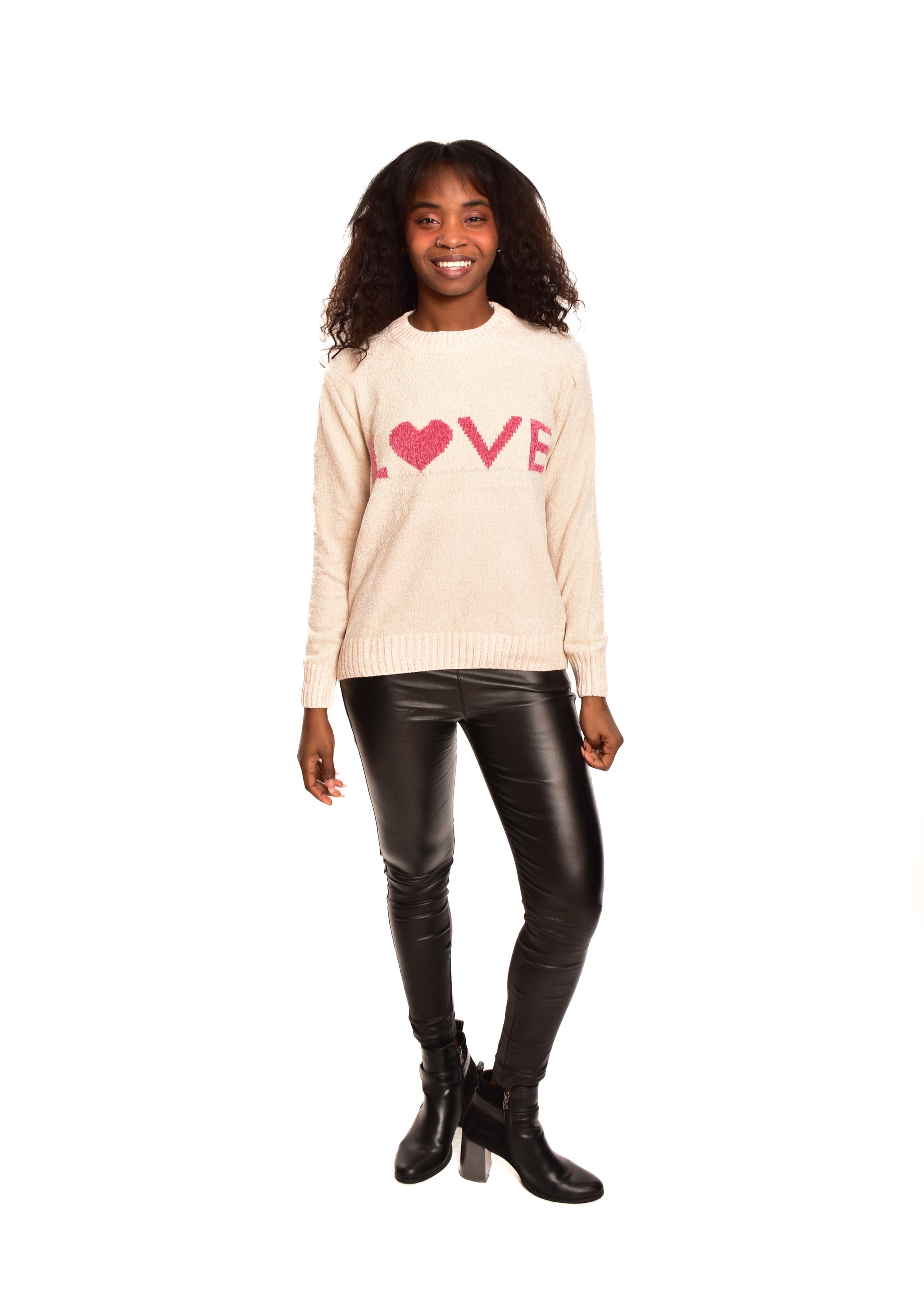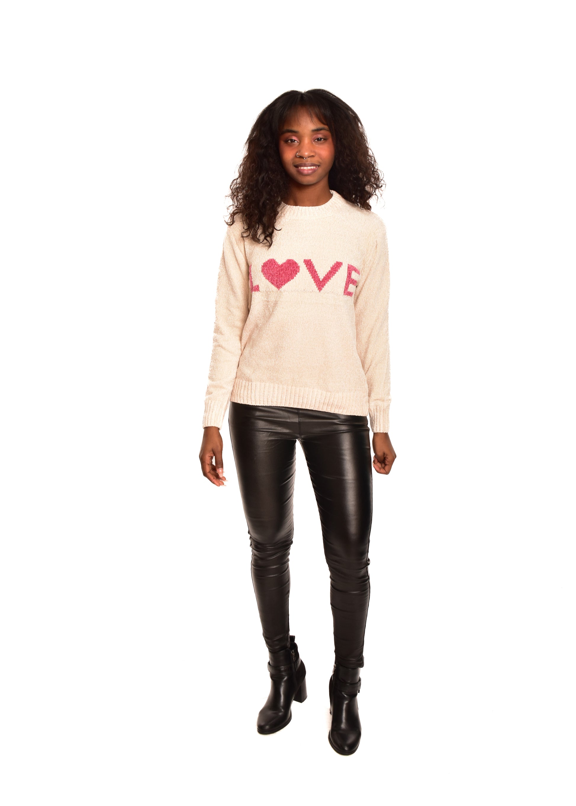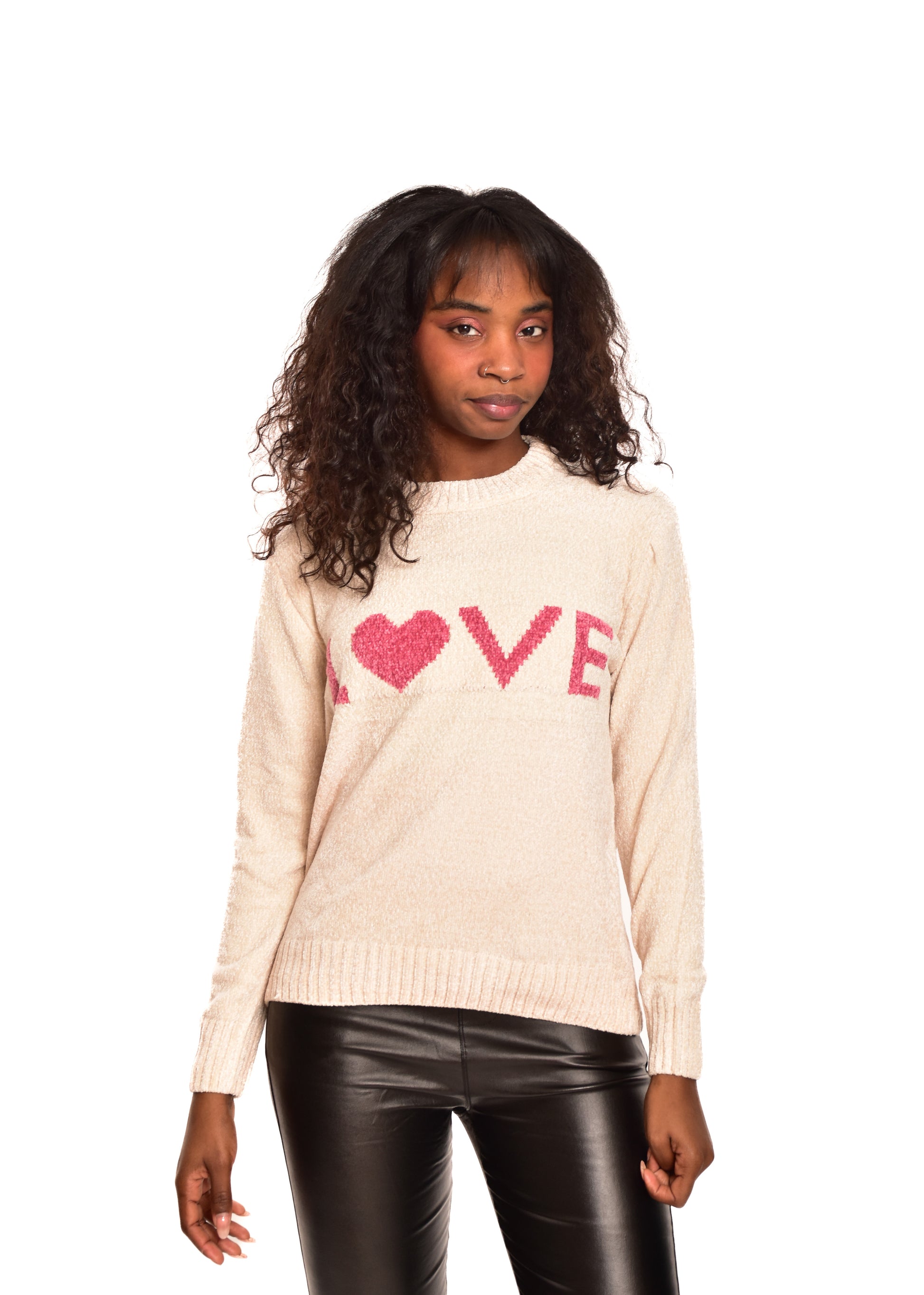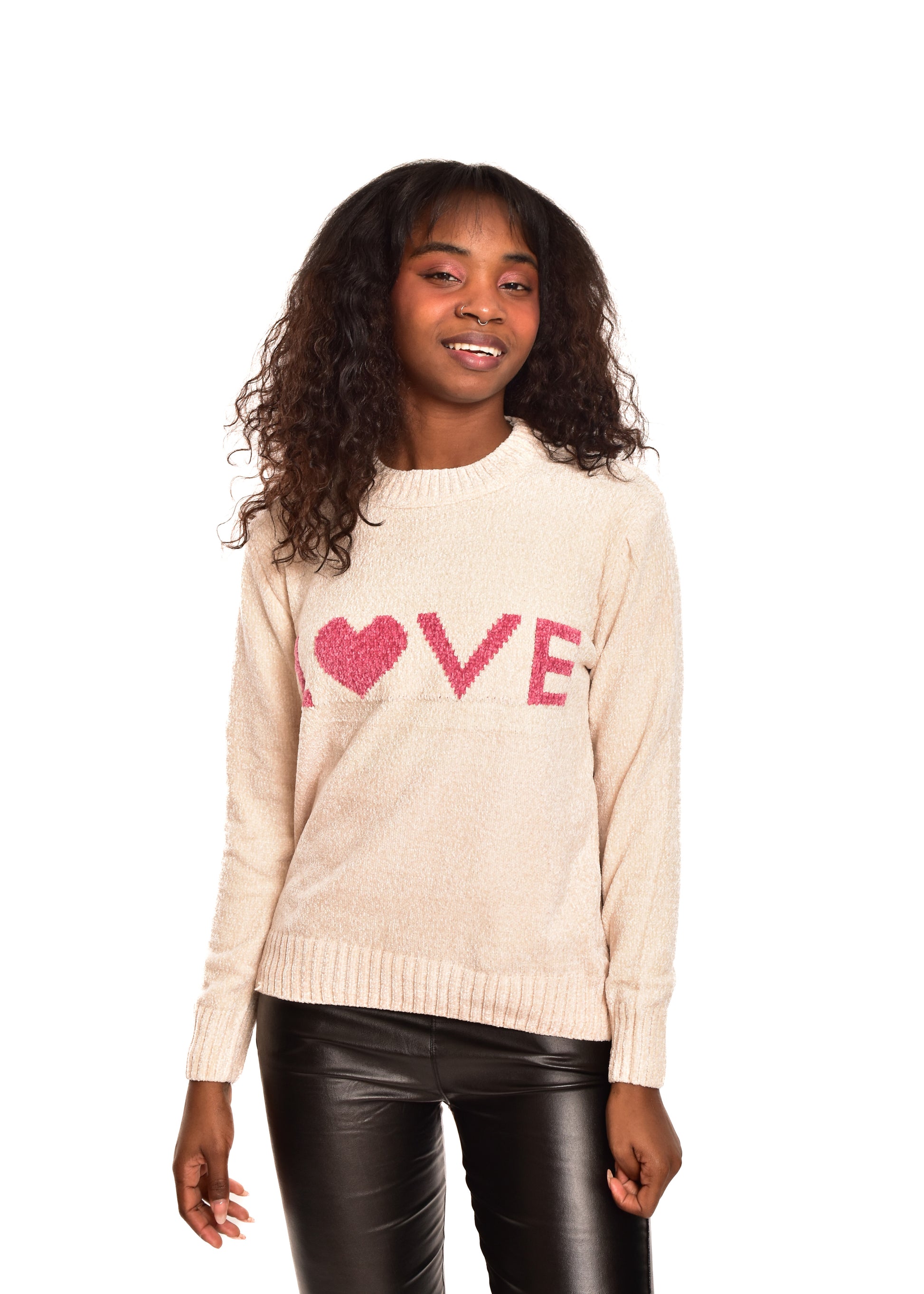 Jersey de punto en chenilla. Tejido súper suave. Esta prenda está disponible en doble talla M/L y XL/XXL, en este caso es apto hasta una talla 42.