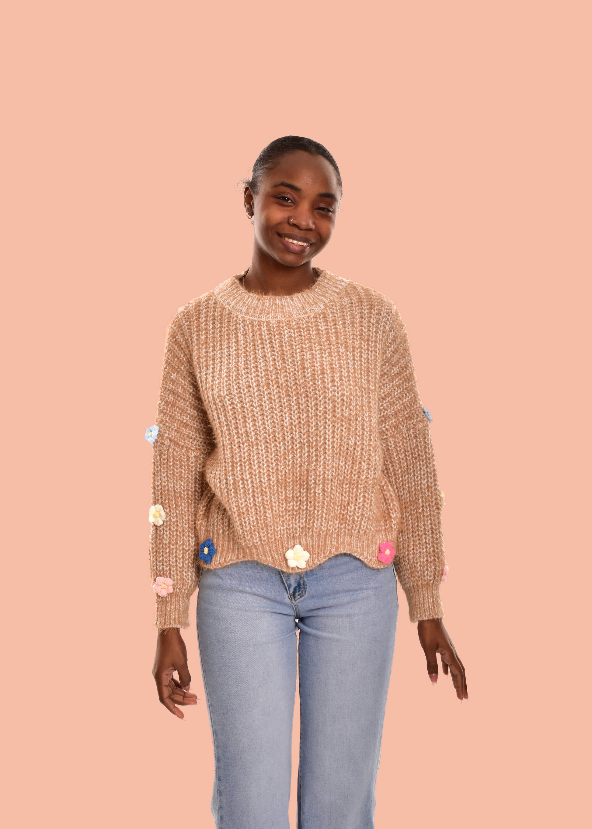Jersey de punto intermedio con detalles en relieve. Tejido súper suave. Esta prenda está disponible en talla única, en este caso es apto hasta una talla 42.